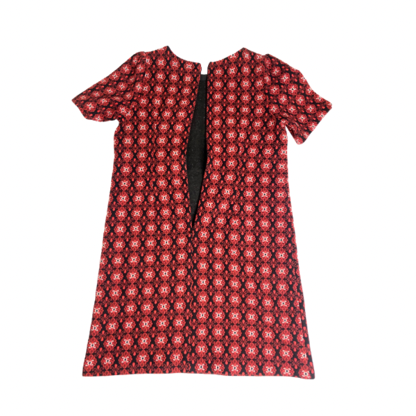 Ann Taylor Jacquard Red & Black Print Dress Size MP | Short Sleeve Knit Work Dress Petite