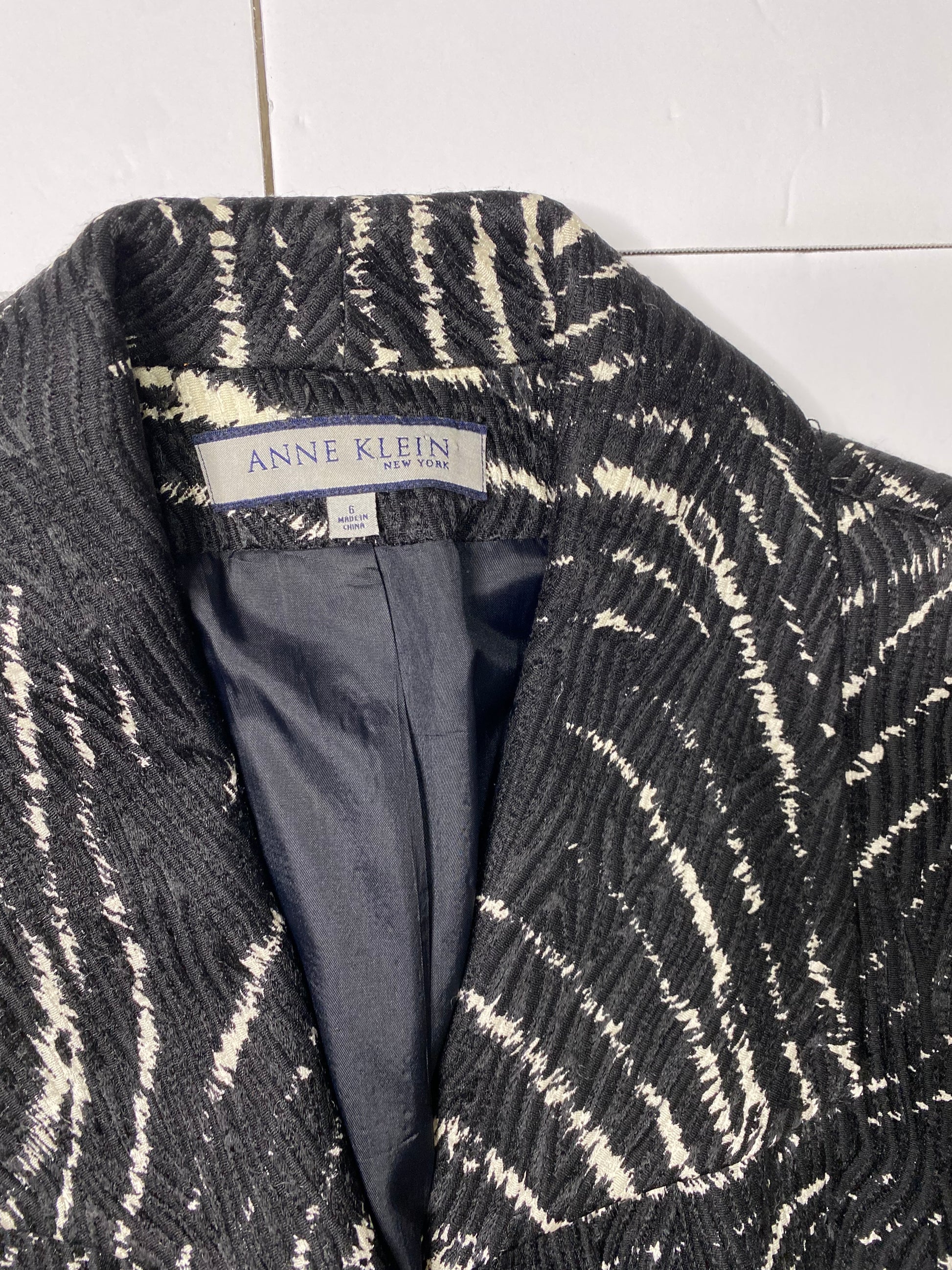 Anne Klein New York Zebra Stripe Blazer – Size 6 – Silk Wool Blend with Button Closure