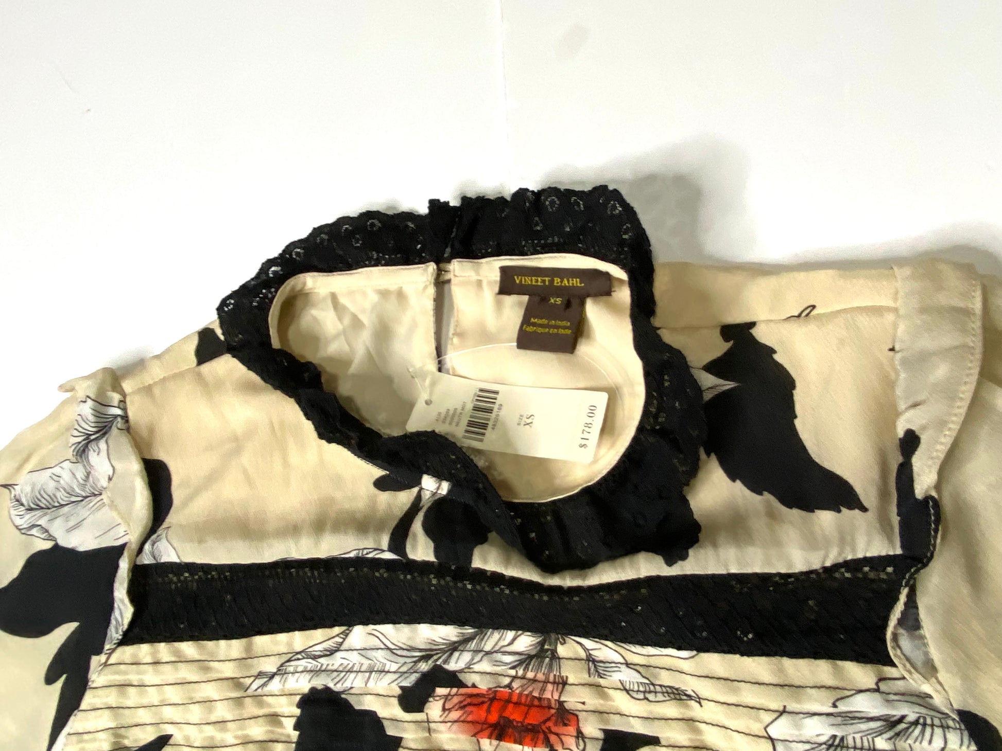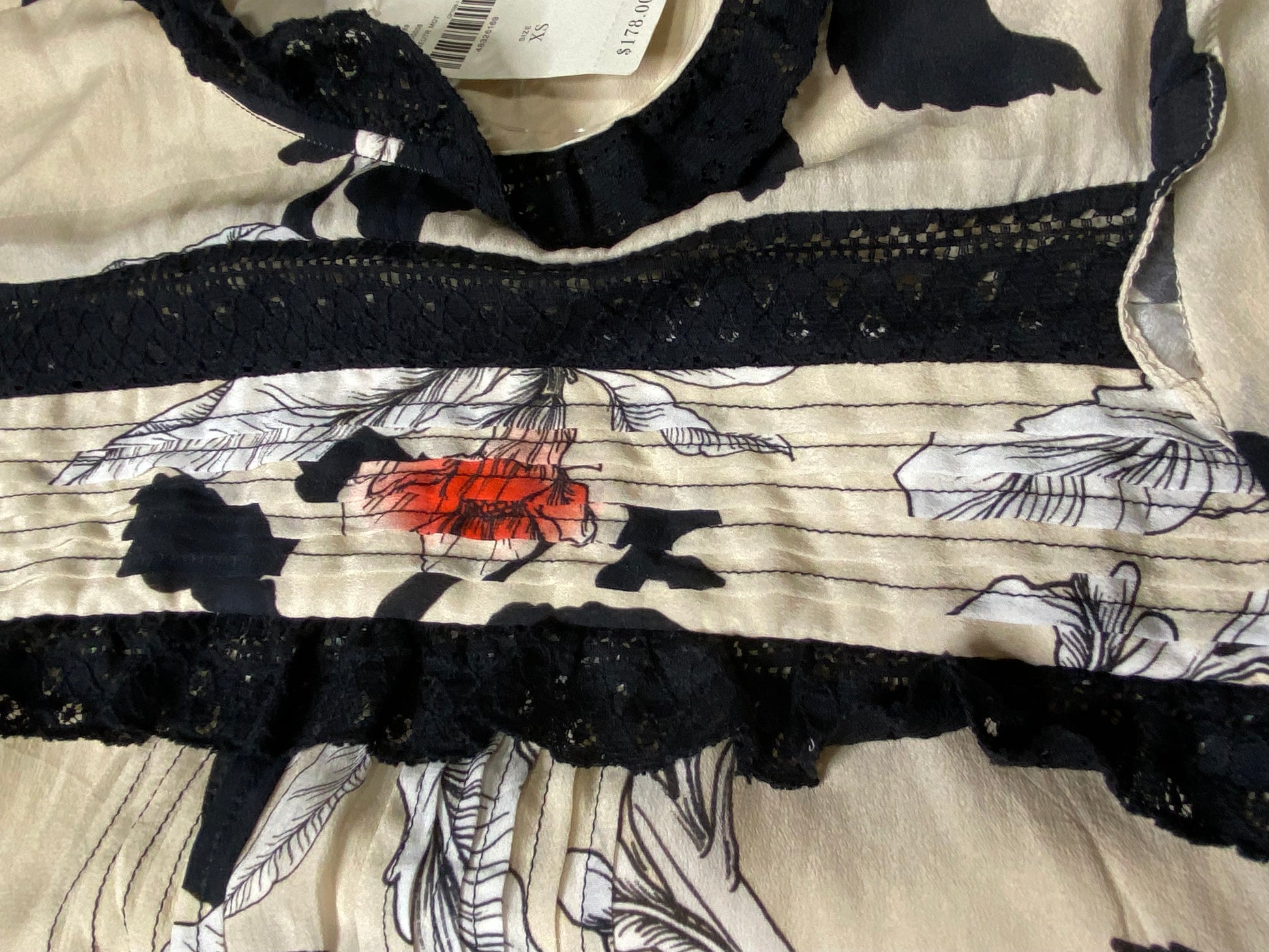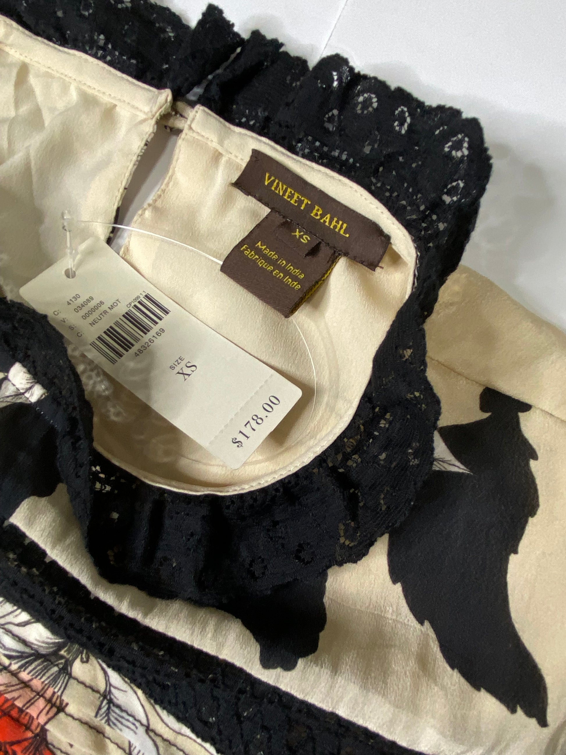 Anthropologie Vineet Bahl Floral Dress – Size XS – Lace Trim, Pleated Front, NWT