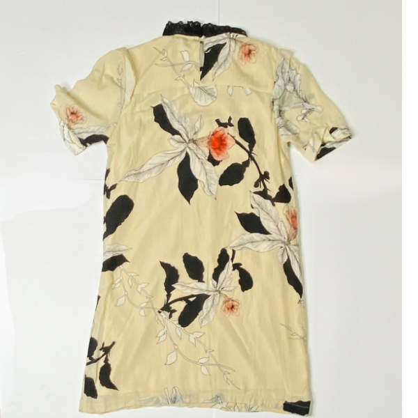 Elevate your wardrobe with this stunning Anthropologie Vineet Bahl dress, crafted in a romantic floral print and finished with intricate detailing. Designed in a flattering short sleeve silhouette, it features delicate lace trim around the neckline, soft front pleats, and a button closure at the nape for an elegant touch.