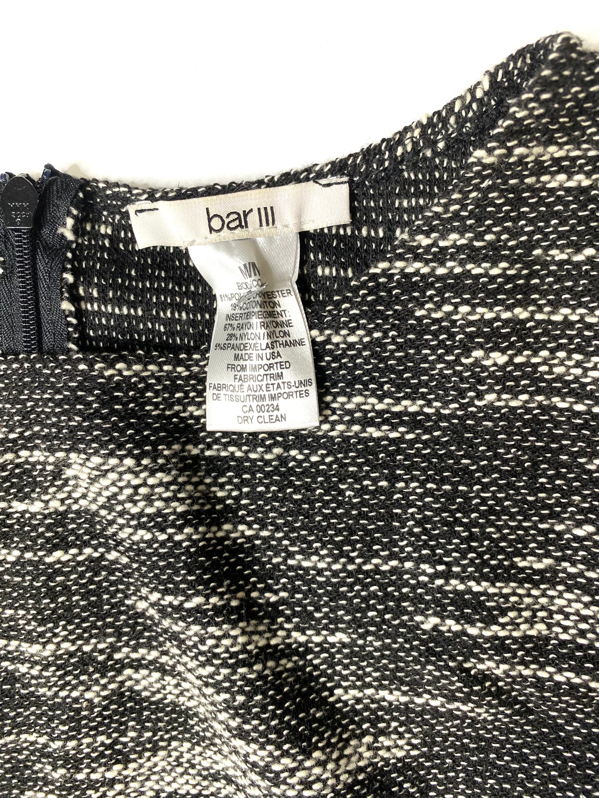 Bar III Tweed Fit & Flare Dress | Short Sleeve, Size Medium | Textured Zipper-Back Cocktail Dress