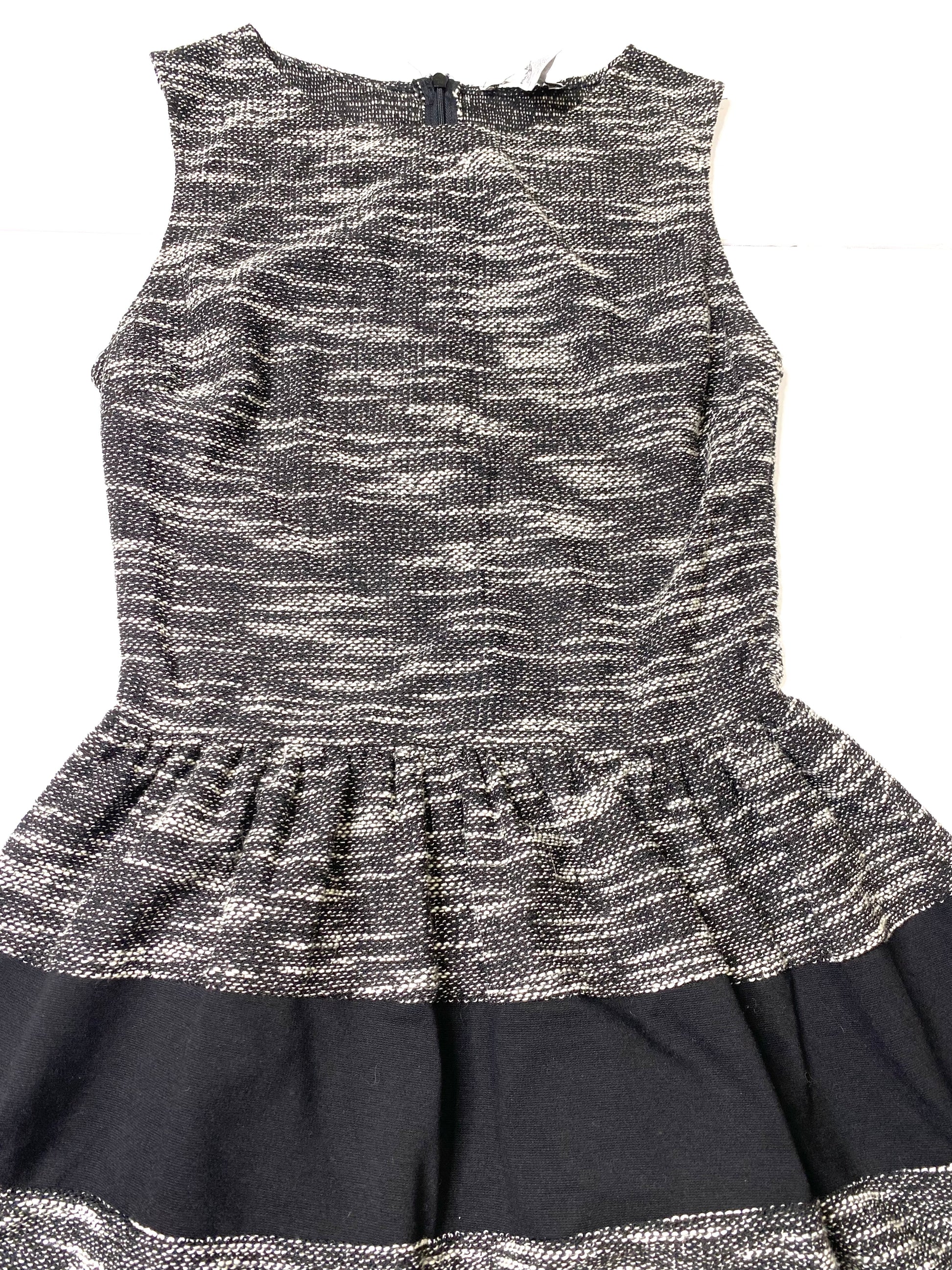 B ar III Tweed Fit & Flare Dress | Short Sleeve, Size Medium | Textured Zipper-Back Cocktail Dress
