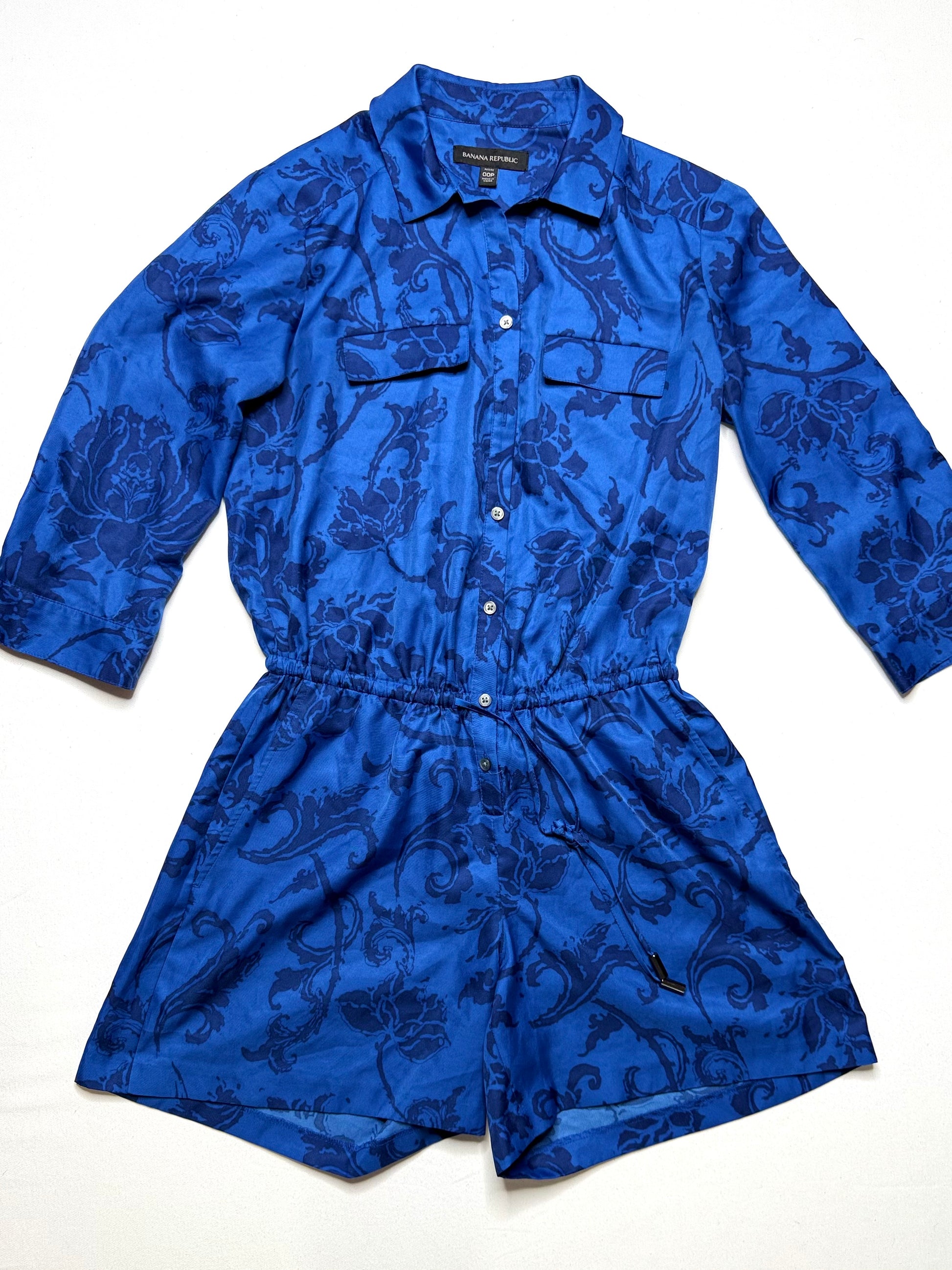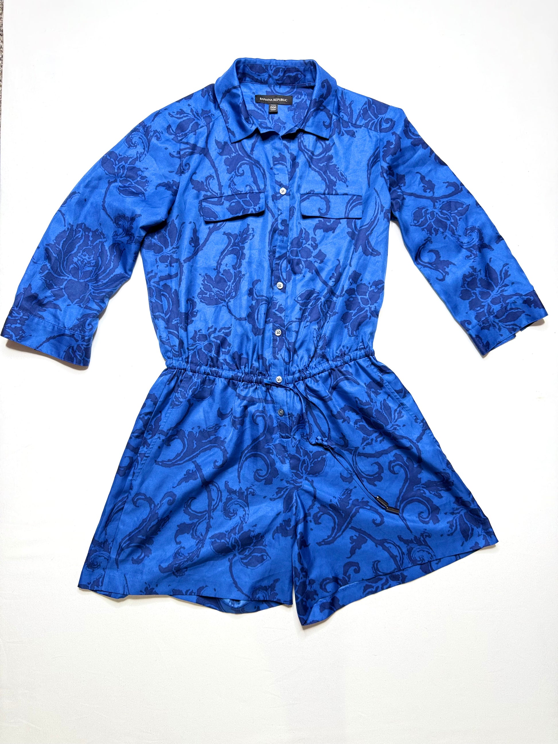 Banana Republic Blue Floral Print Button-Down Romper – Size 00, Excellent Condition