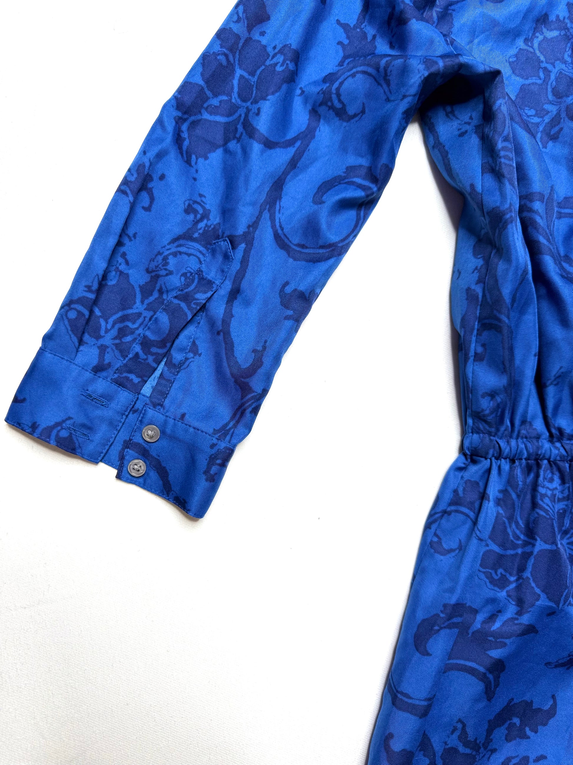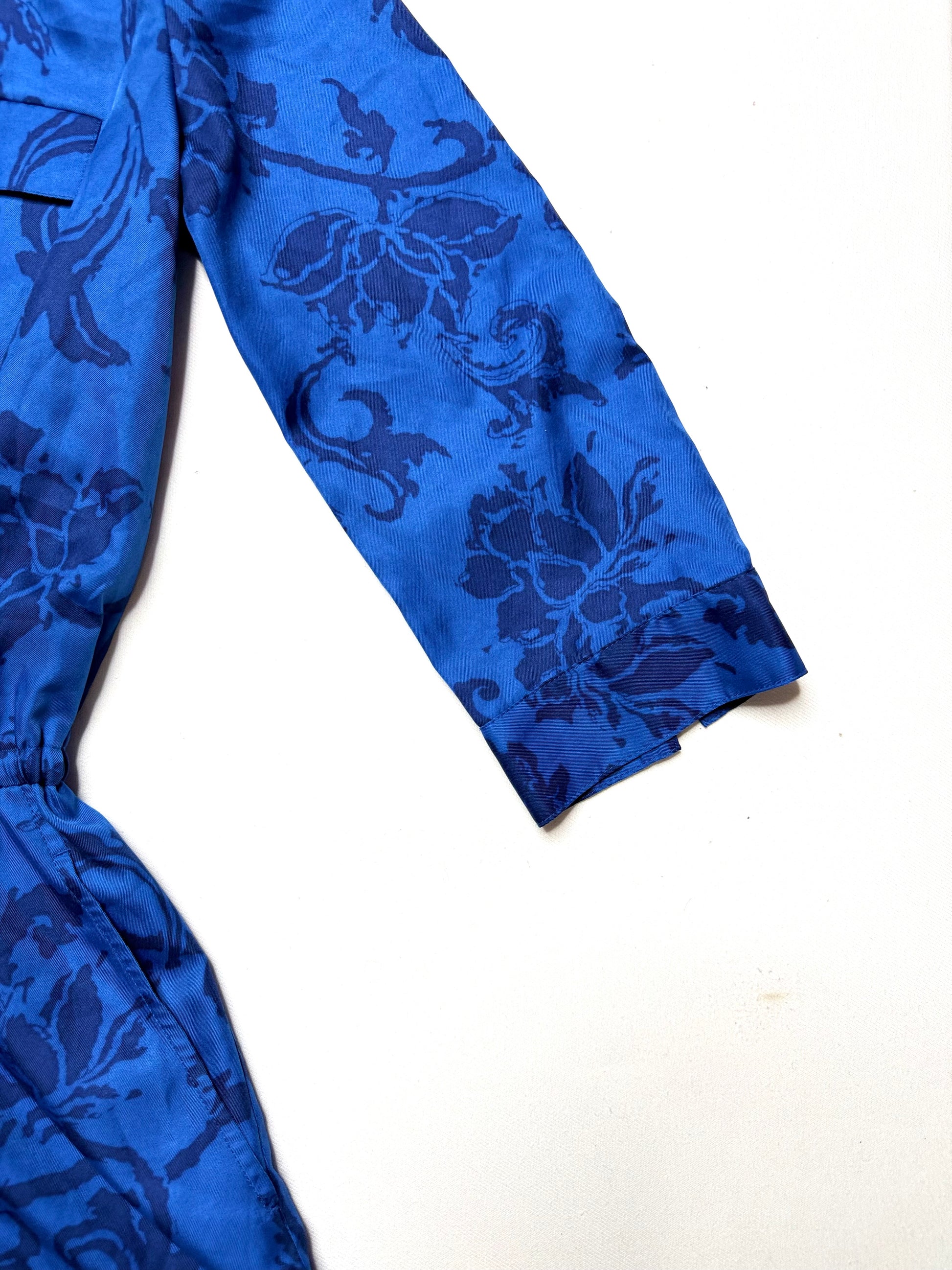 - Color: Blue-on-blue floral print