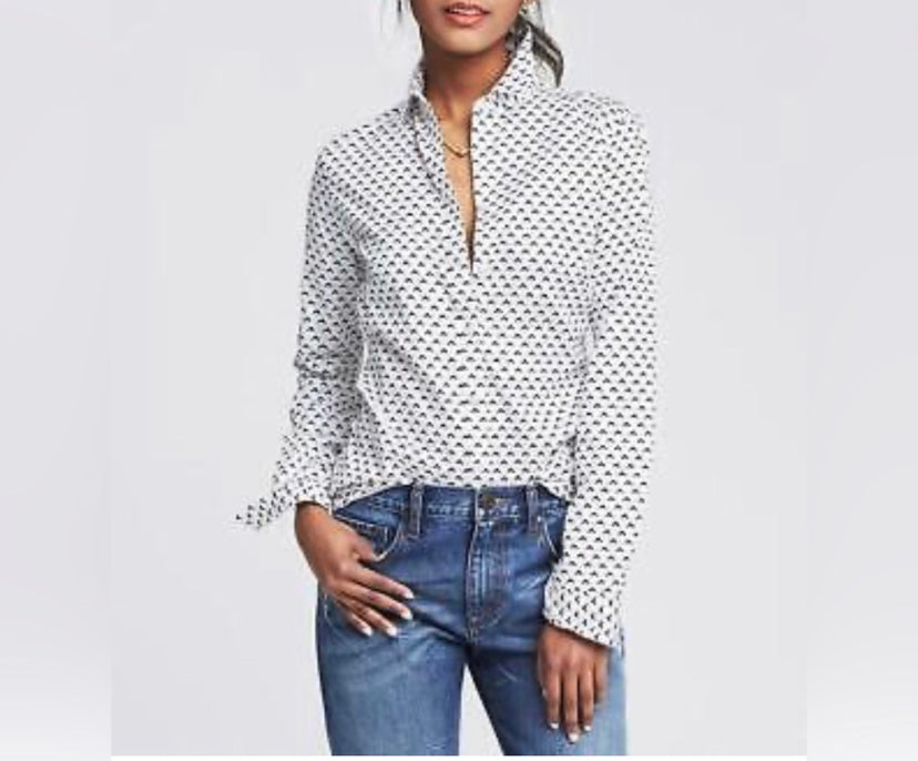 Banana Republic Fitted Non-Iron Boomerang Shirt – Size 2, Long Sleeve Button-Down