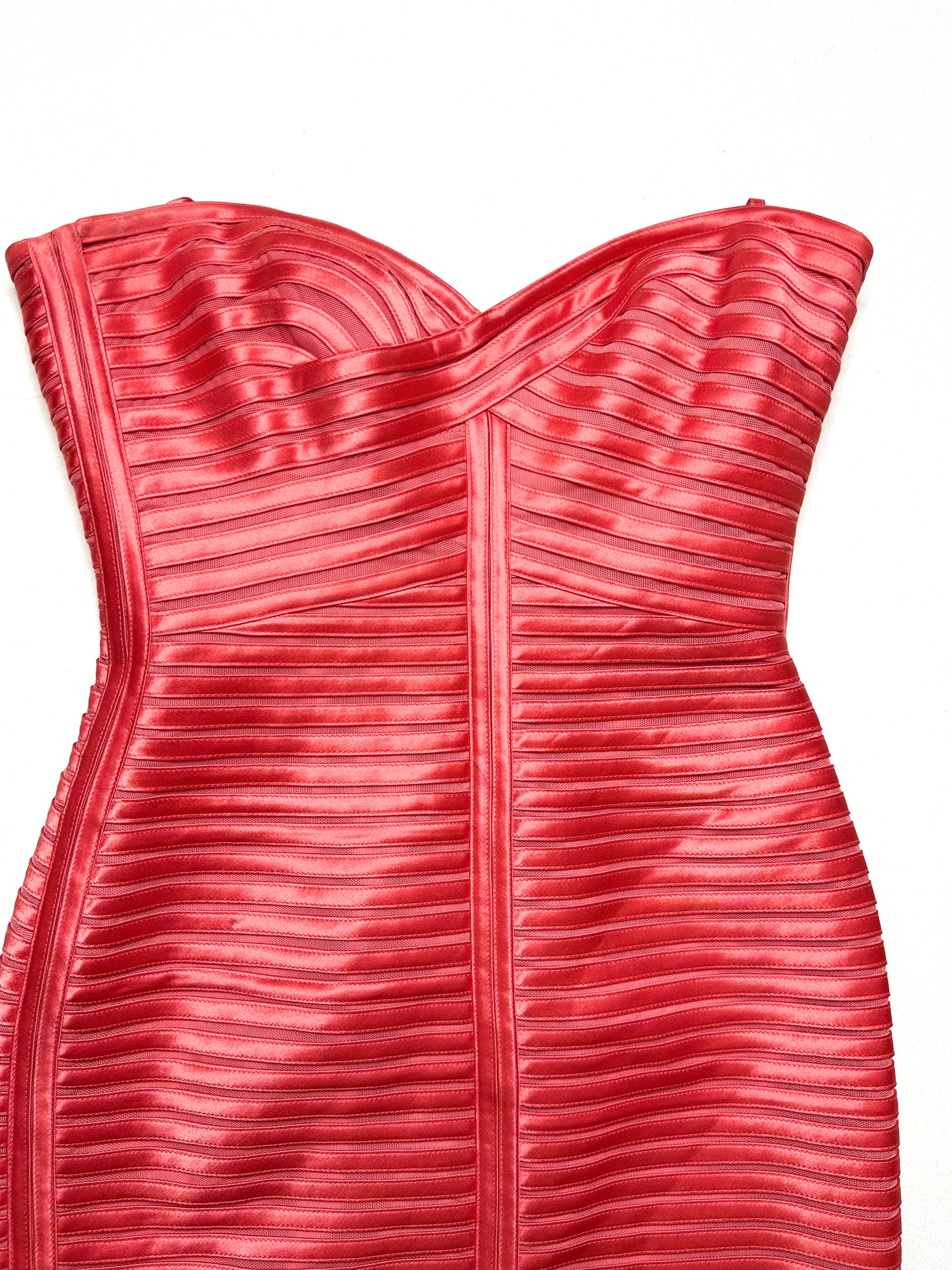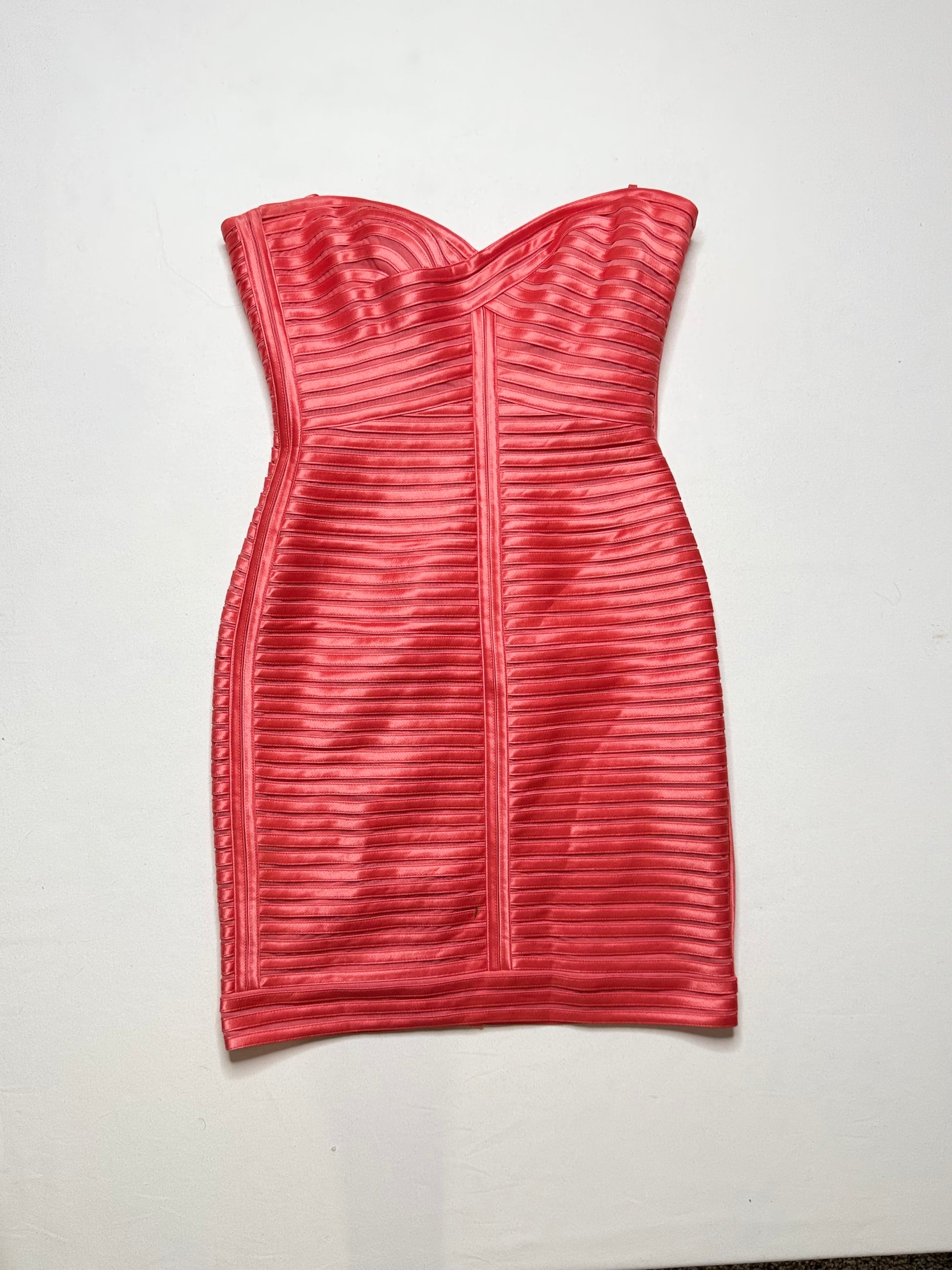 BCBG Max Azria Coral Satin Ribbed Bodycon Dress – Size 8