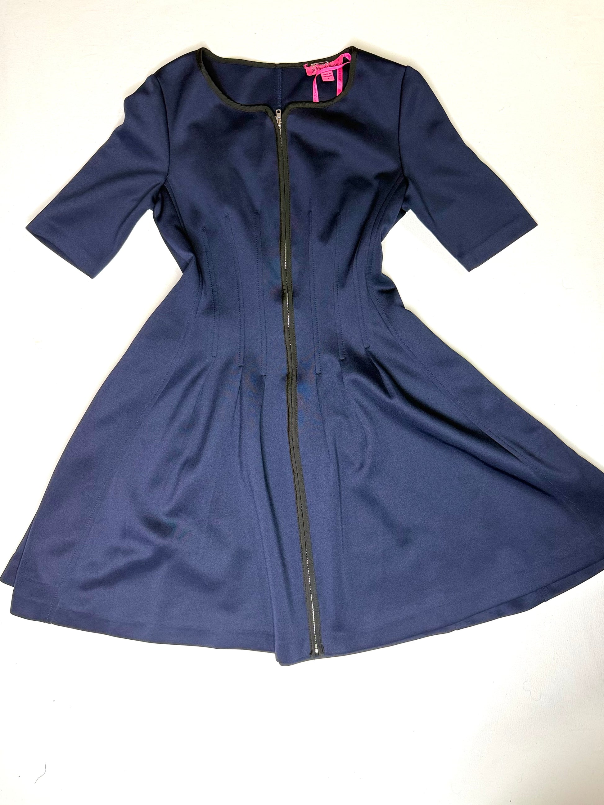 Betsey Johnson Navy Blue Scuba Fit & Flare Zip Front Midi Dress Size 4