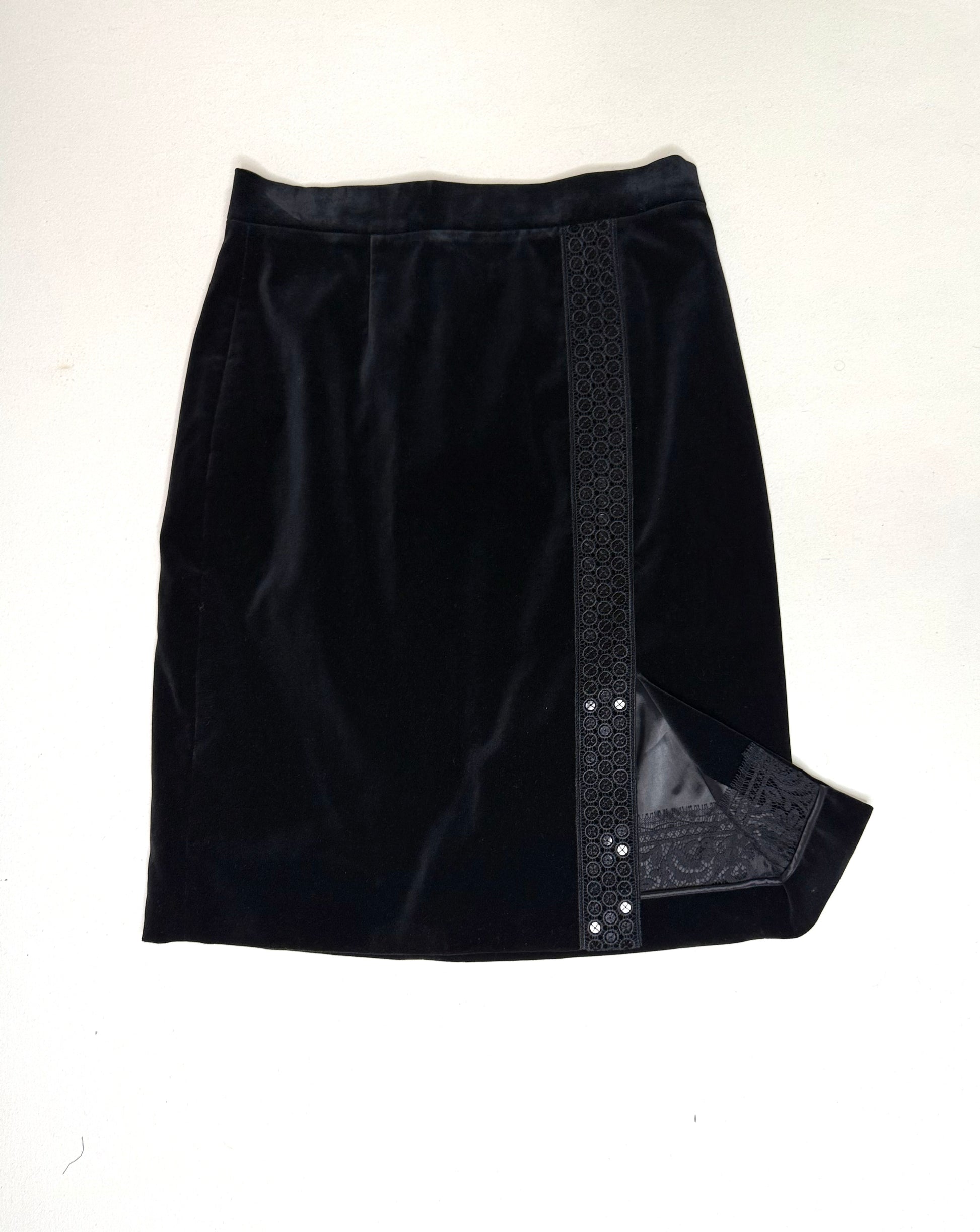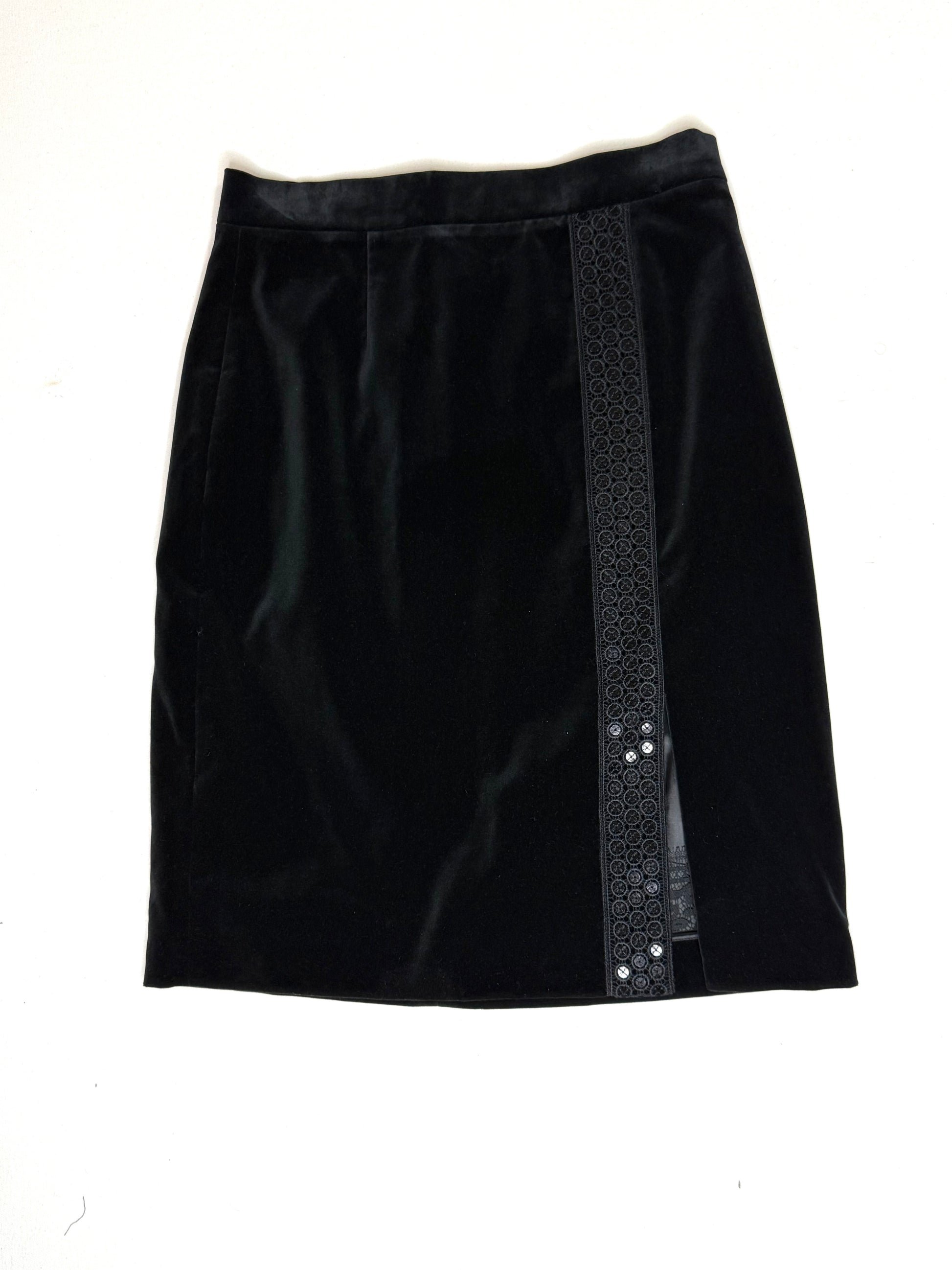 Brooks Brothers Black Velvet Pencil Skirt w/ Sequin Slit Detail Size 4