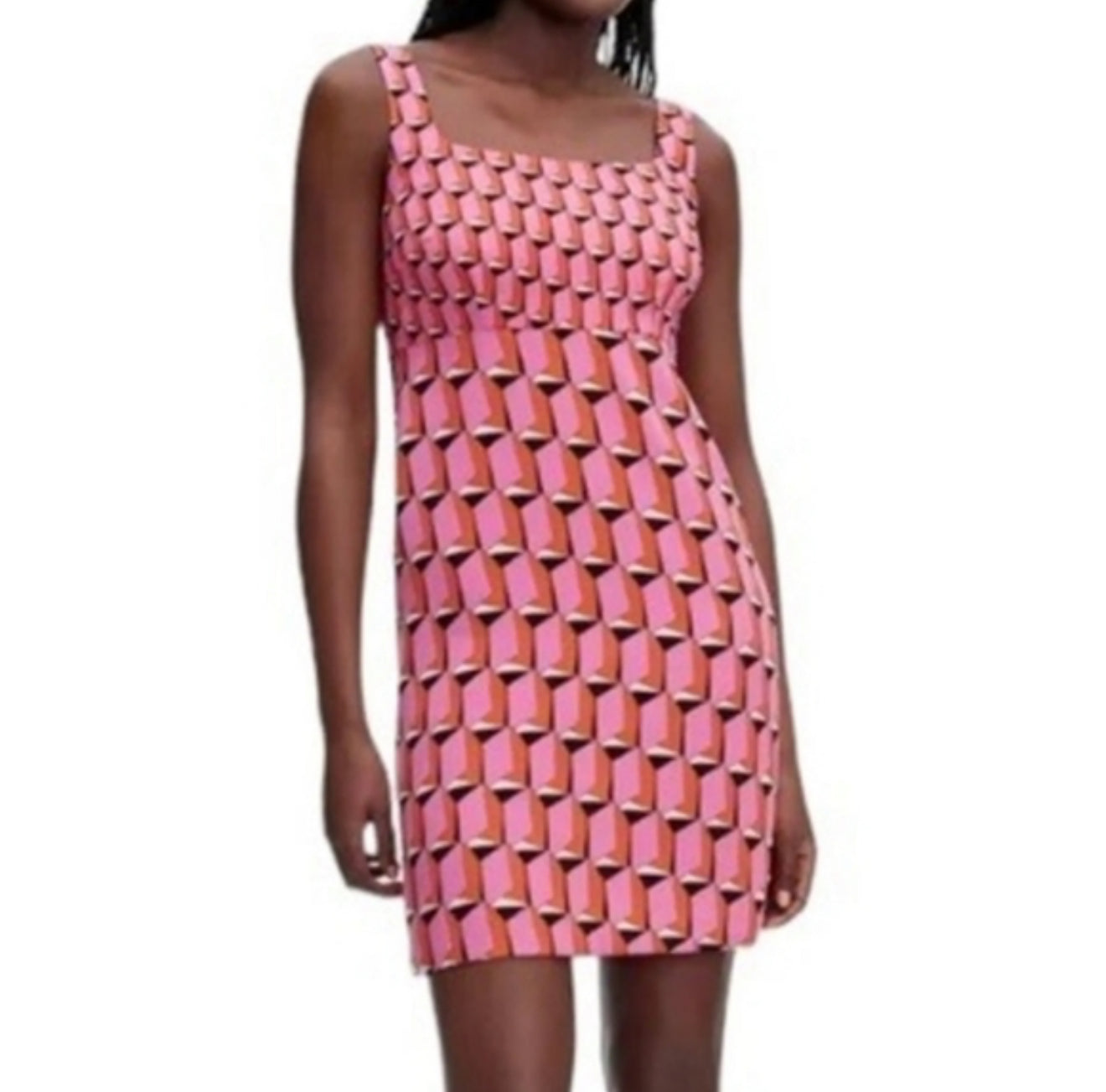 Diane von Furstenberg Geometric Mod Print Mini Dress – |Sleeveless, Retro Style, 100% Recycled Polyester
