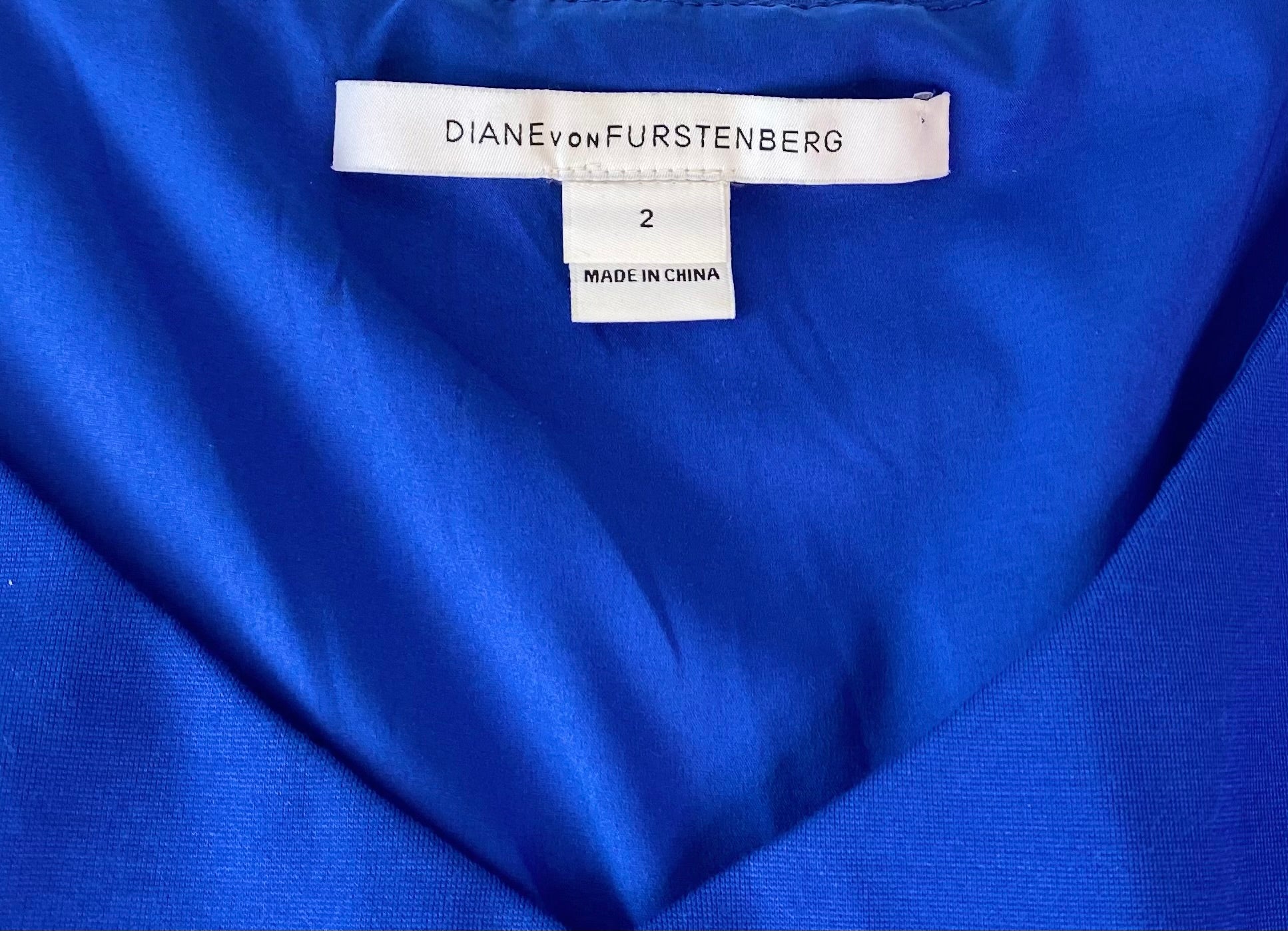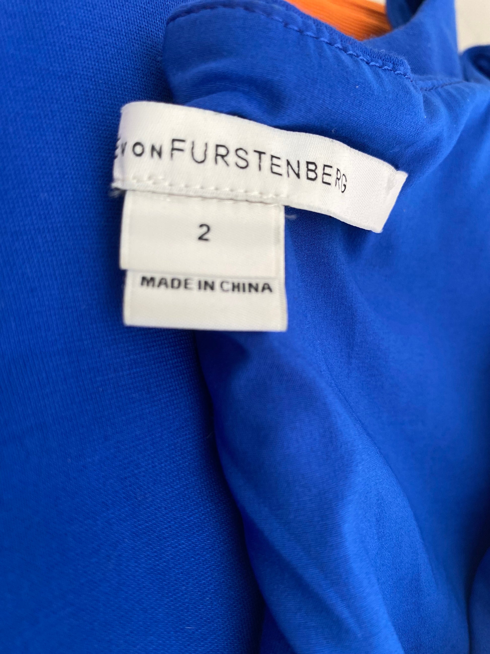 Turn heads in this elegant Diane von Furstenberg cobalt blue sheath dress, designed with a sleek V-neckline, flattering ruched waist, and form-enhancing silhouette. Crafted from a premium stretch blend of polyester, viscose, cotton, and spandex, it delivers a structured yet flexible fit — perfect for office wear, events, or date nights.
