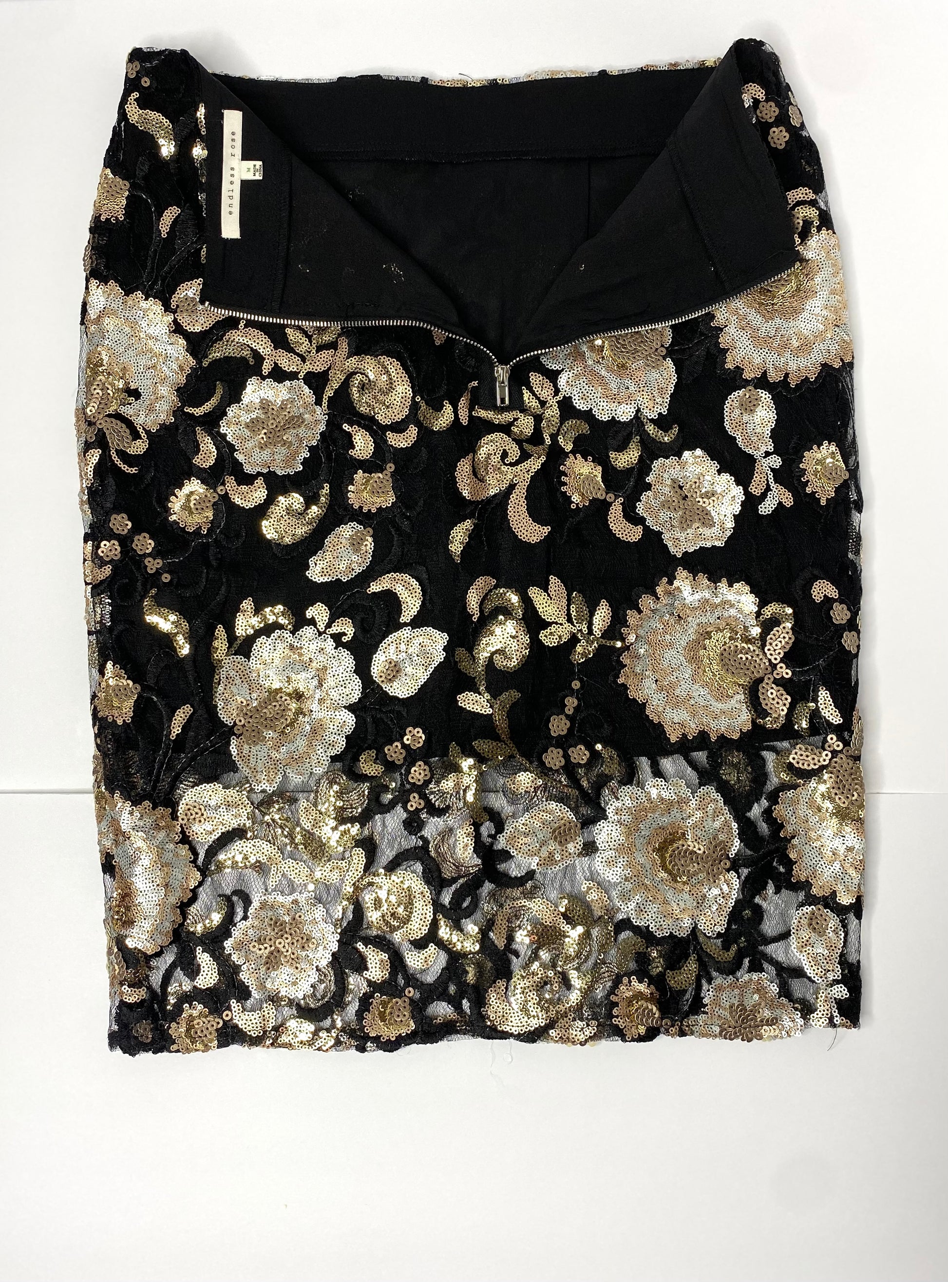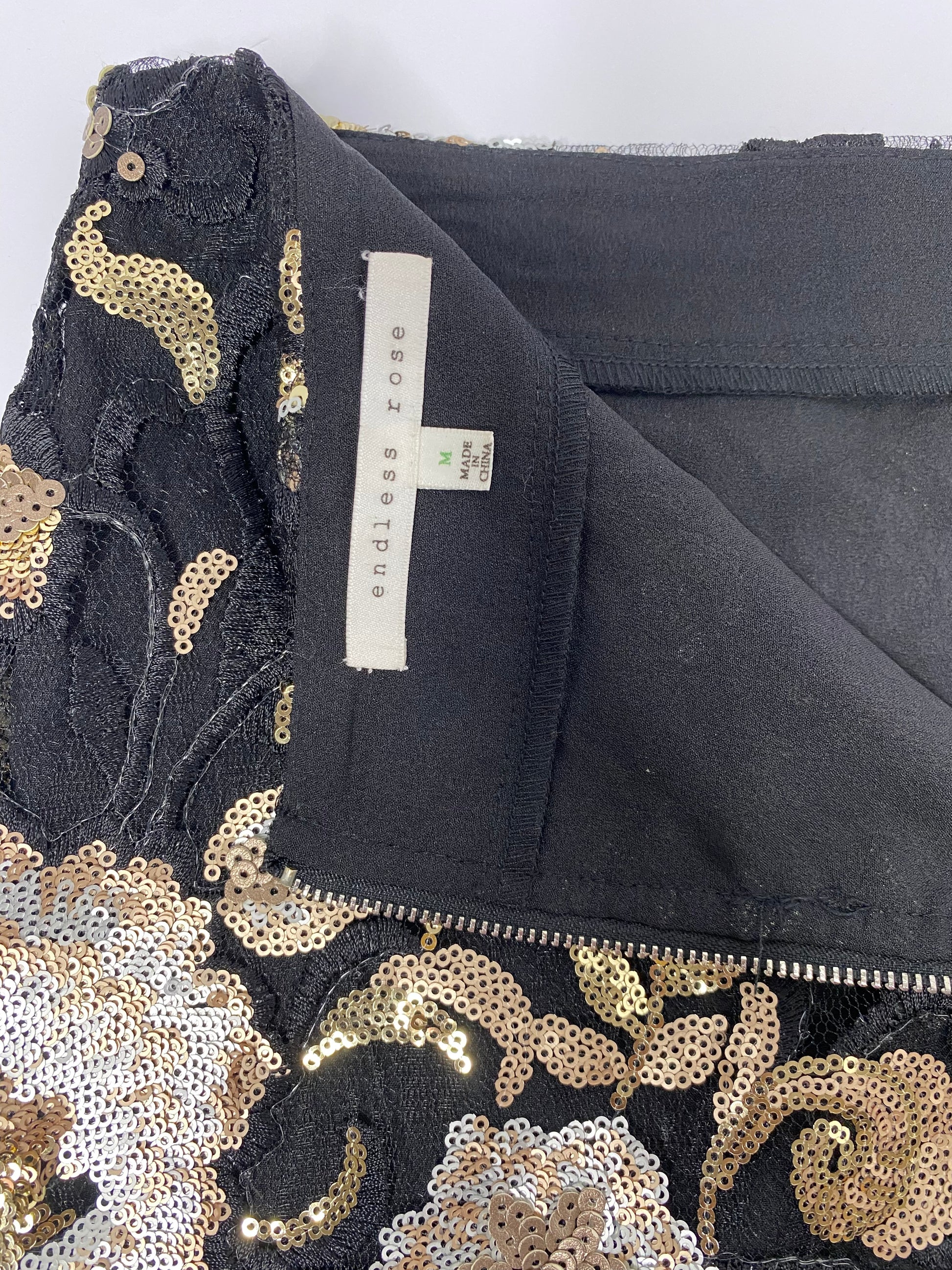 Endless Rose Gold Sequin Mesh Skirt Size M | Floral Pattern | Lined Party Skirt 100% Polyester