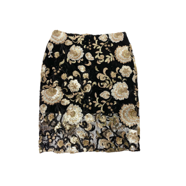 Add shimmer and sophistication to your wardrobe with this Endless Rose Metallic Gold Sequin Mesh Skirt in size Medium. This stunning skirt features an all-over floral sequin design on sheer mesh, fully lined for comfort and coverage. It’s a head-turning piece perfect for parties, special occasions, or holiday celebrations.