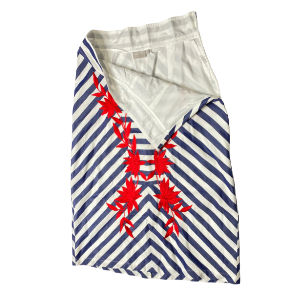 eShakti Blue & White Chevron Embroidered A-Line Skirt – Size 10