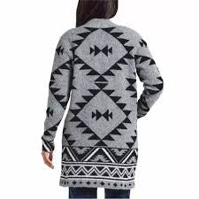 Frye Women’s Long Sleeve Tribal Print Open Front Cardigan – Grey & Black Size Medium