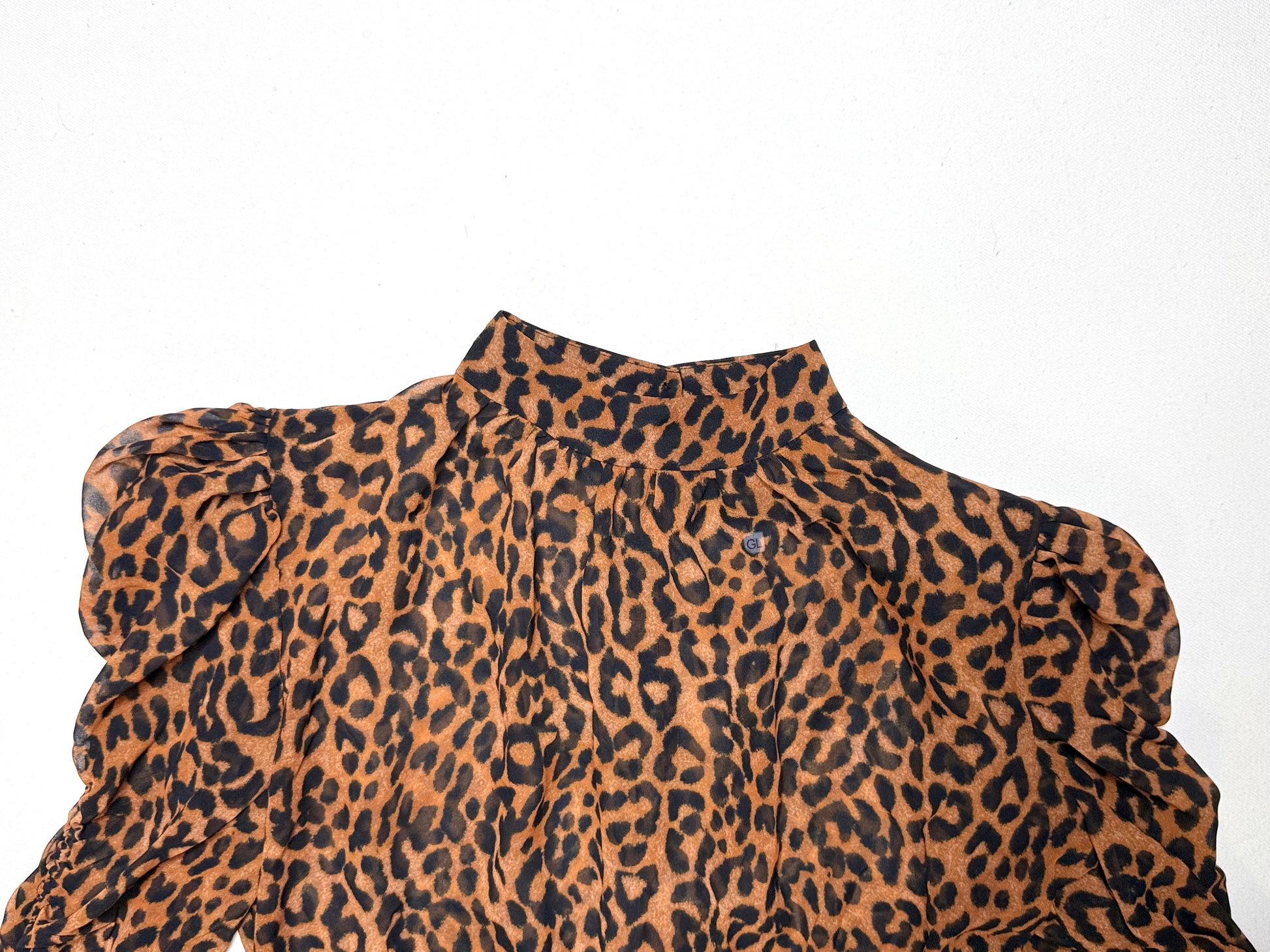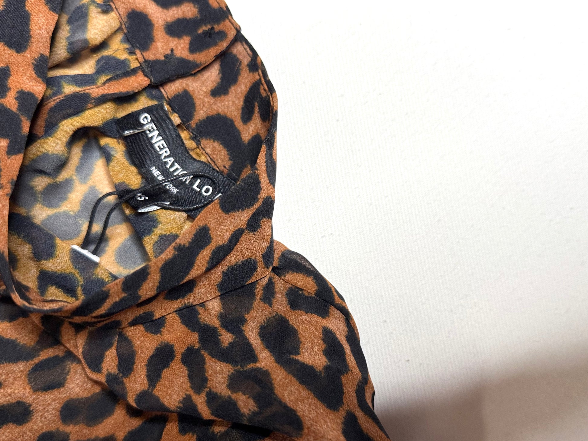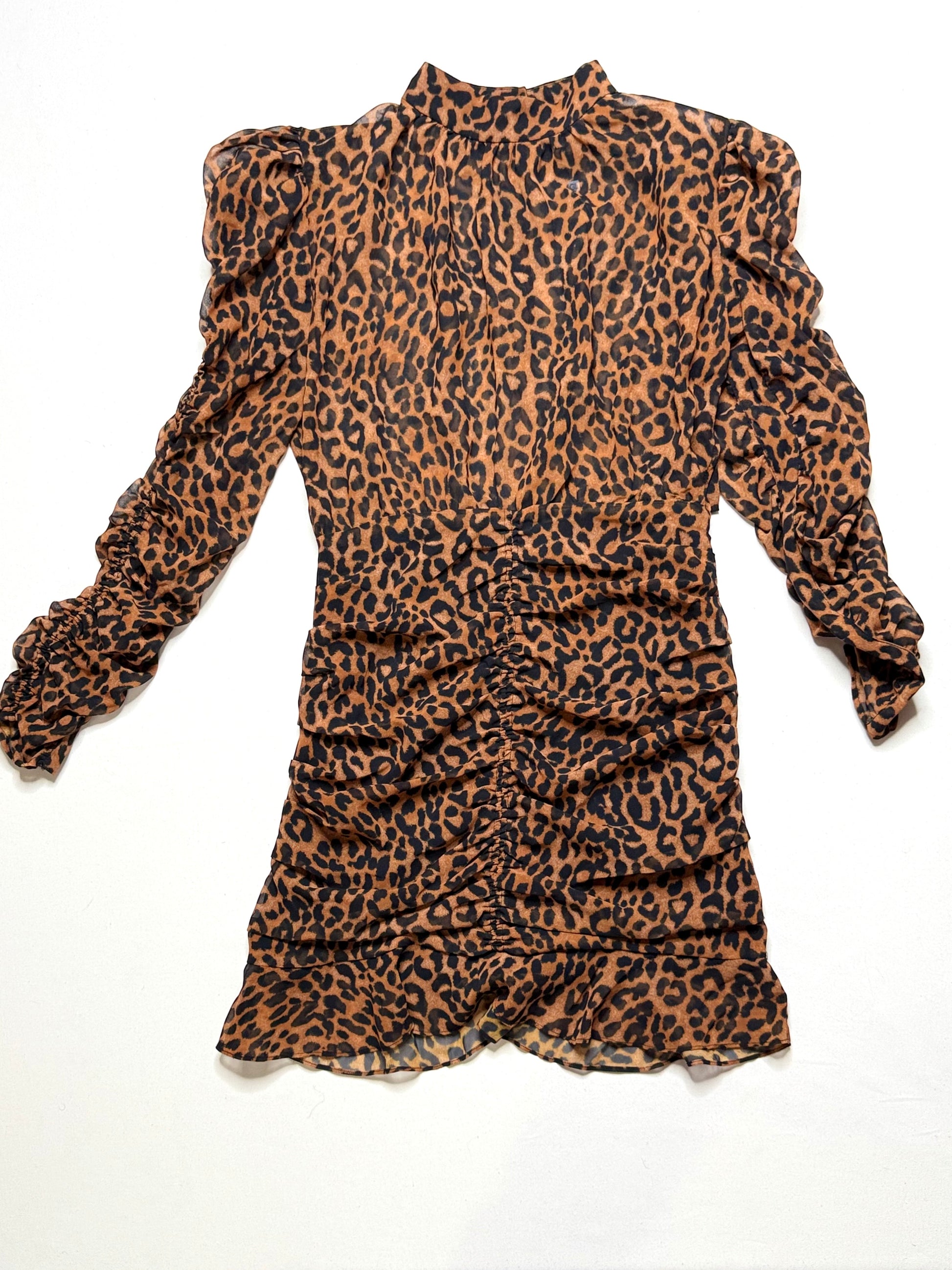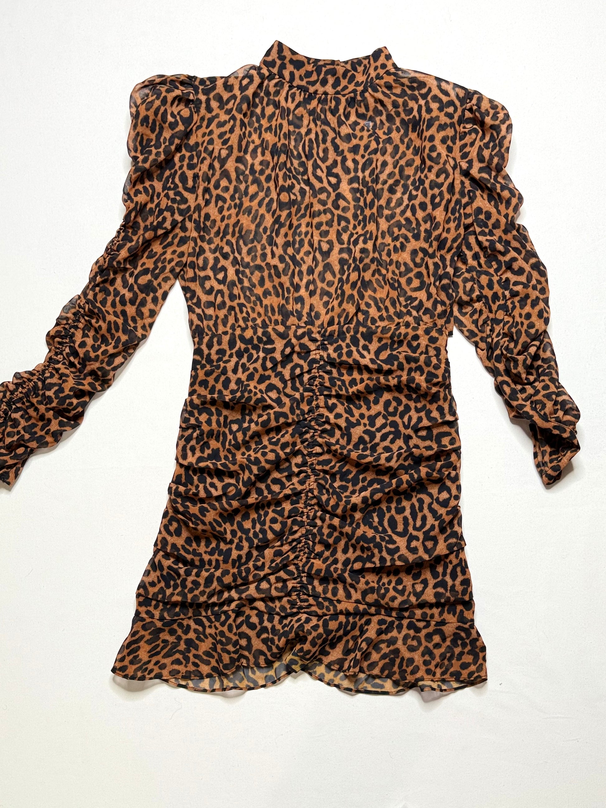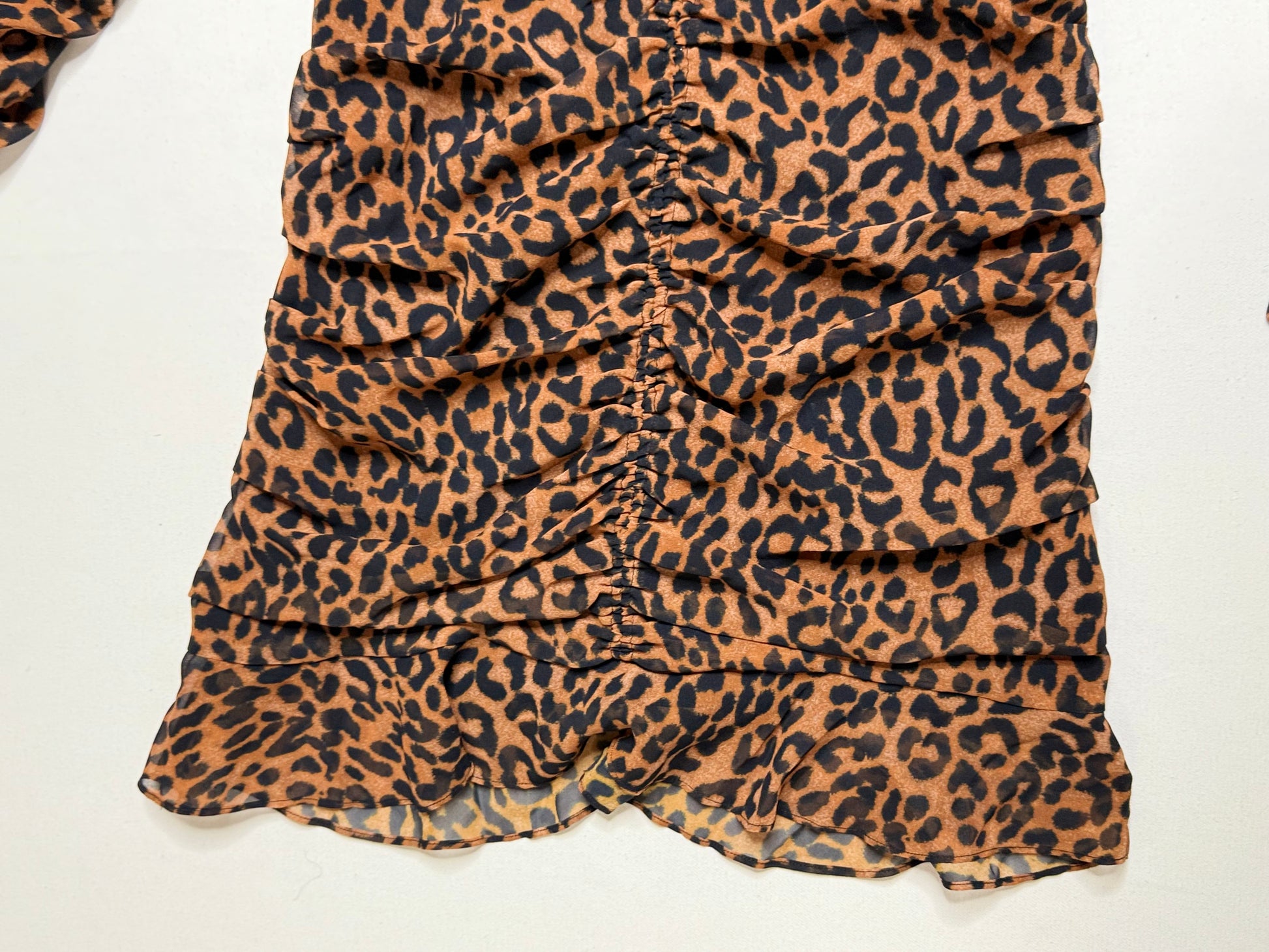 Generation Love LAVIA Speckled Leopard Ruched Mini Dress – Size XS, Long Sleeve,