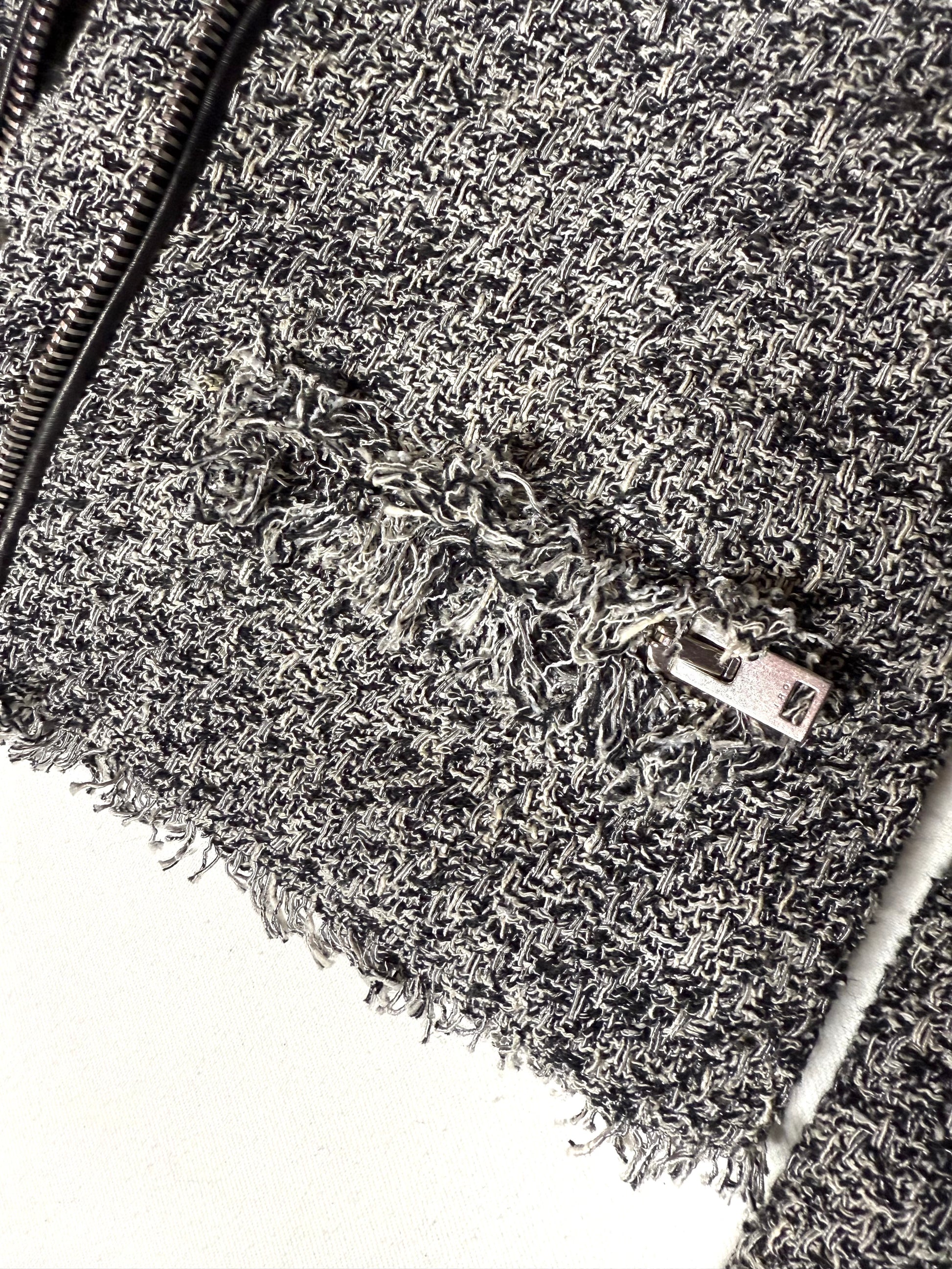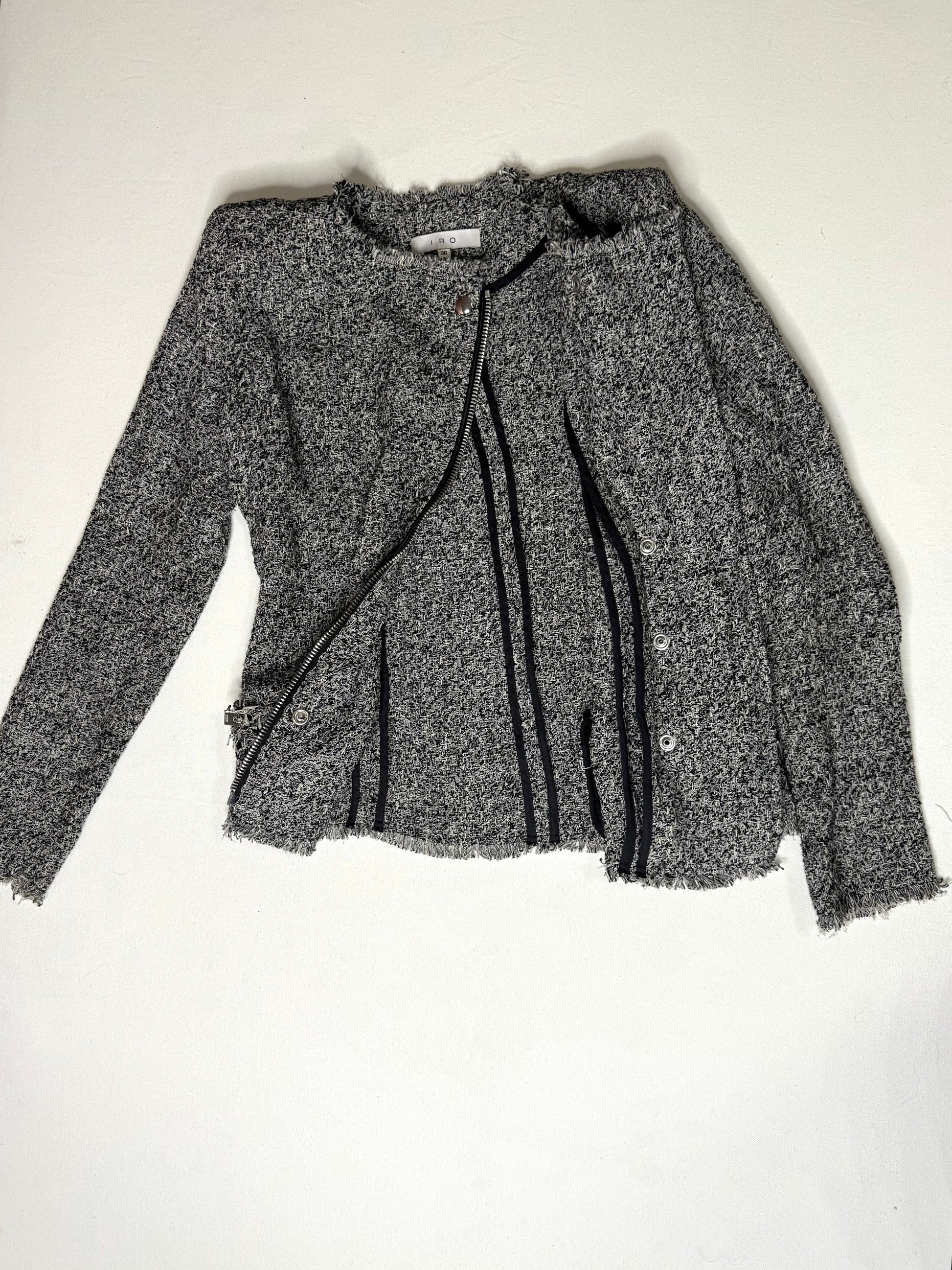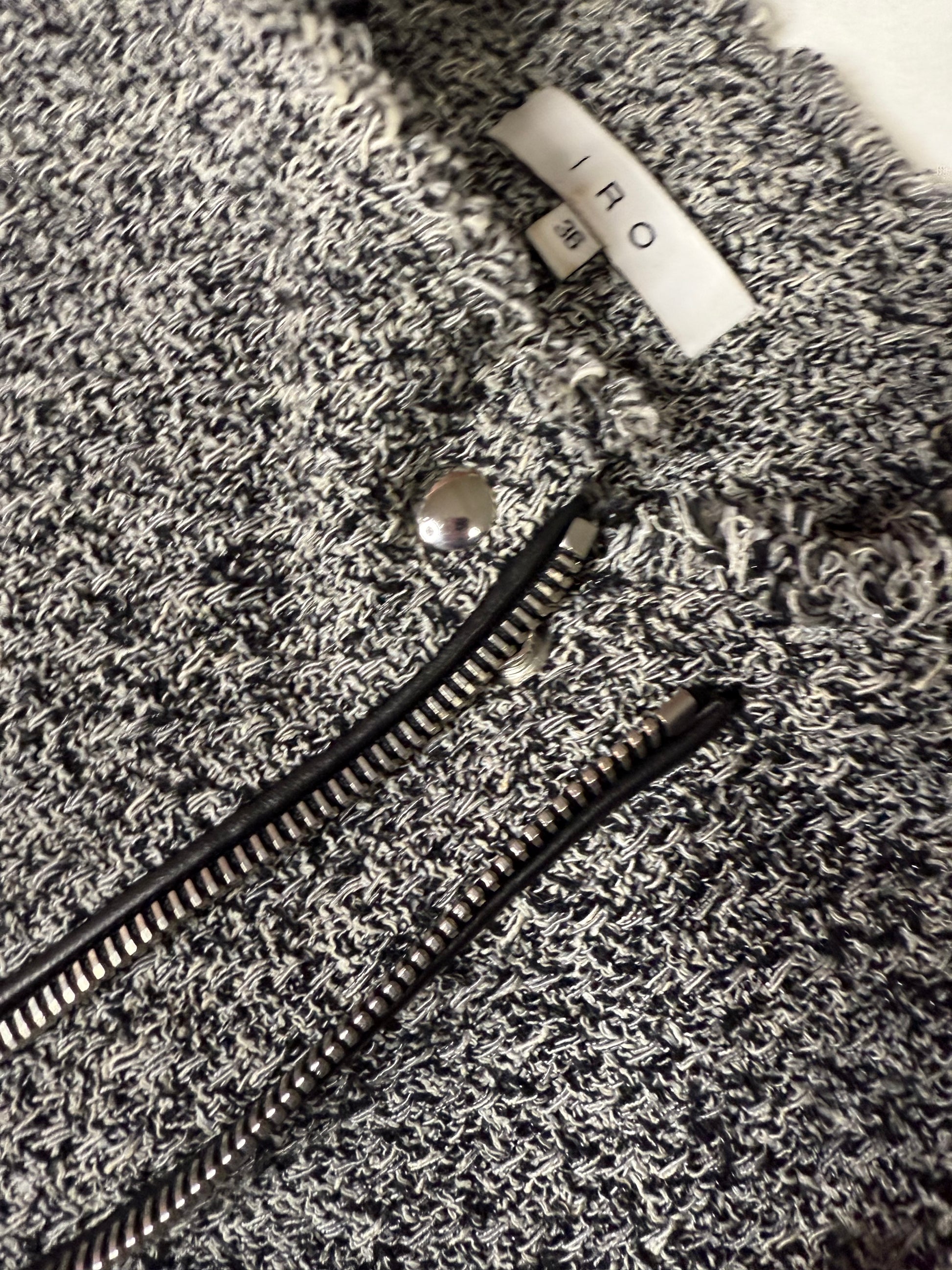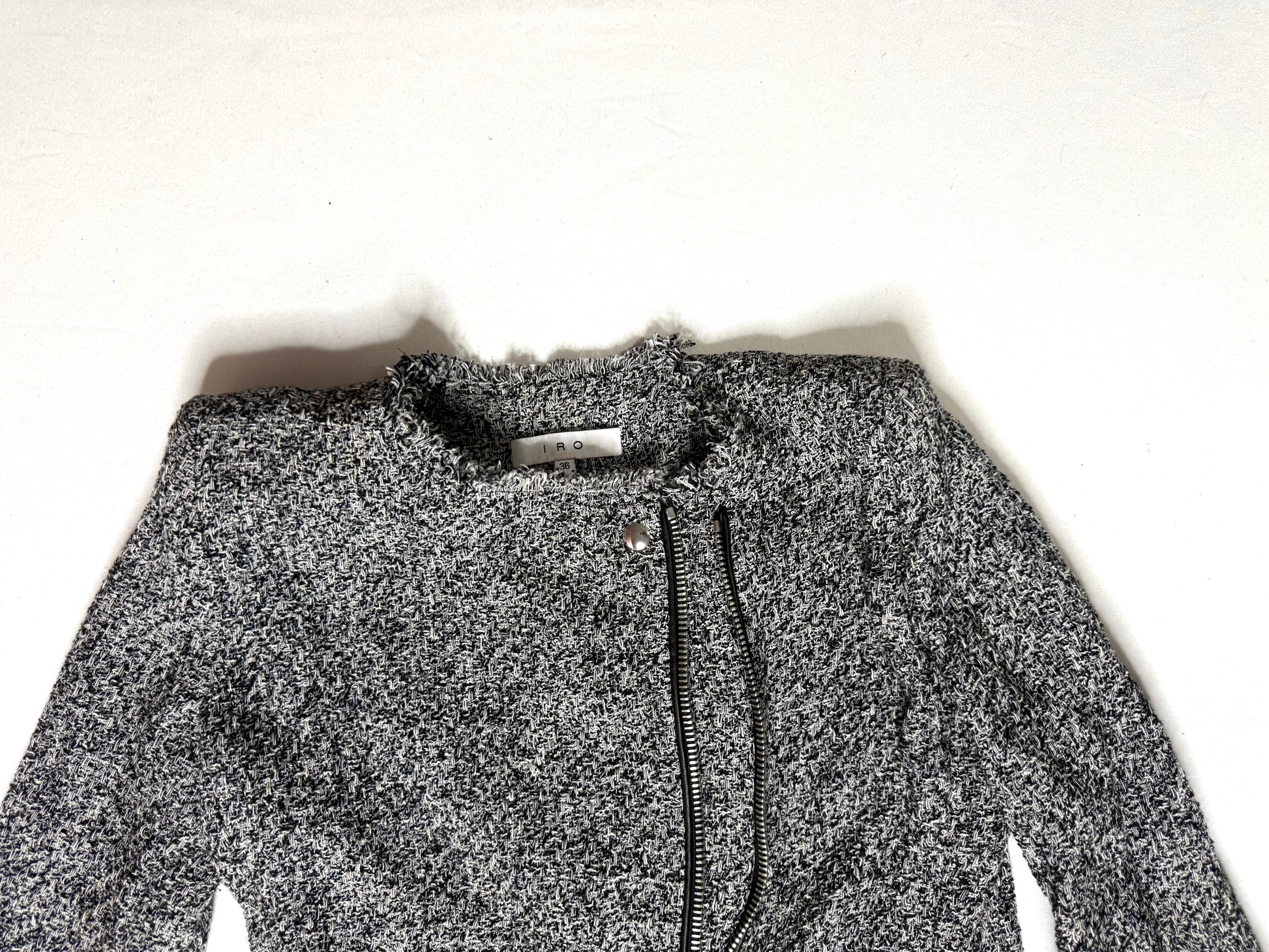 IRO Carlota Tweed Bouclé Asymmetrical Zip Jacket Gray Frayed Trim Size 36 (4)
