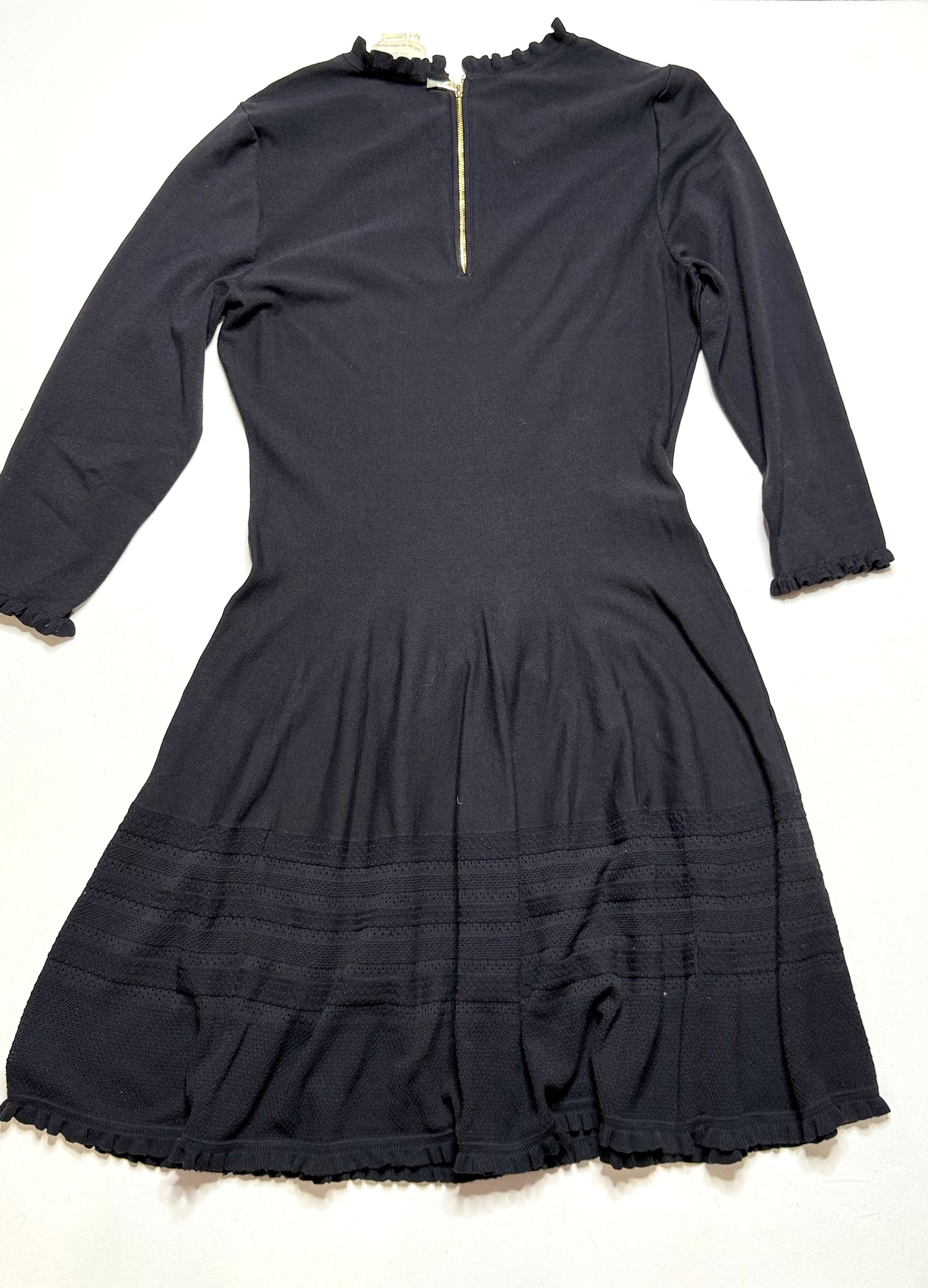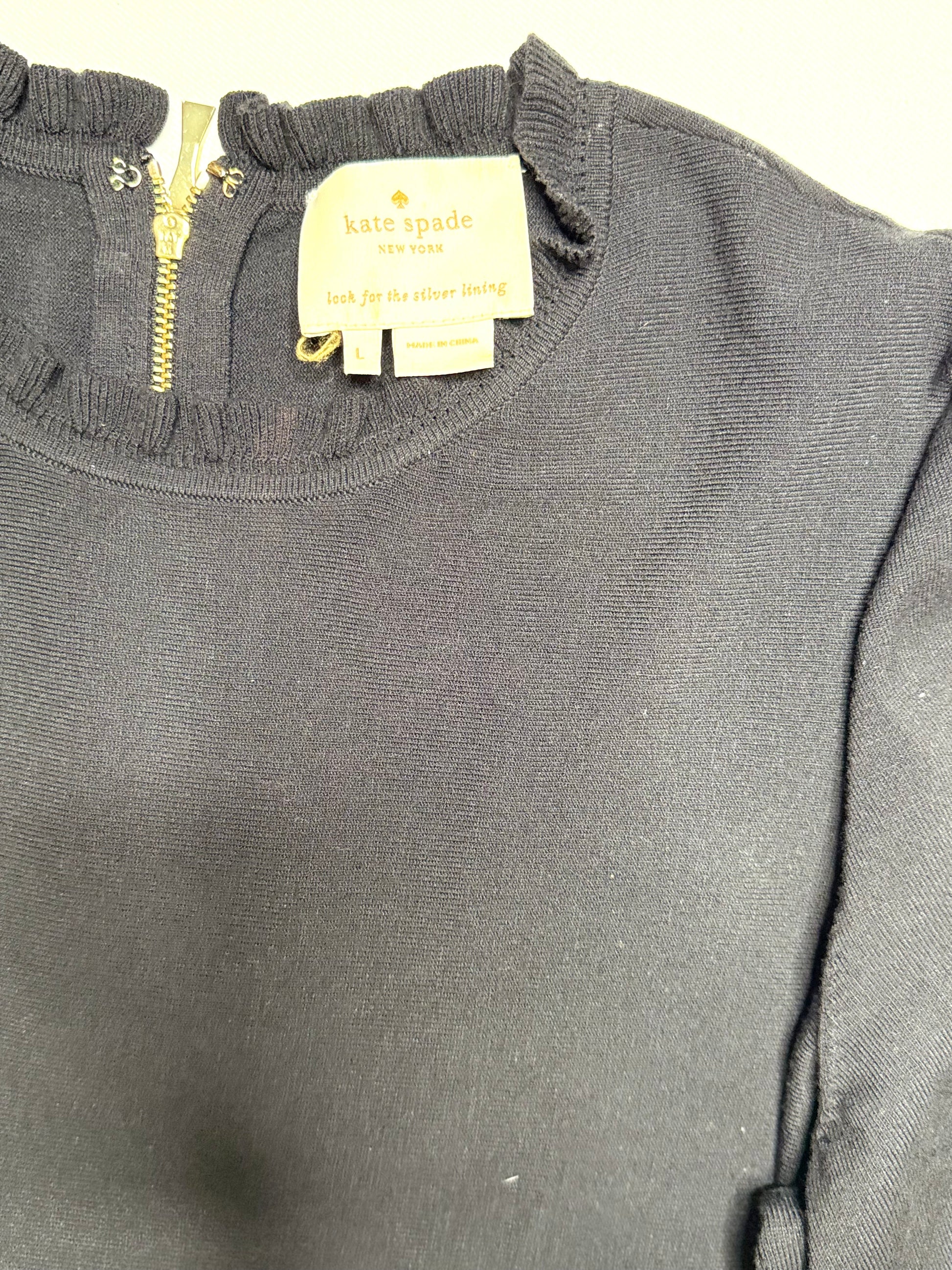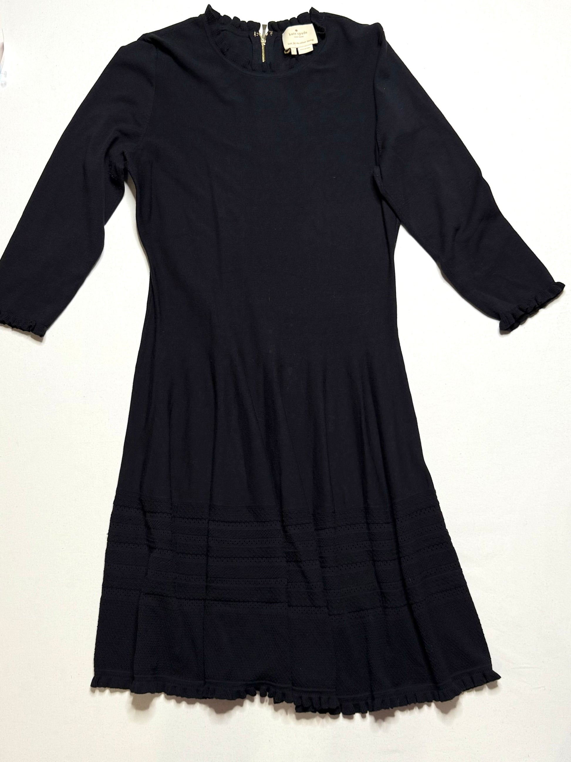 Kate Spade Black Knit Fit & Flare Midi Dress Long Sleeve Ruffle Trim Size Large