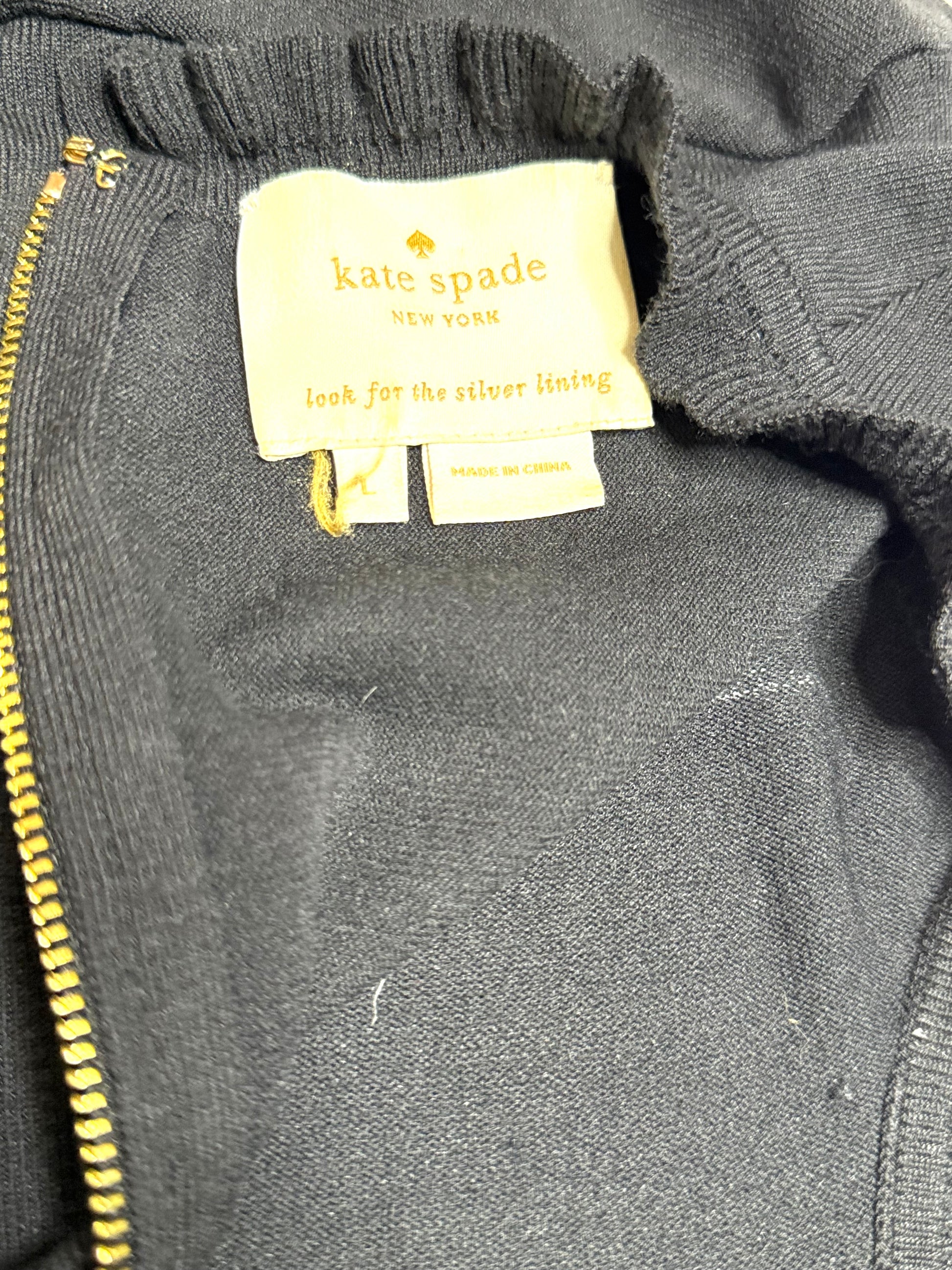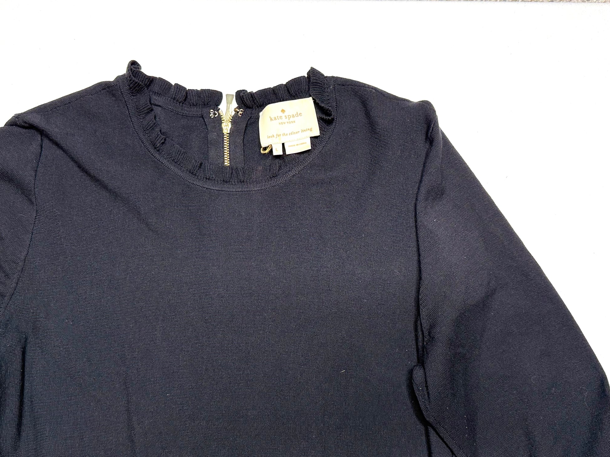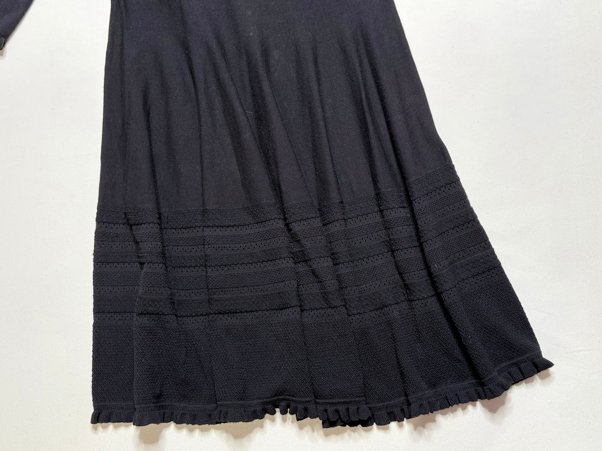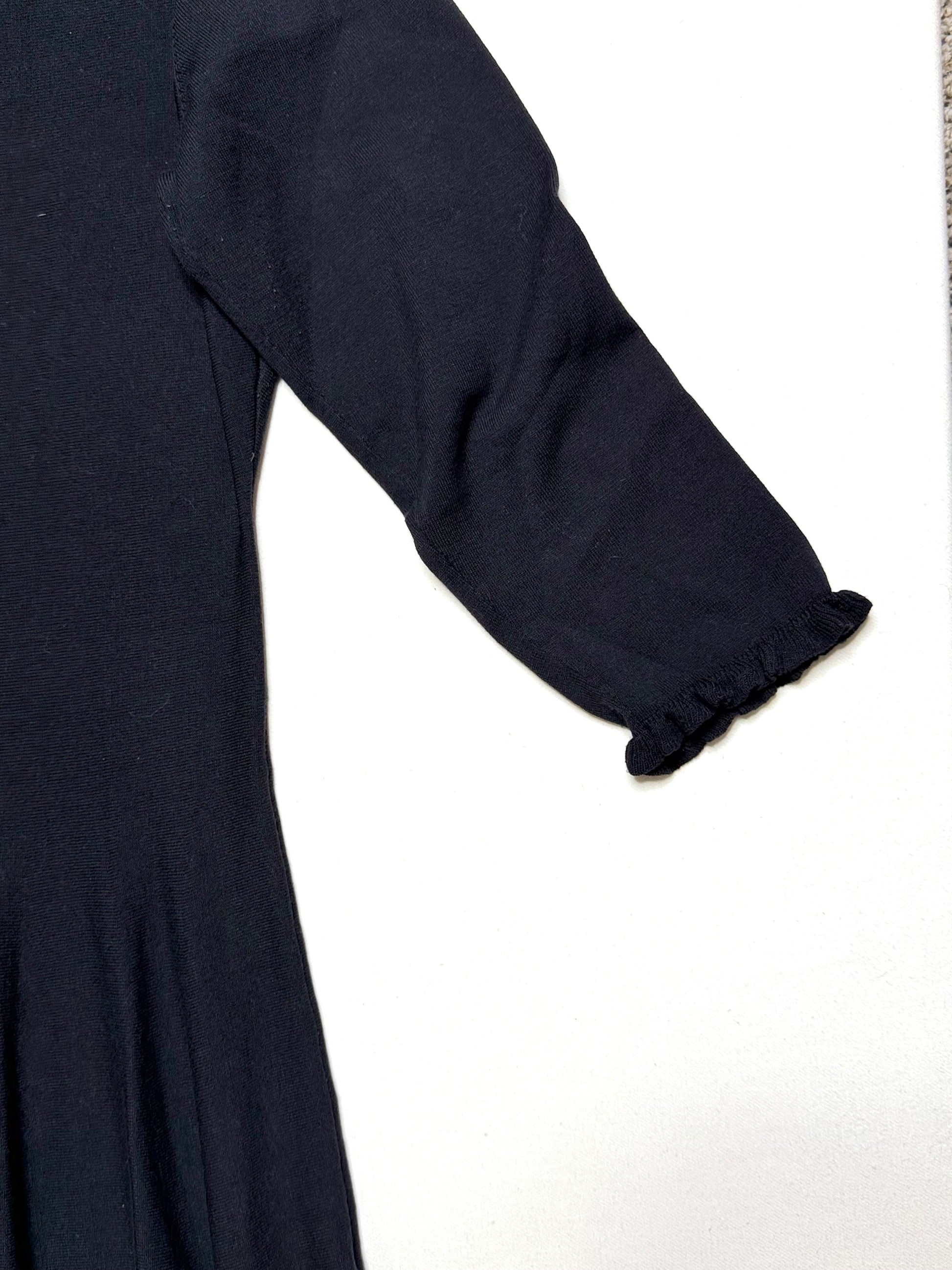 Kate Spade Black Knit Fit & Flare Midi Dress Long Sleeve Ruffle Trim Size Large