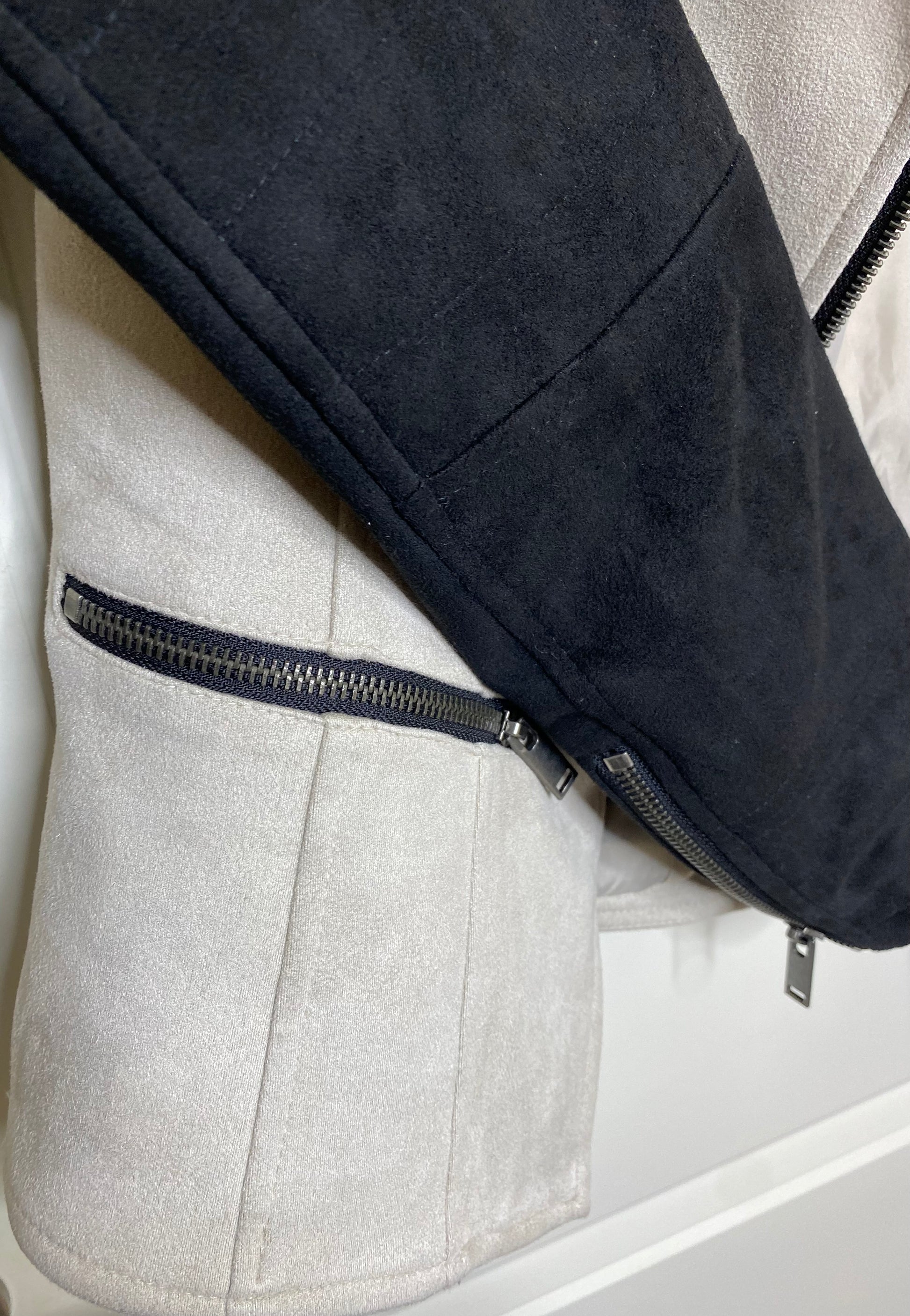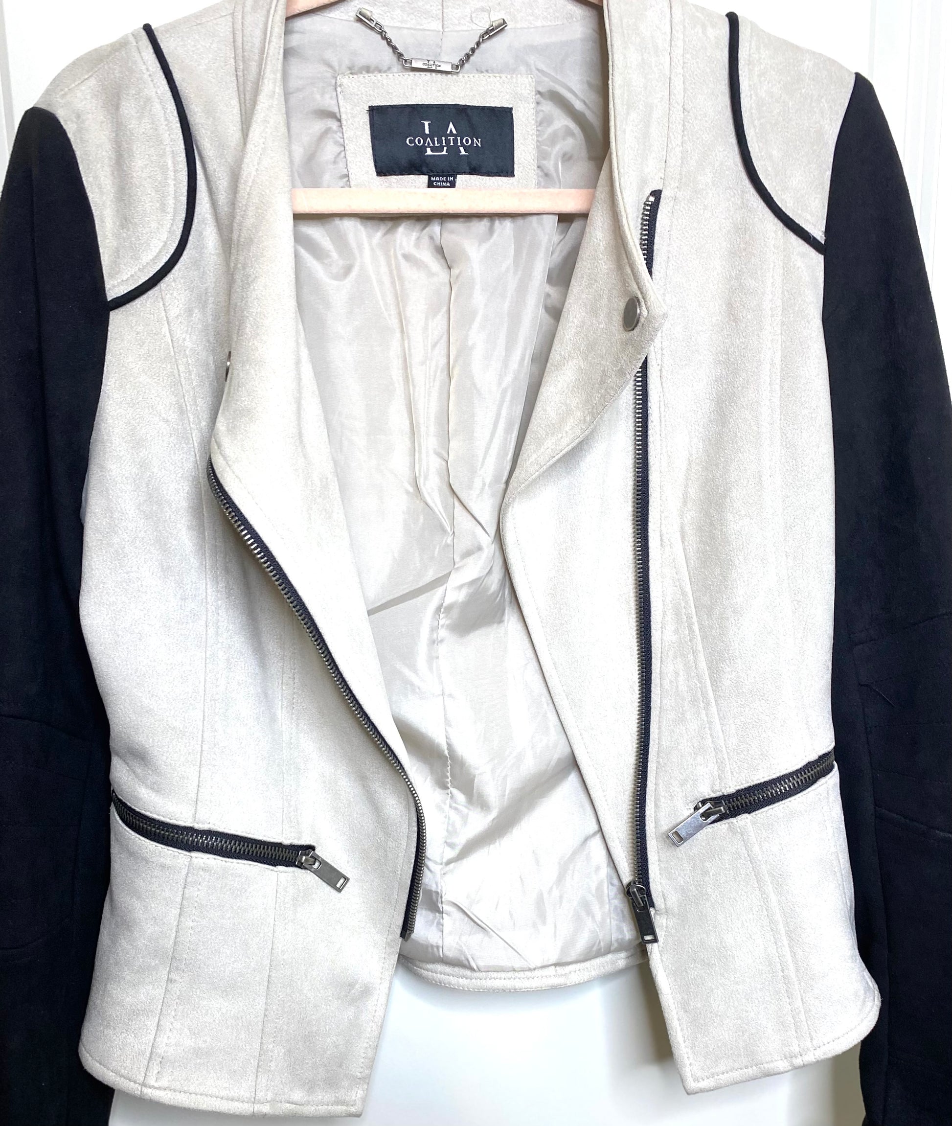 LA Coalition Women's Cream/Black Vegan Leather Moto Jacket Size Medium