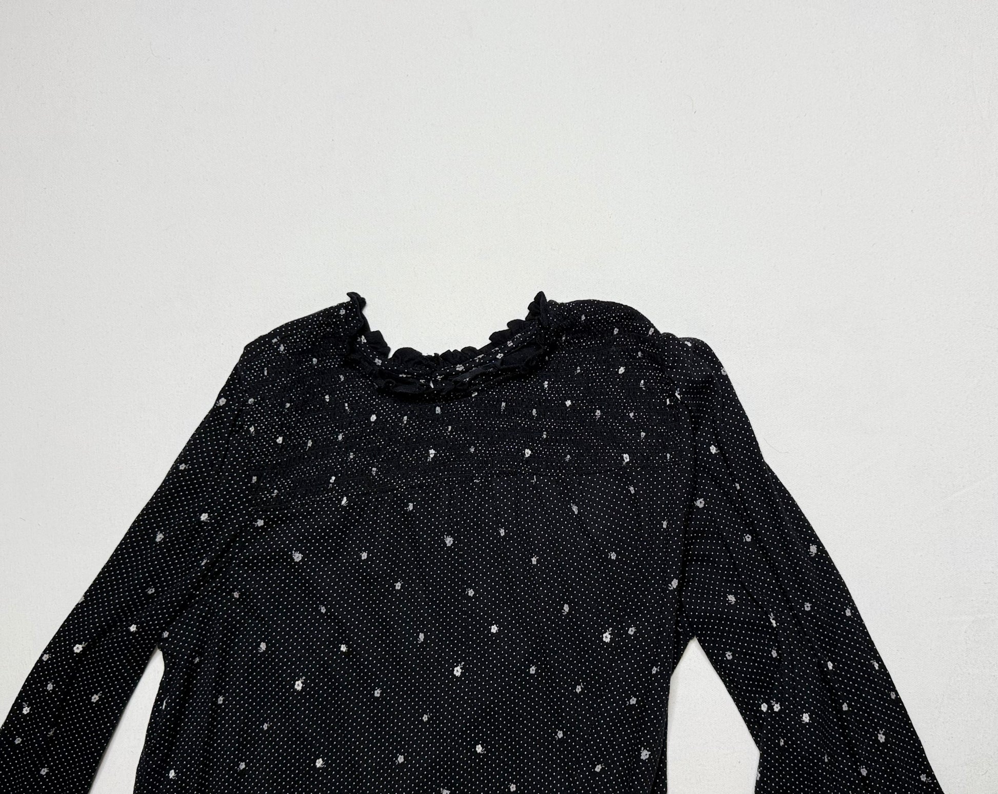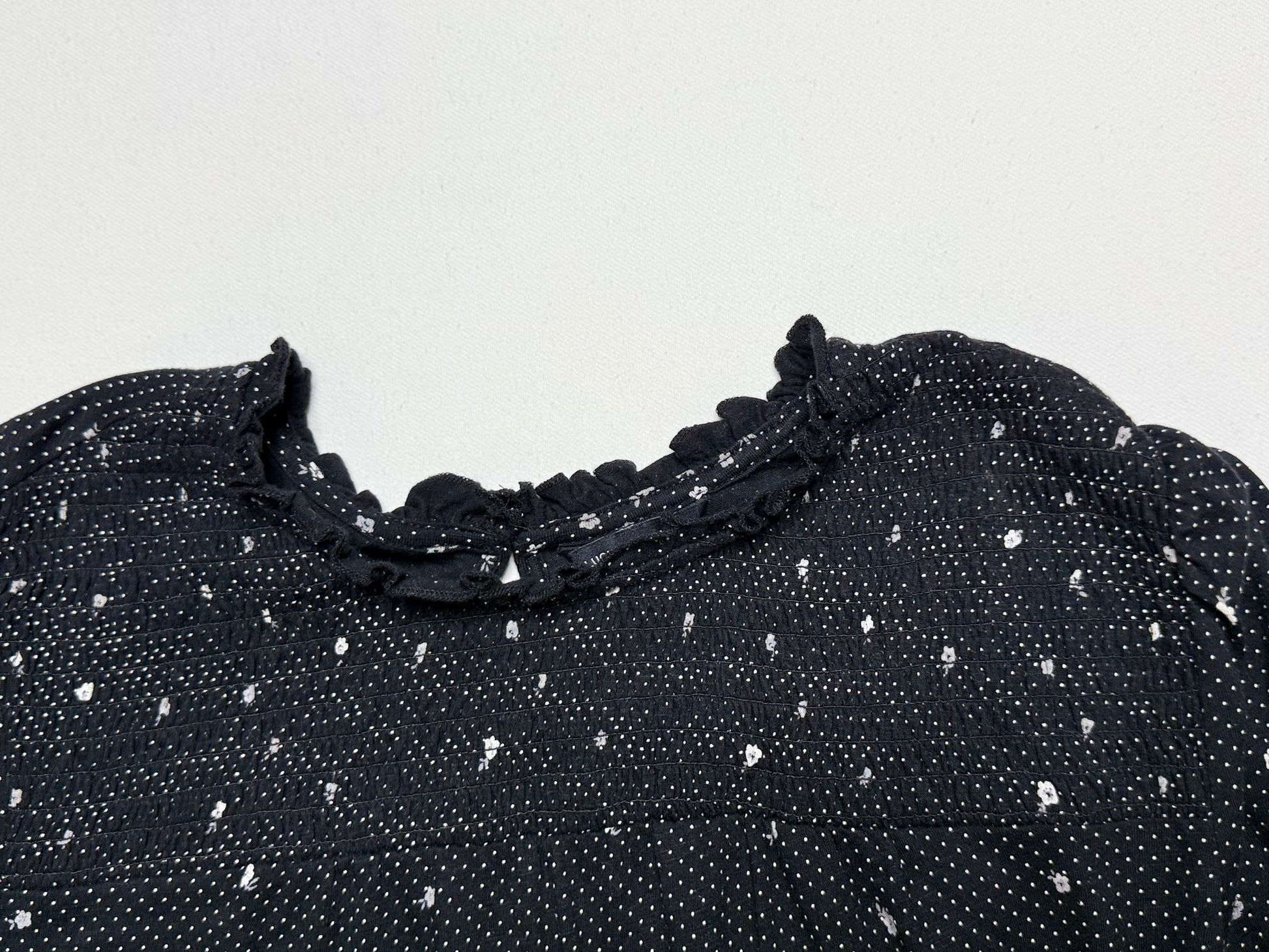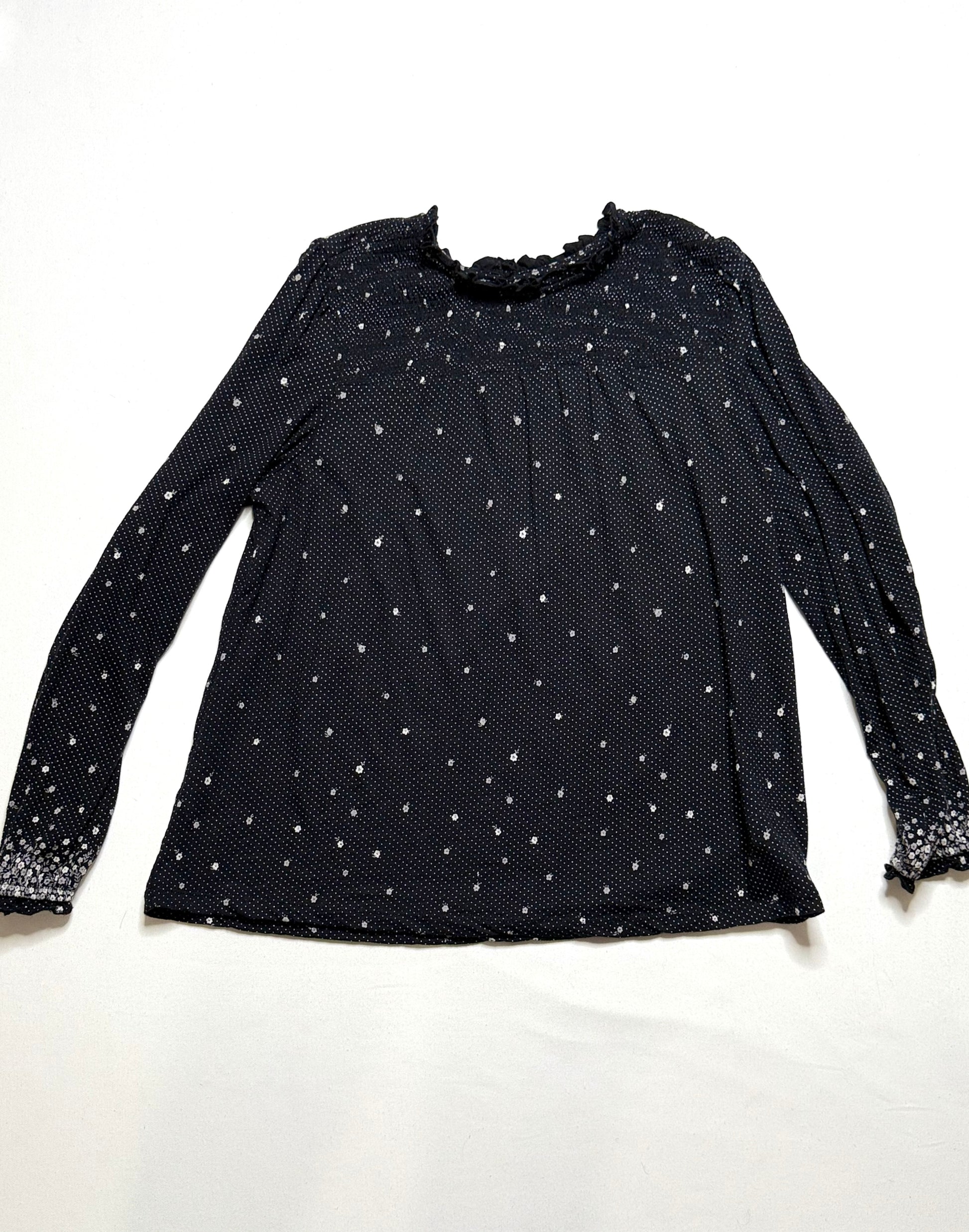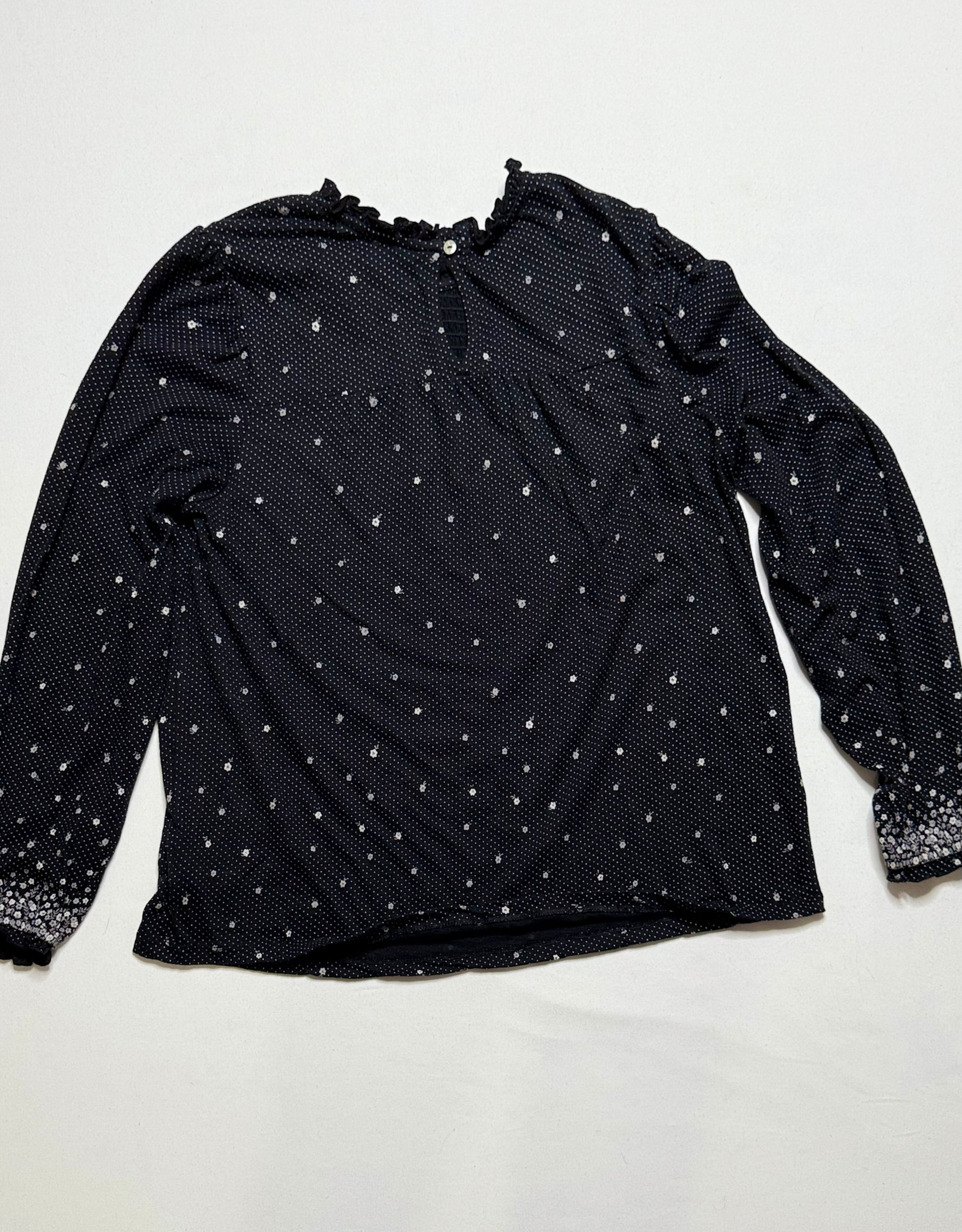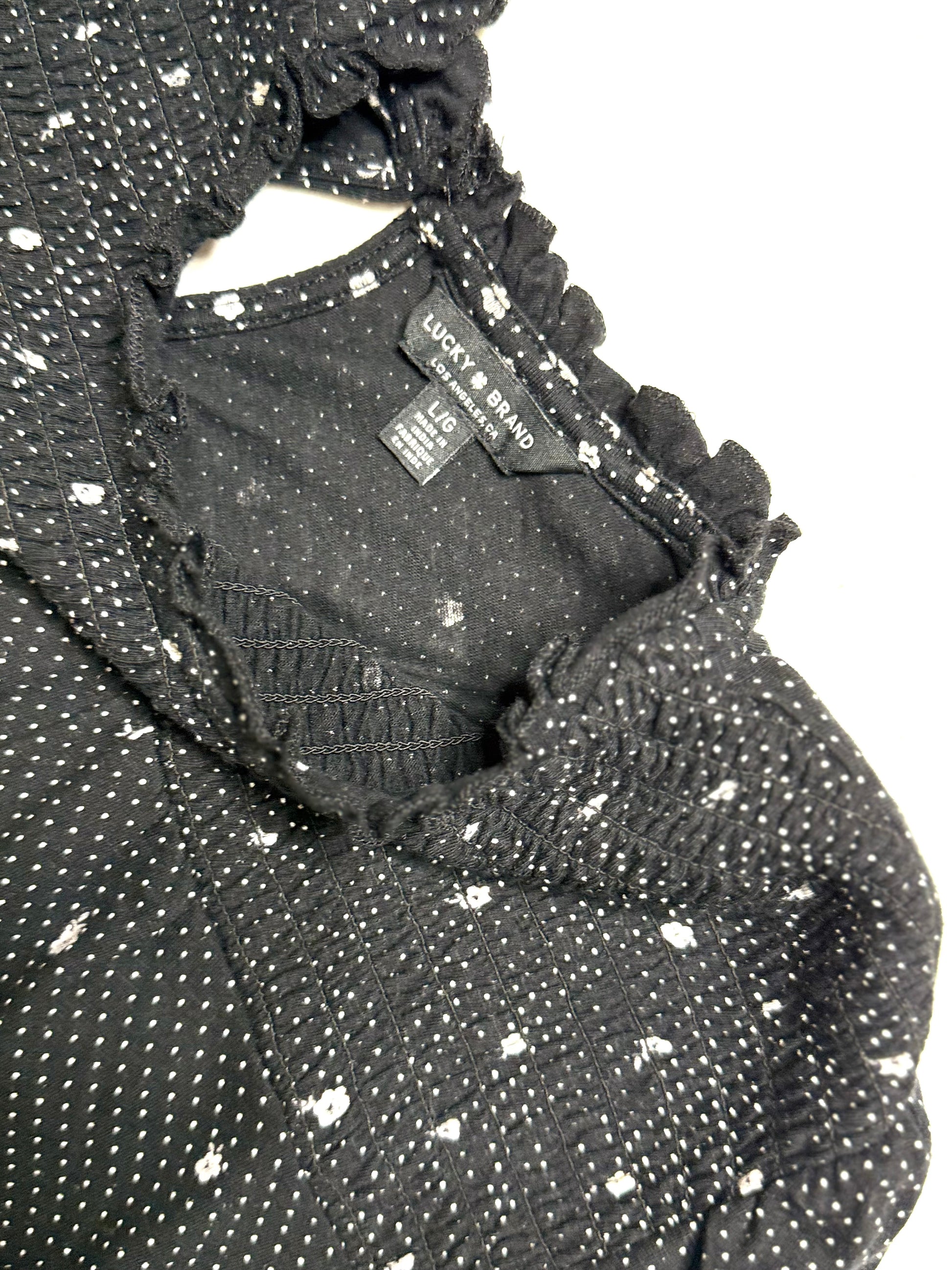 Lucky Brand Black Floral Polka Dot Blouse Peter Pan Collar Button Front Size Large