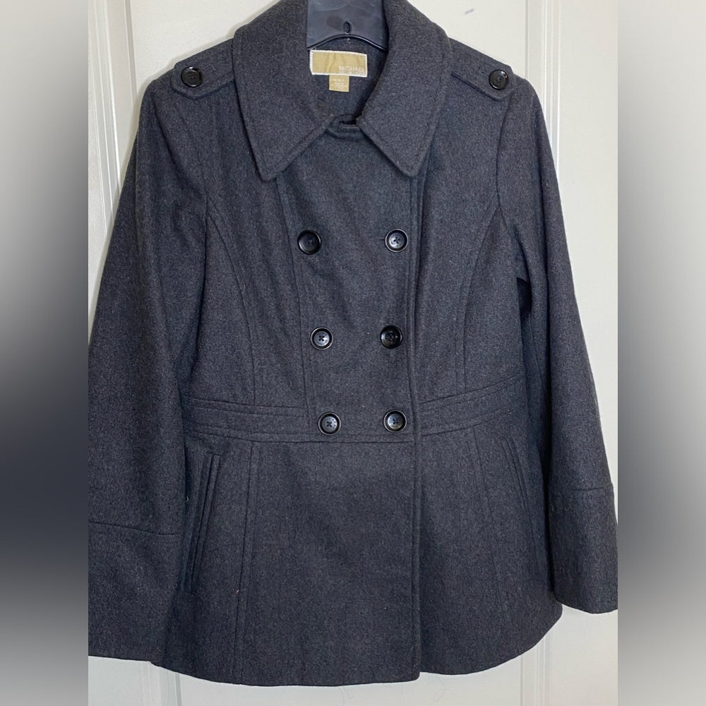Michael Kors Wool Double Breasted Gray Pea Coat Sz M
