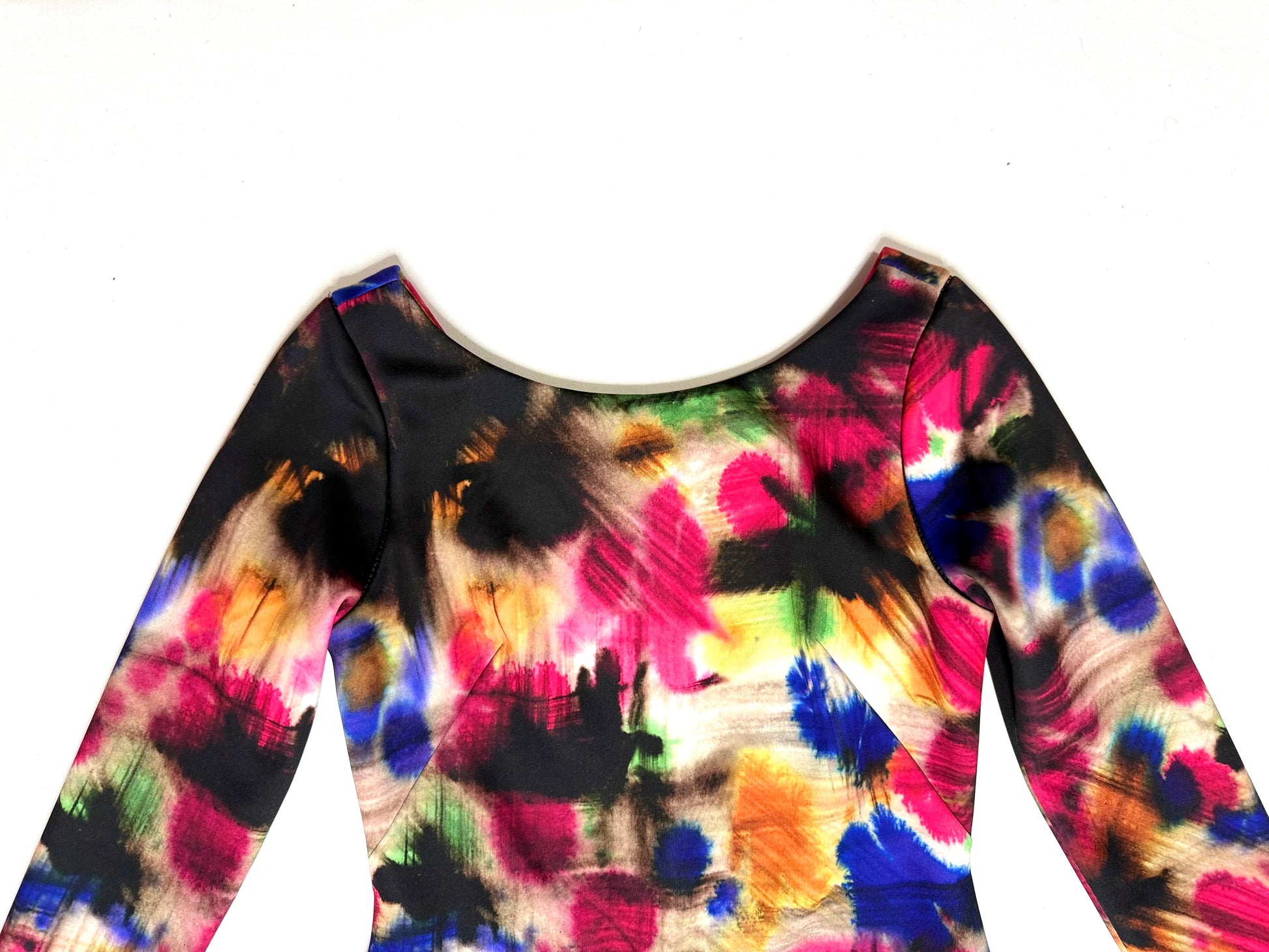 Milly Taylor Graffiti Dress Size 2 Italian Neoprene Sheath Multicolor Print