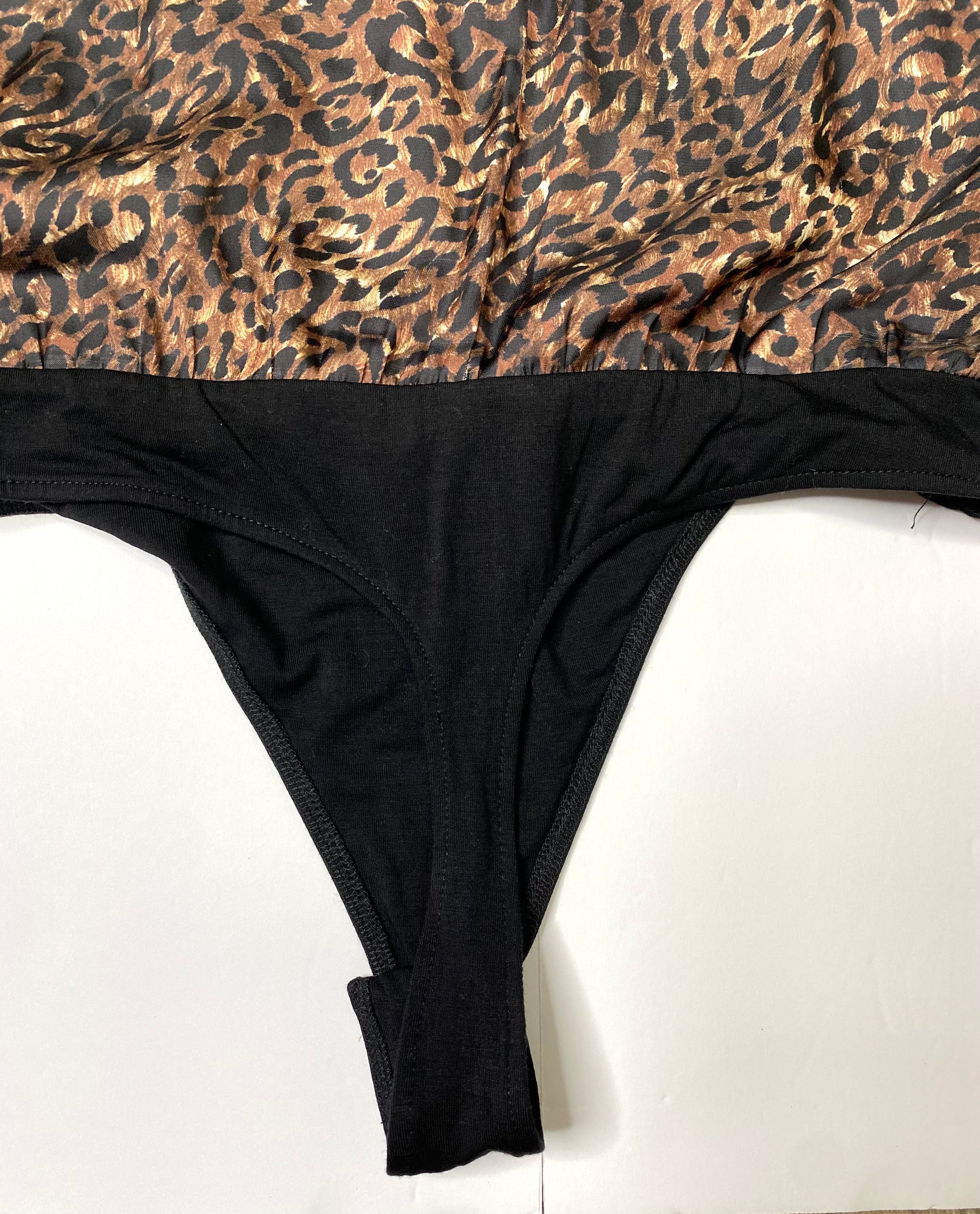 Paige Animal Print Plunging V-Neck Thong Bodysuit – Size Small