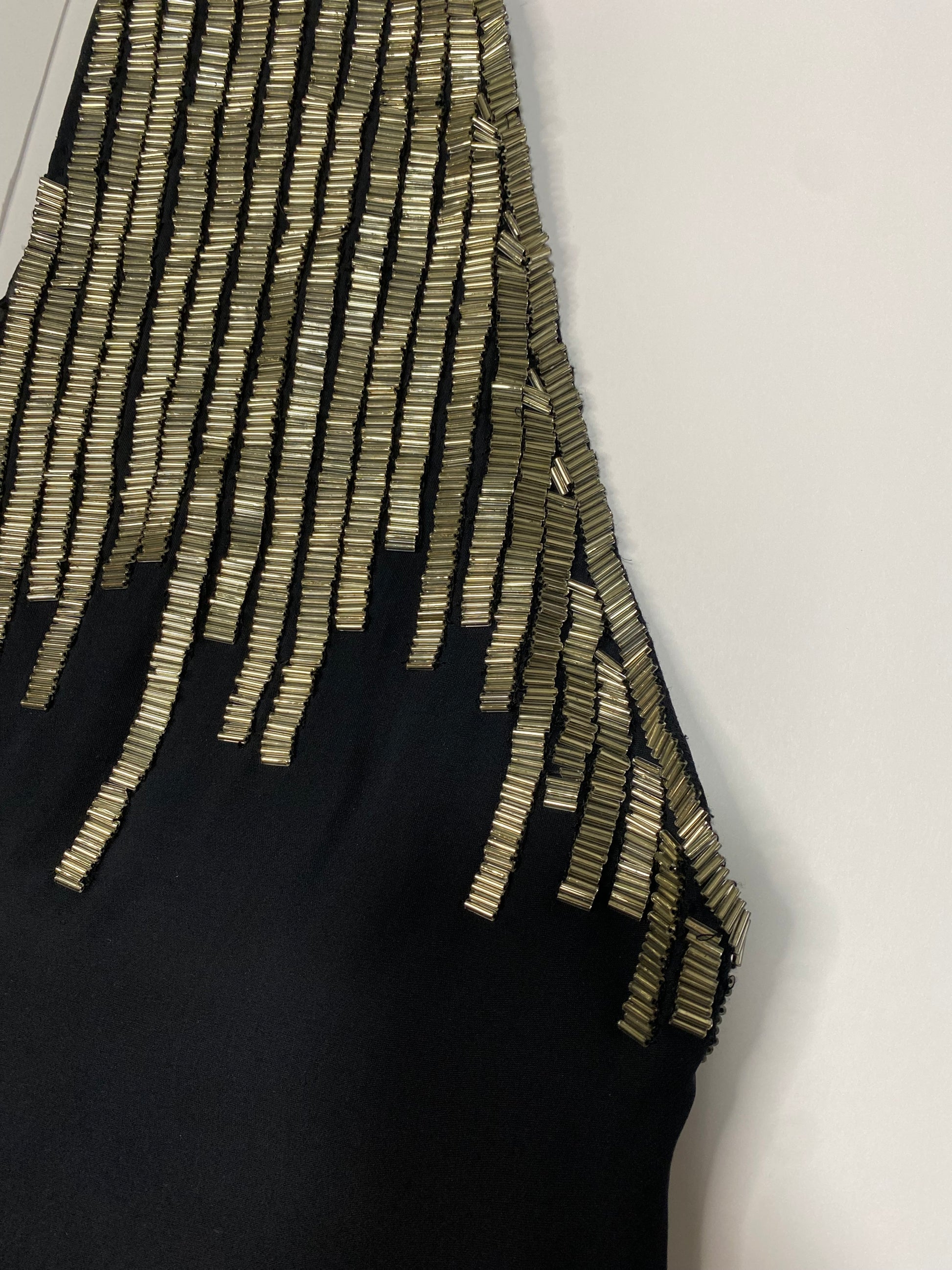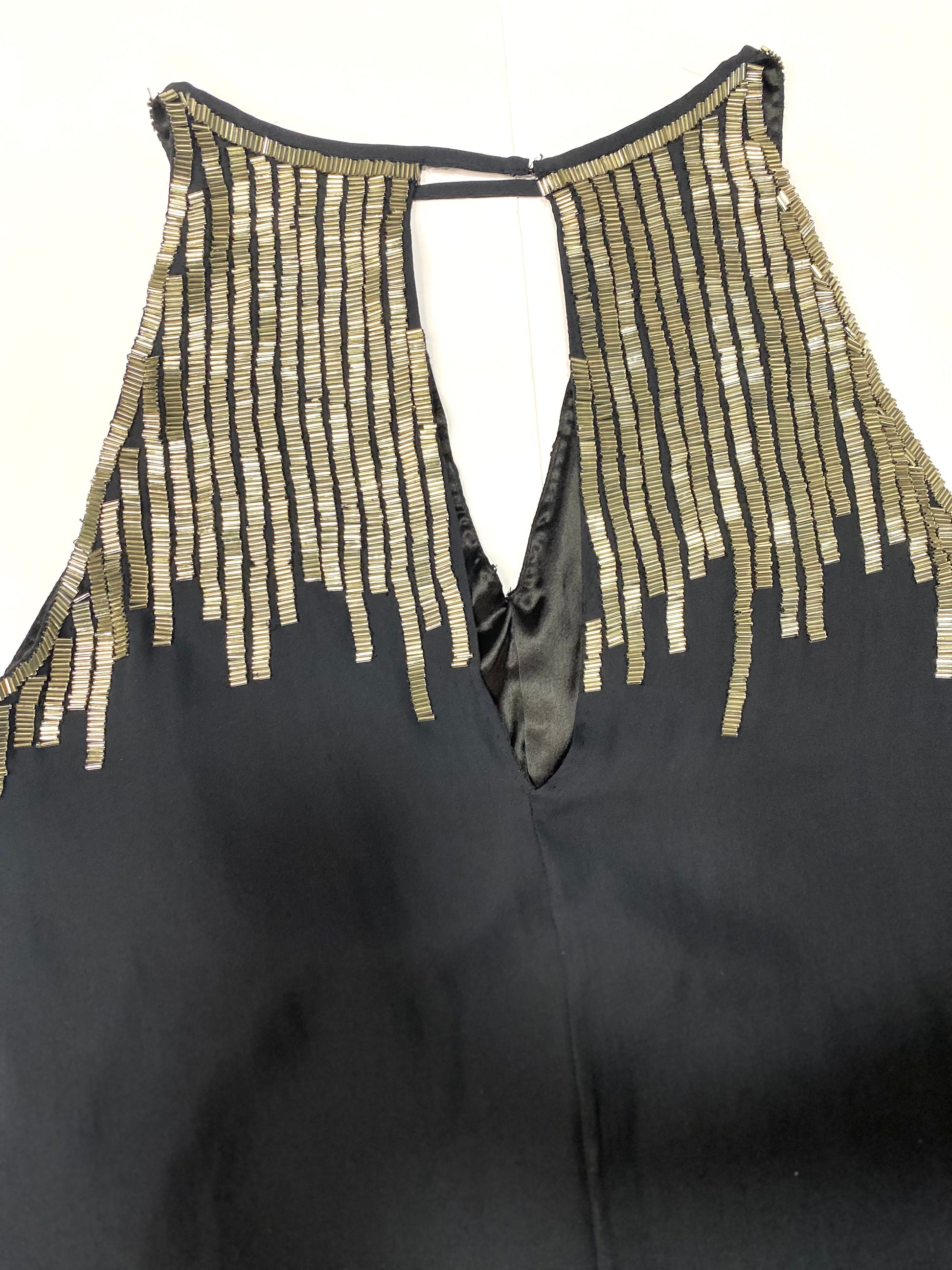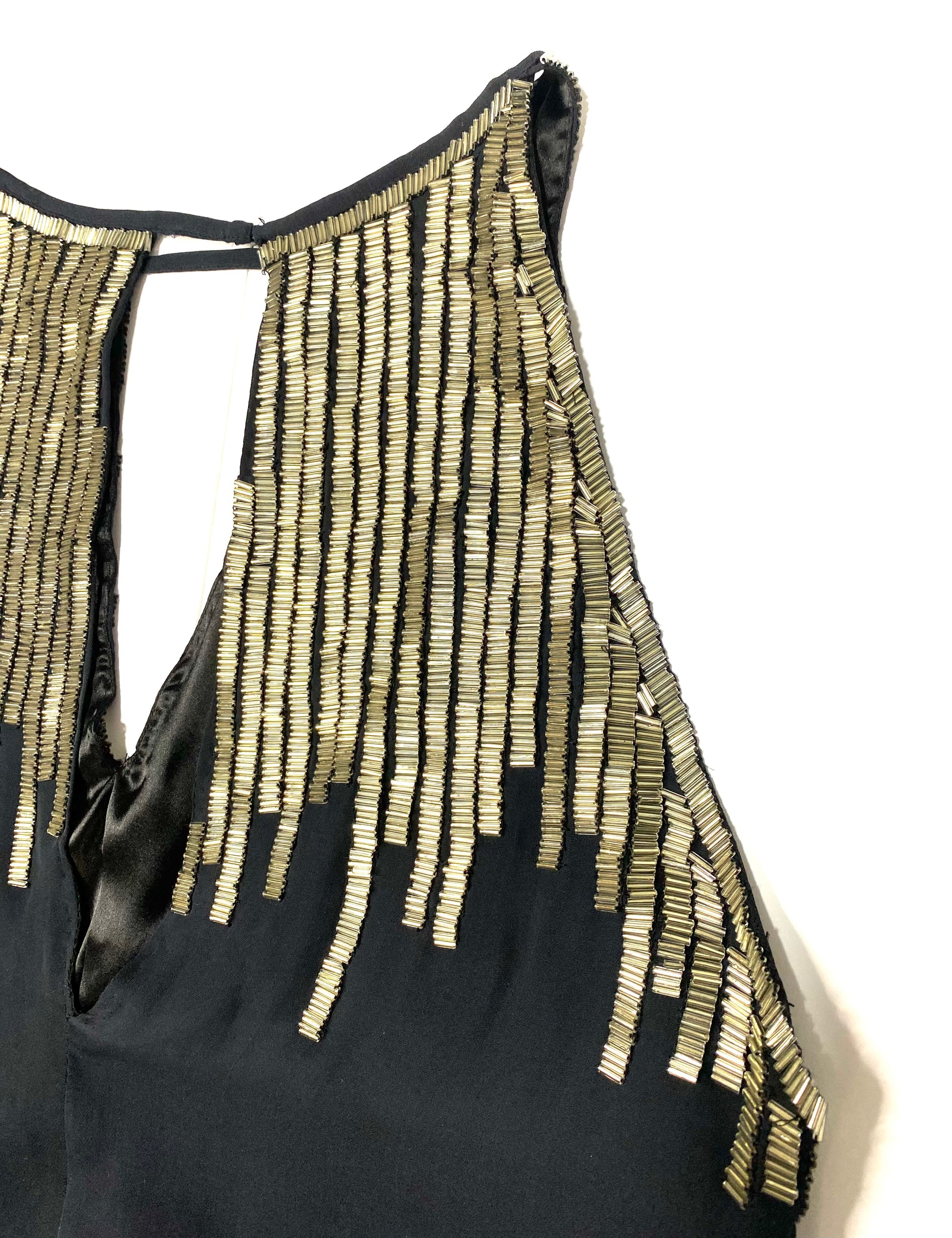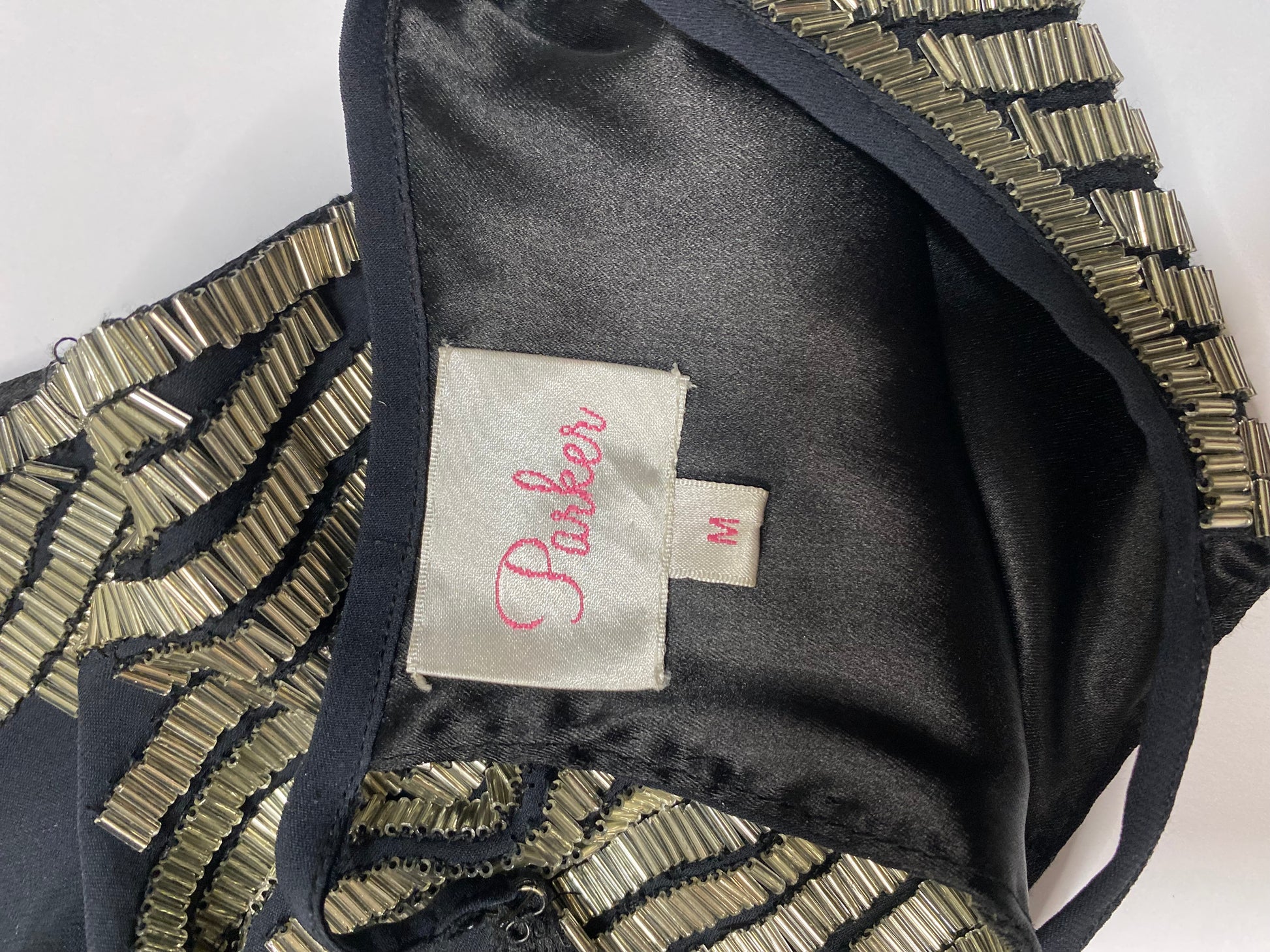 Parker 100% Silk Black Sleeveless Blouse with Hand-Beaded Detailing – Size Medium