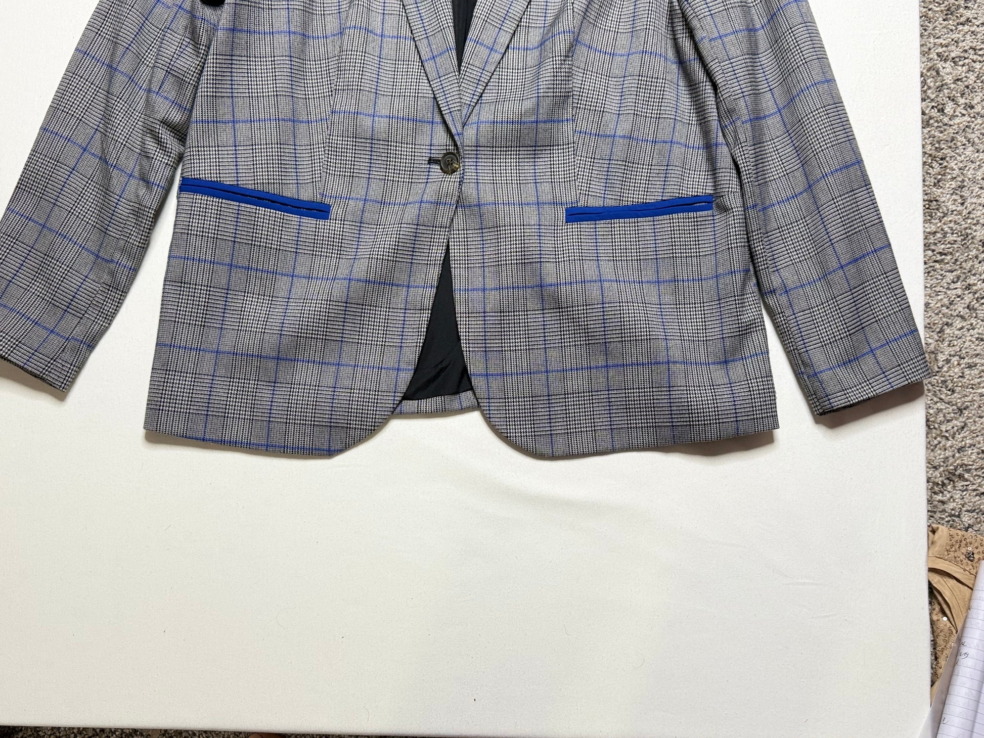 Pop Sugar Longline Checker Print Blazer – Size Large, Black White Blue, Single Button,