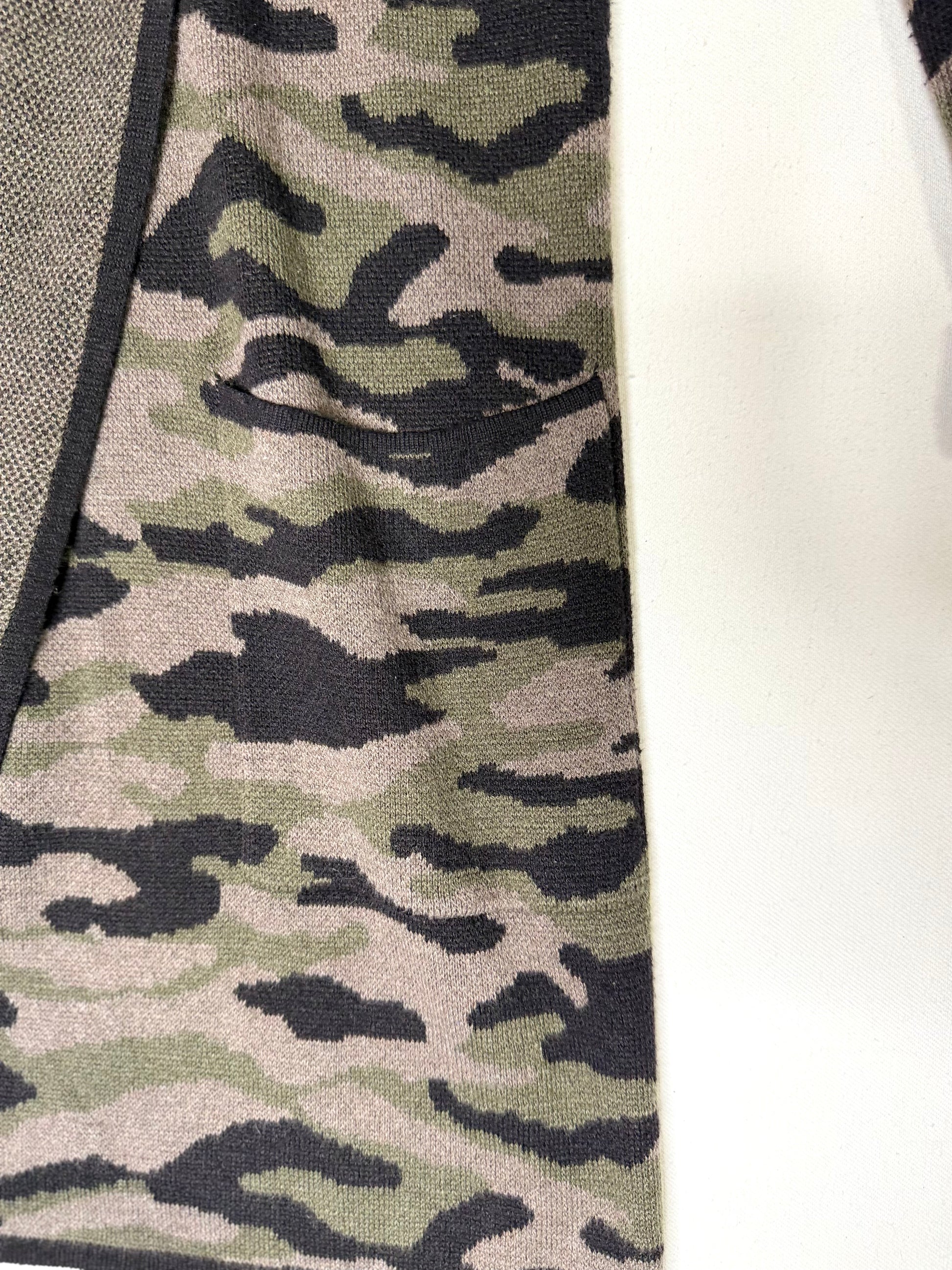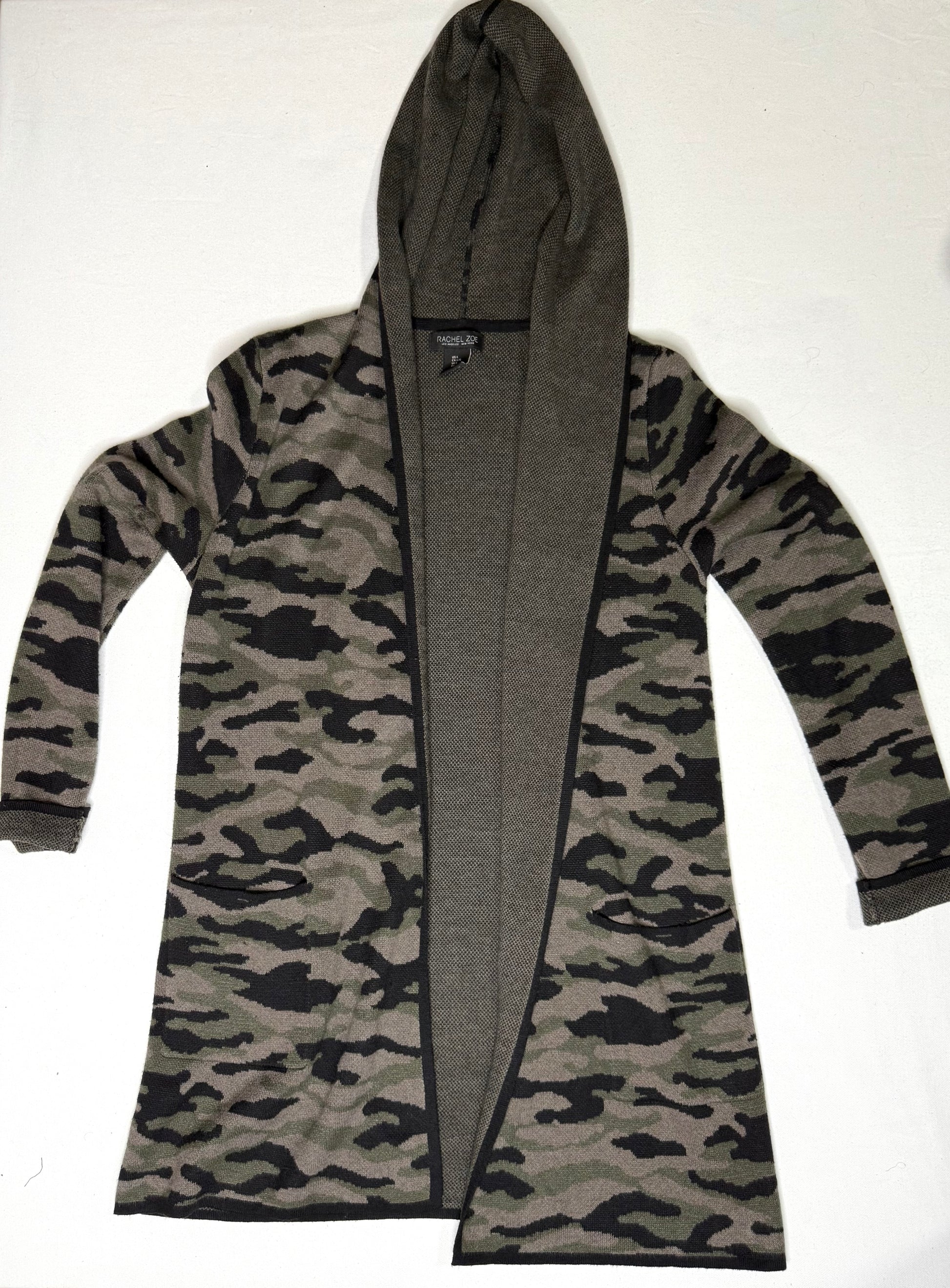 Rachel Zoe Camo Hooded Cardigan Sweater Green Brown Open Front Size Large