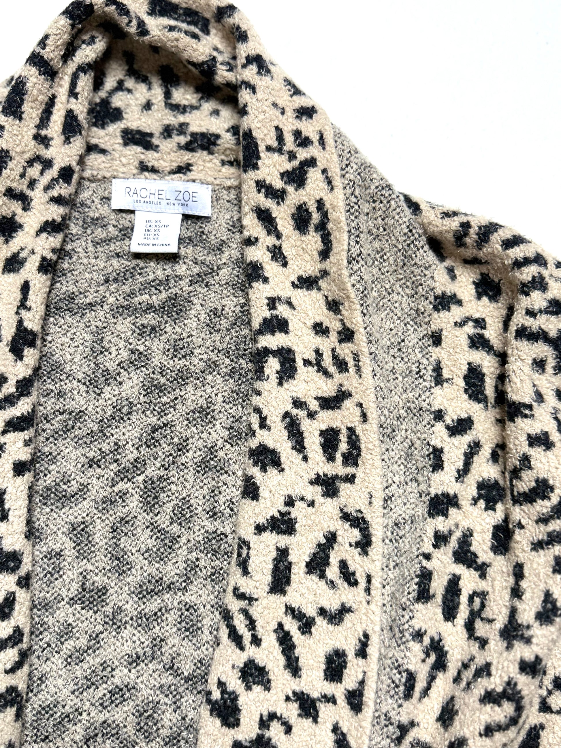 Rachel Zoe Cheetah Print Long Sleeve Sweater with Front Pockets Size XS