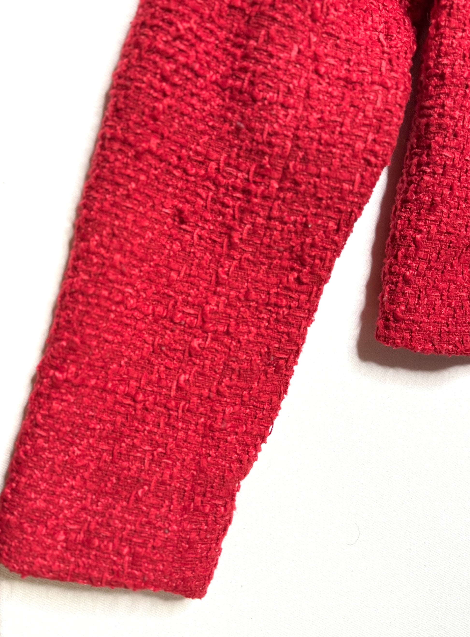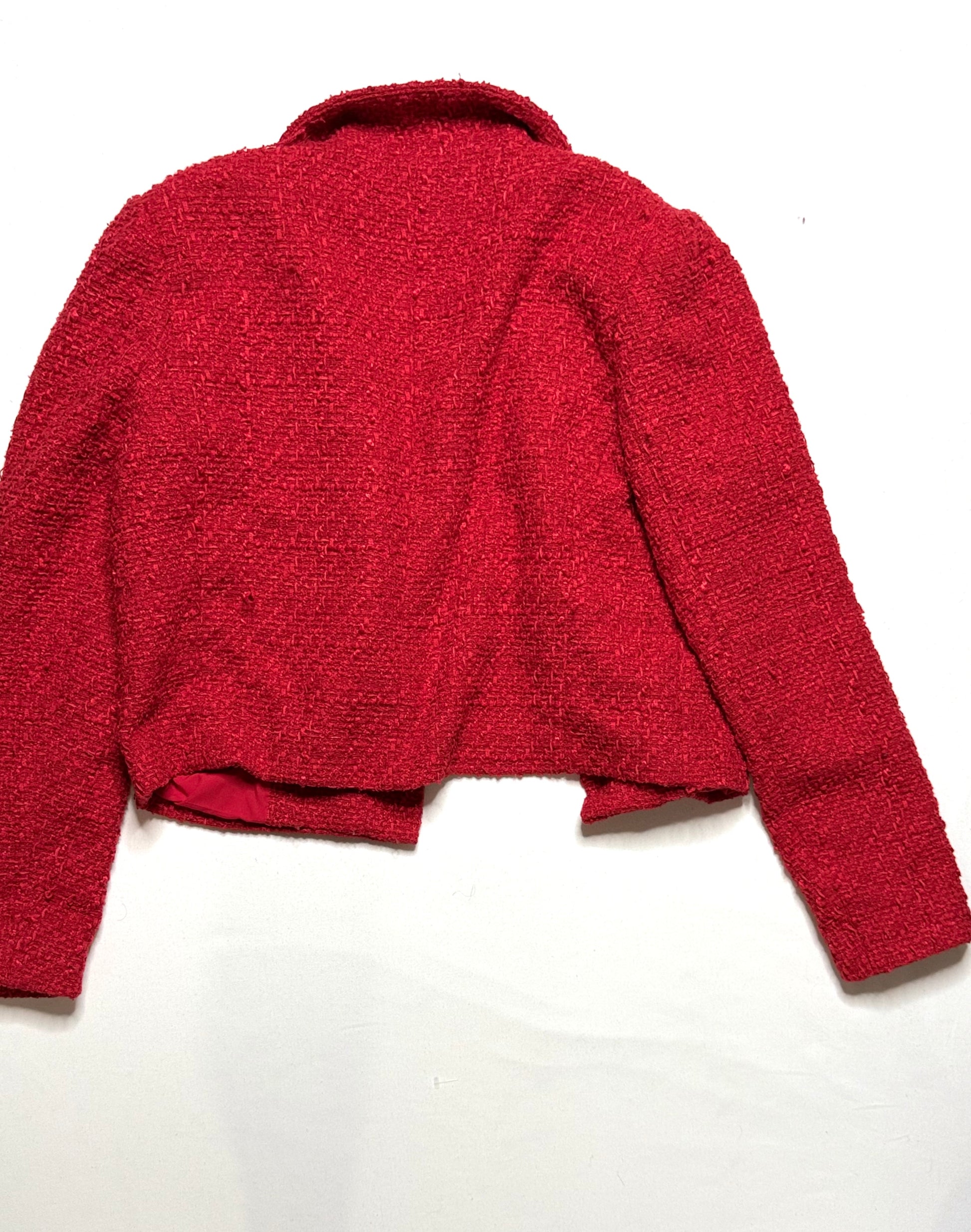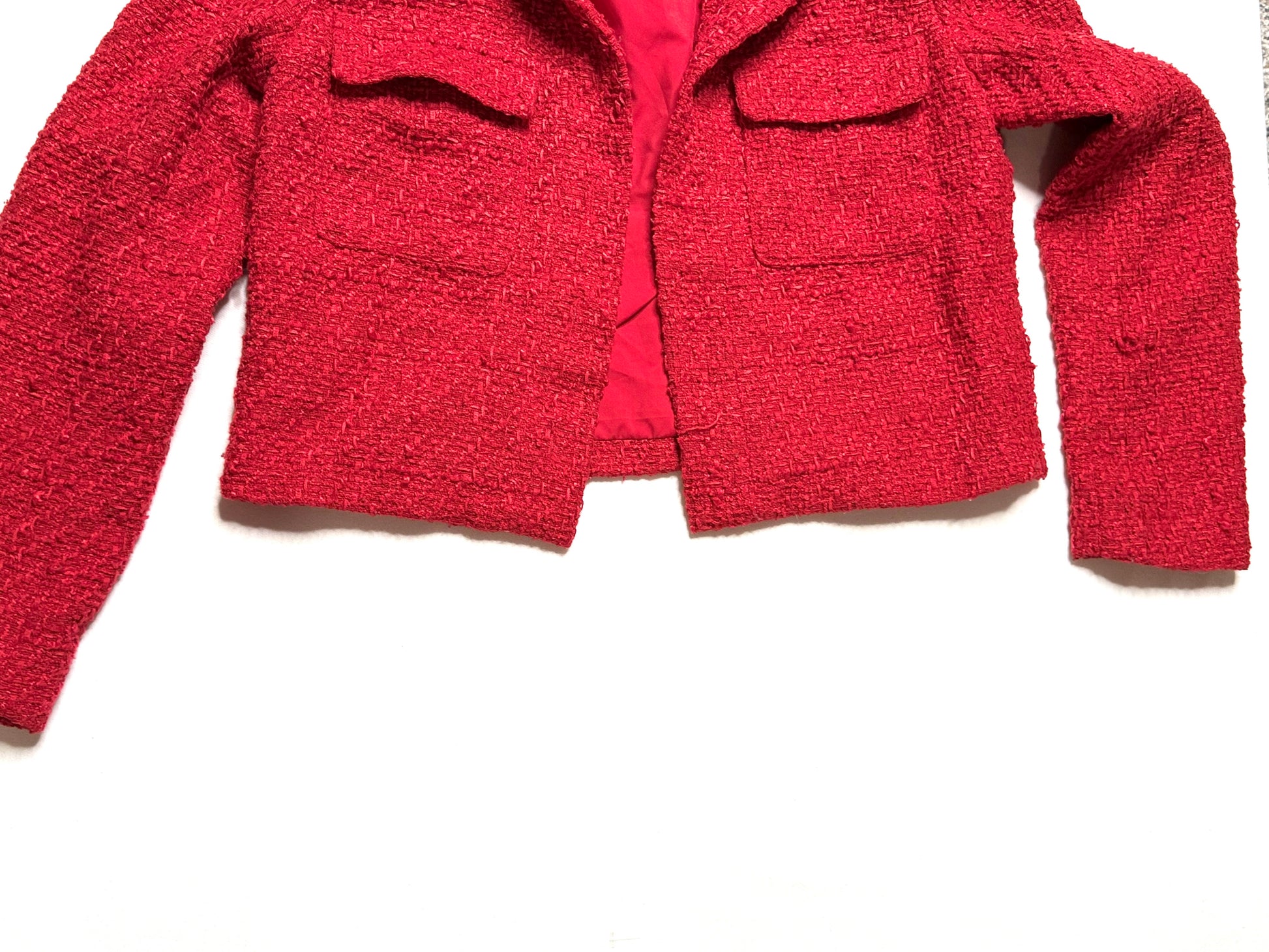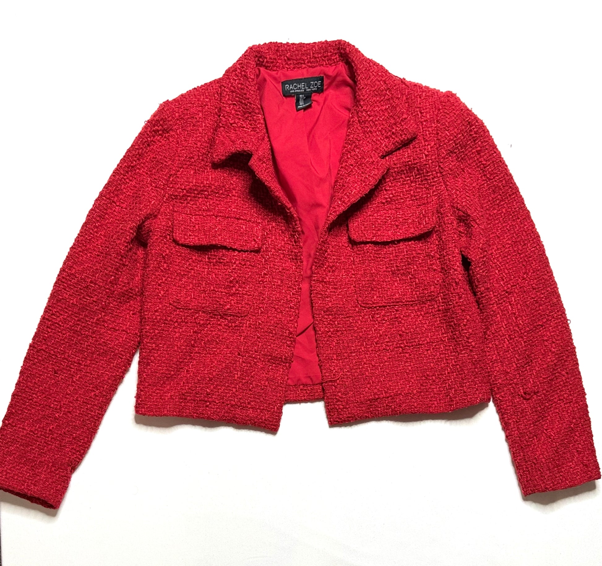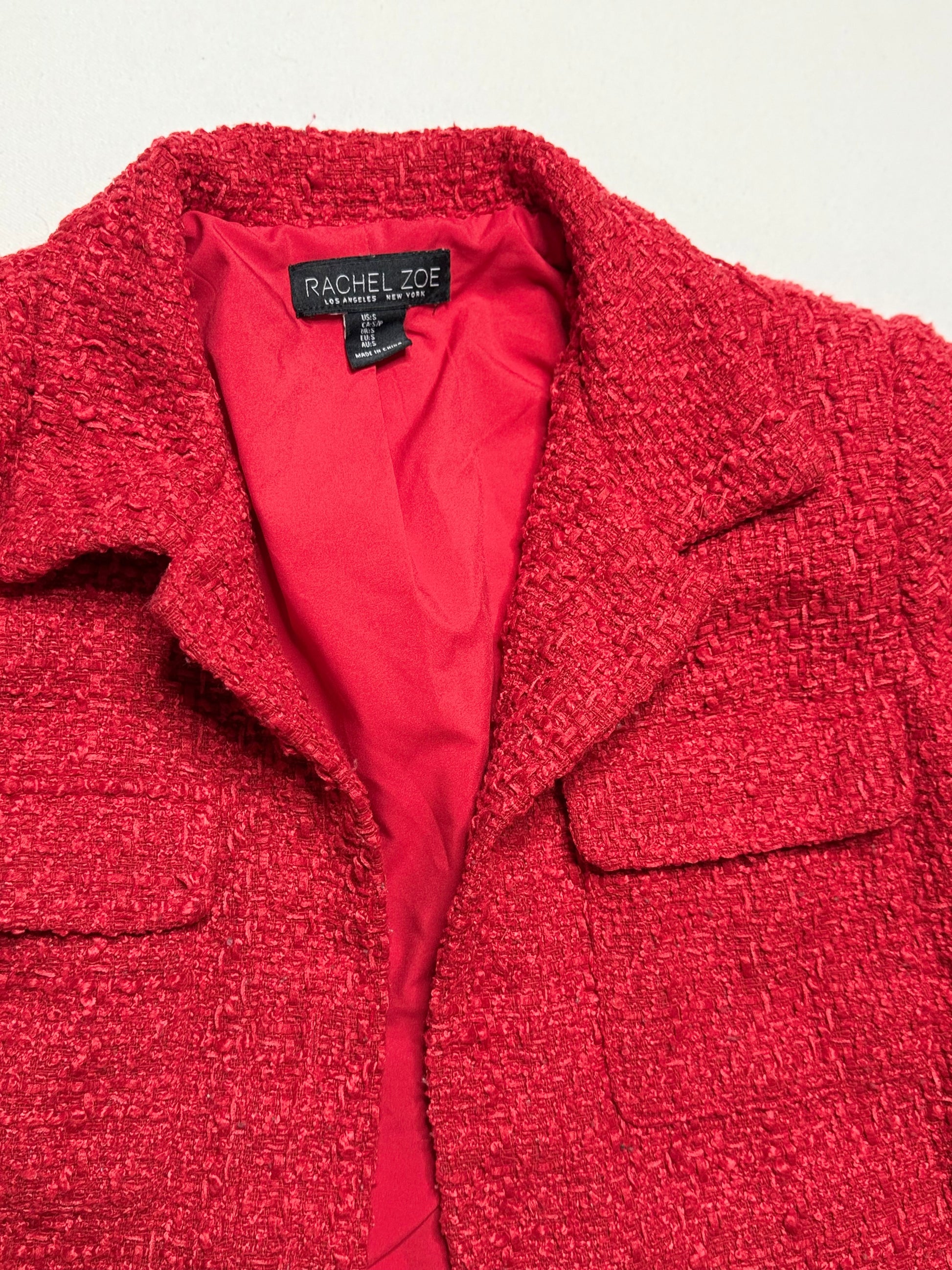 Rachel Zoe Red Tweed Cropped Blazer Open Front Jacket Size Small