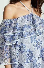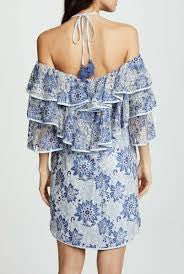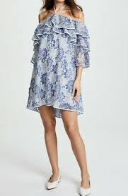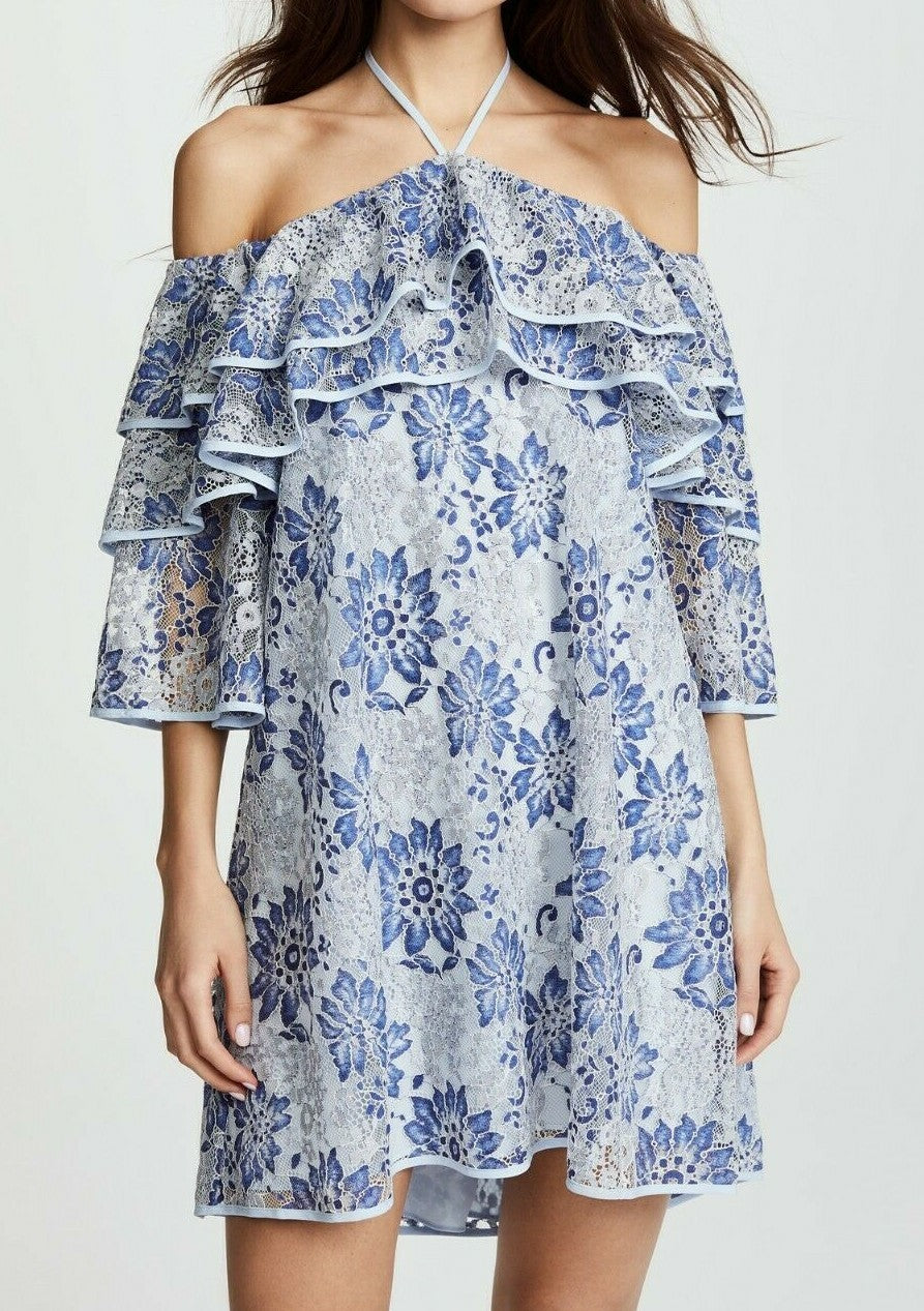 Rebecca Minkoff Dena Tiered Ruffle Halter Lace Dress – Blue Multi NWT, Size XS