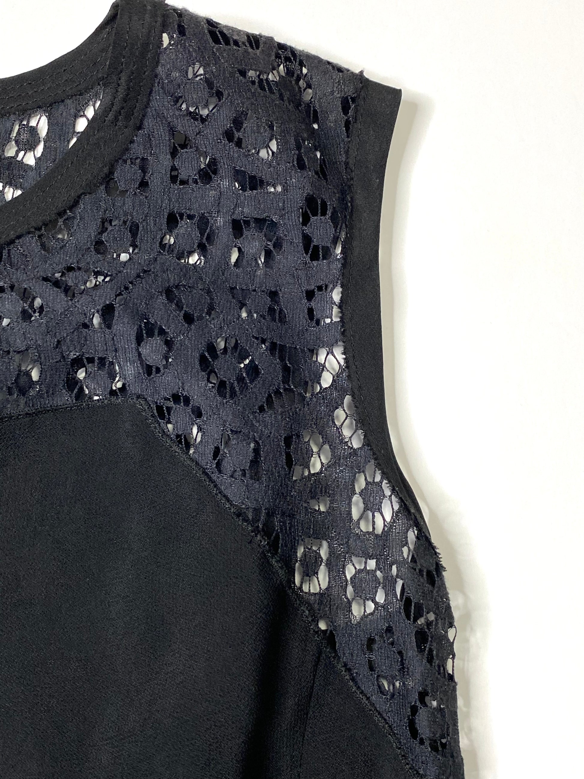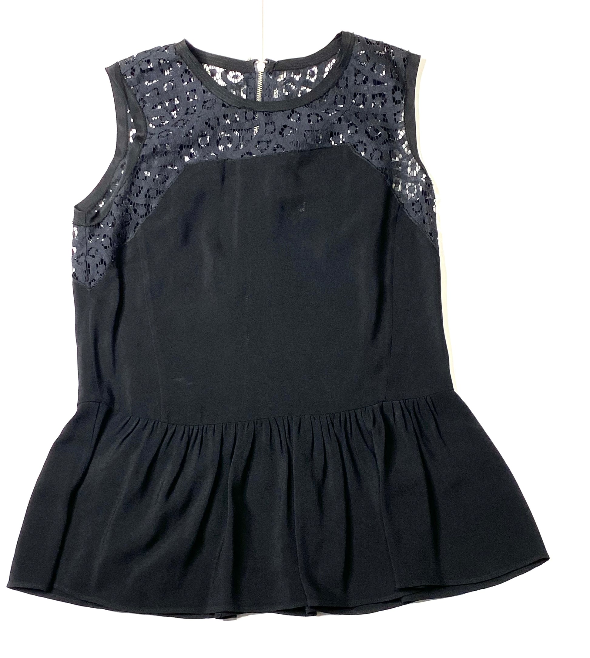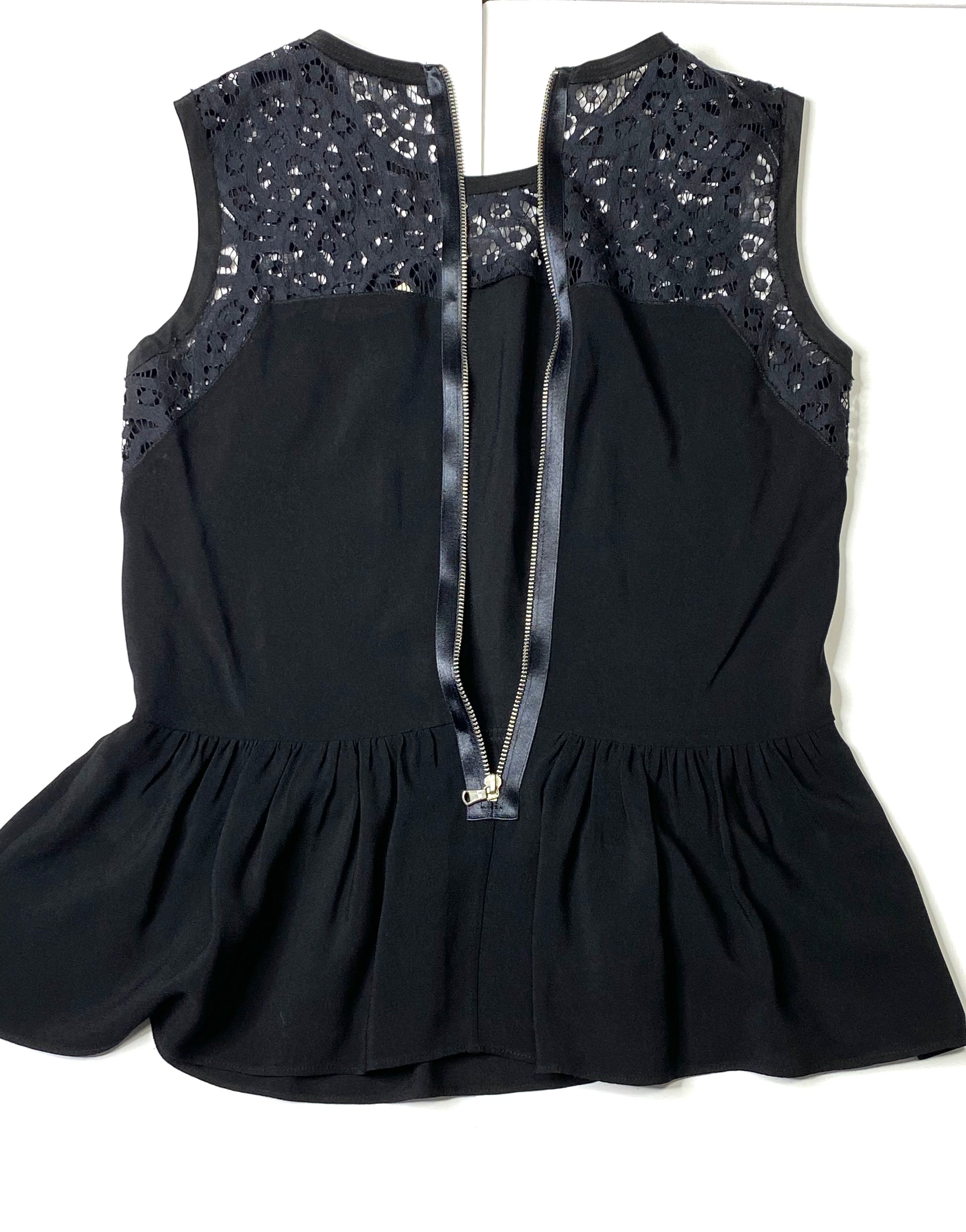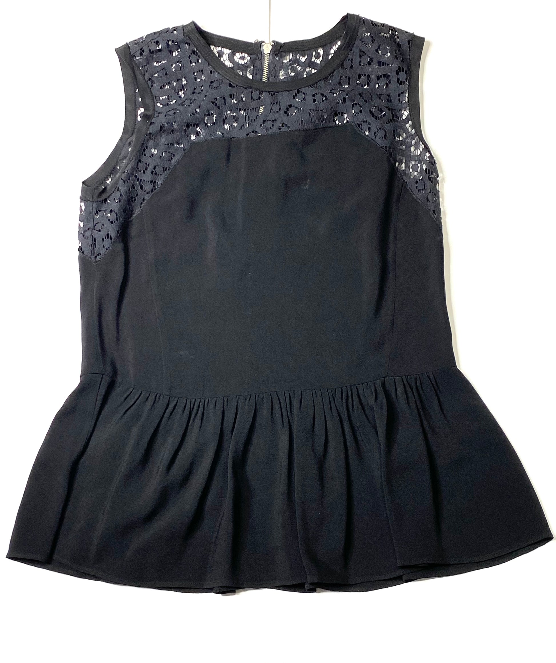 Rebecca Taylor Black Sleeveless Peplum Blouse with Lace Detail – Size 0