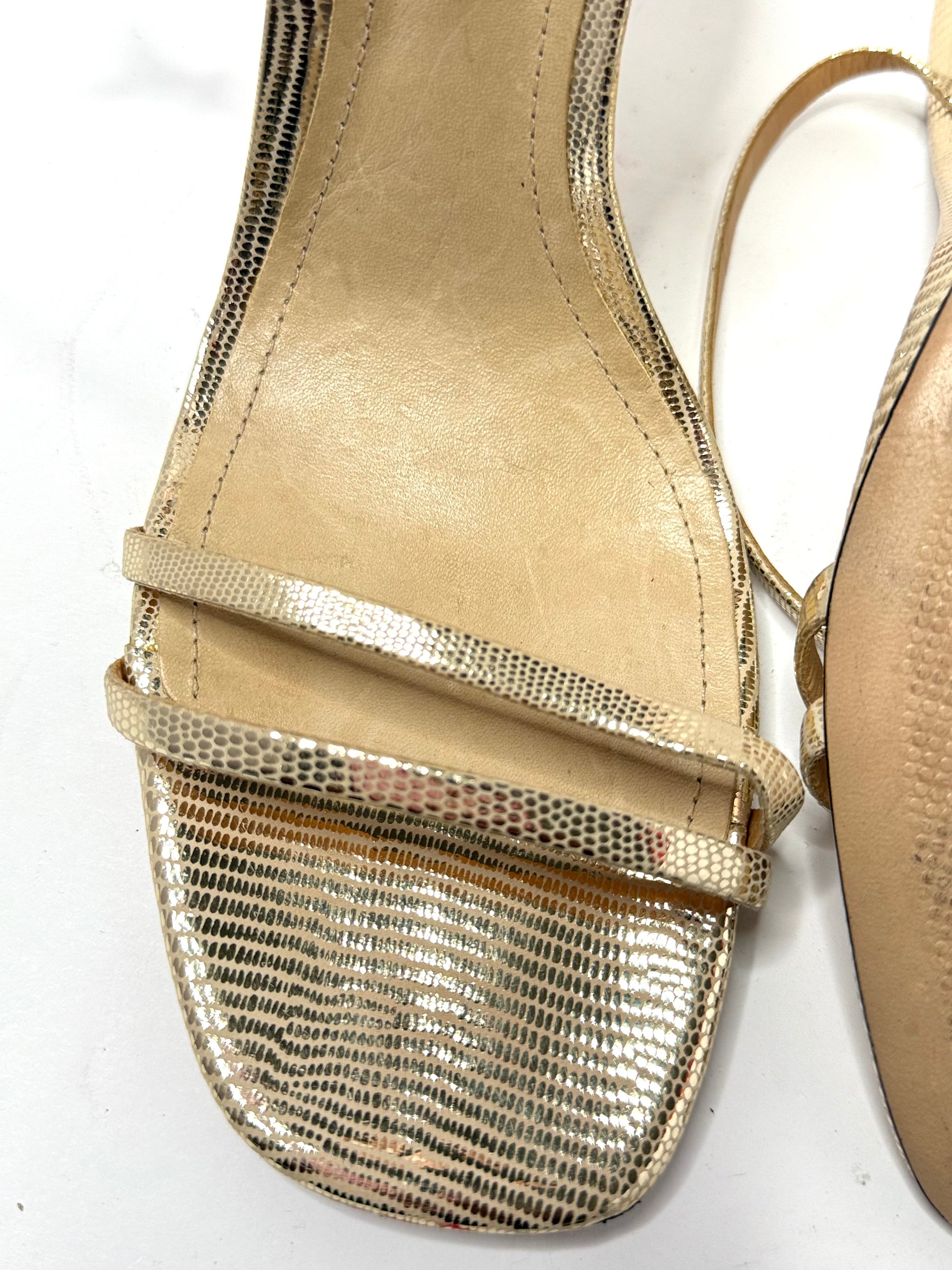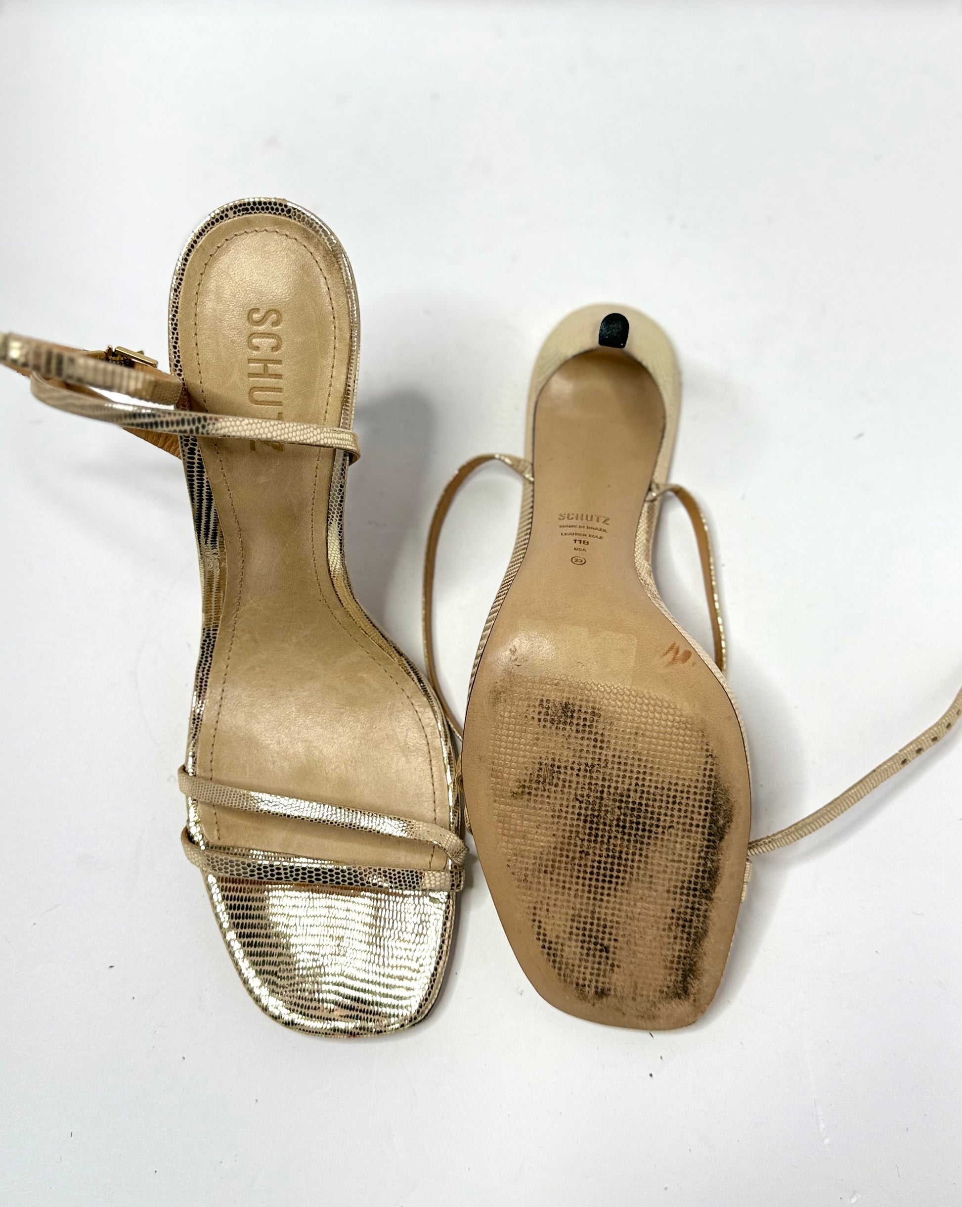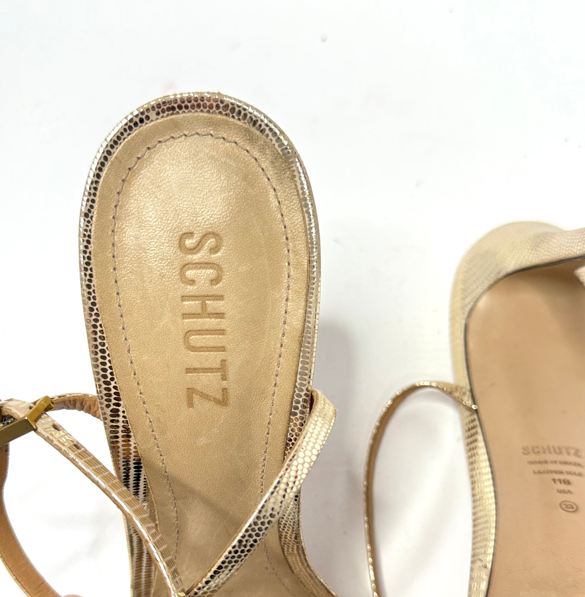 Schutz Metallic Gold Strappy Leather Sandals Size 11 – 3" Heel Open Toe Made in Brazil