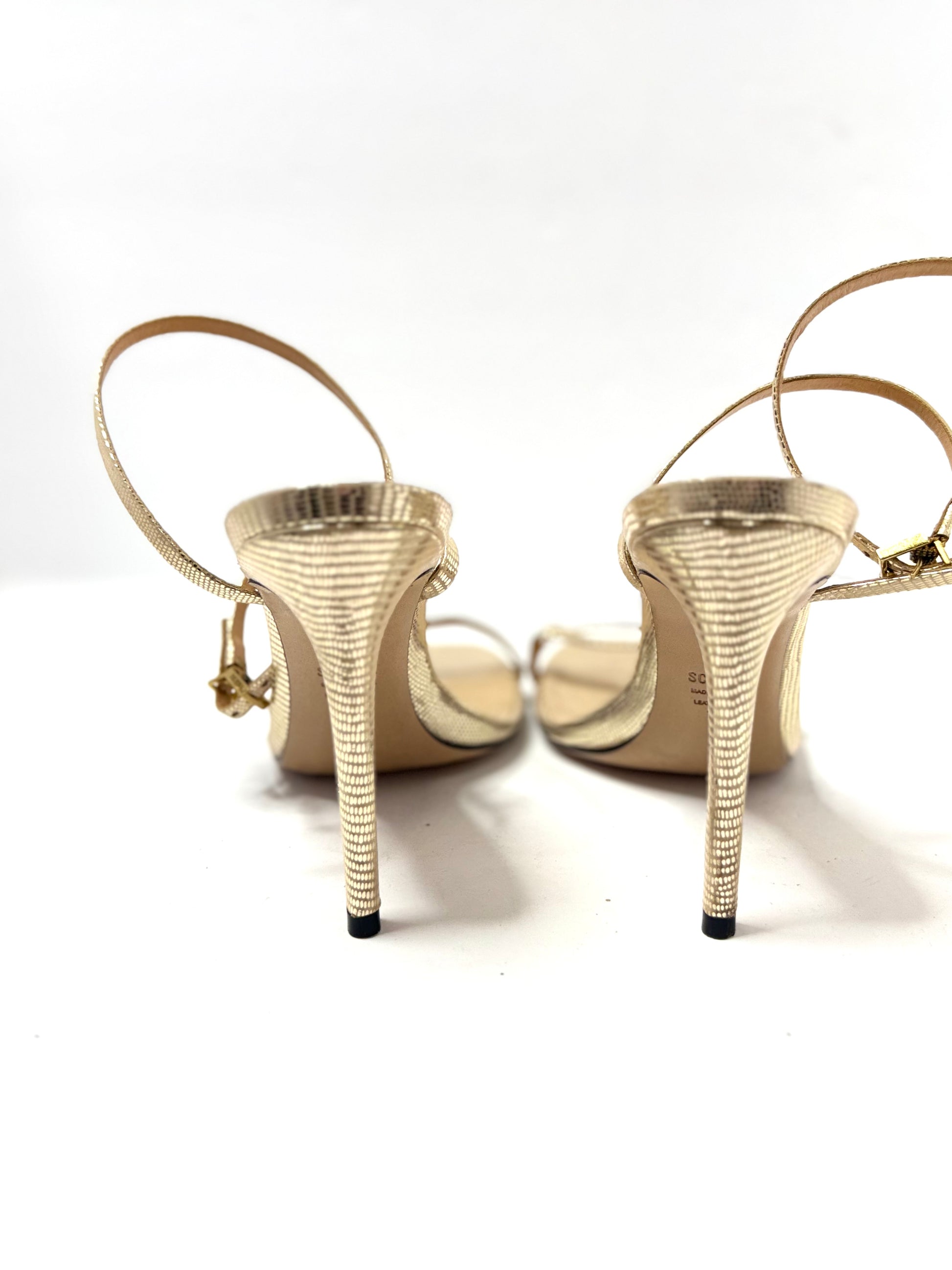 Step out in style with these stunning Schutz metallic gold sandals, size 11. Featuring a sleek open toe design and strappy silhouette, these elegant heels are crafted with a genuine leather upper, insole, and outsole for premium comfort and quality. The 3-inch heel adds the perfect lift, making them ideal for parties, weddings, or special events. Made in Brazil and in excellent condition, these designer sandals bring luxury and shine to any outfit.
