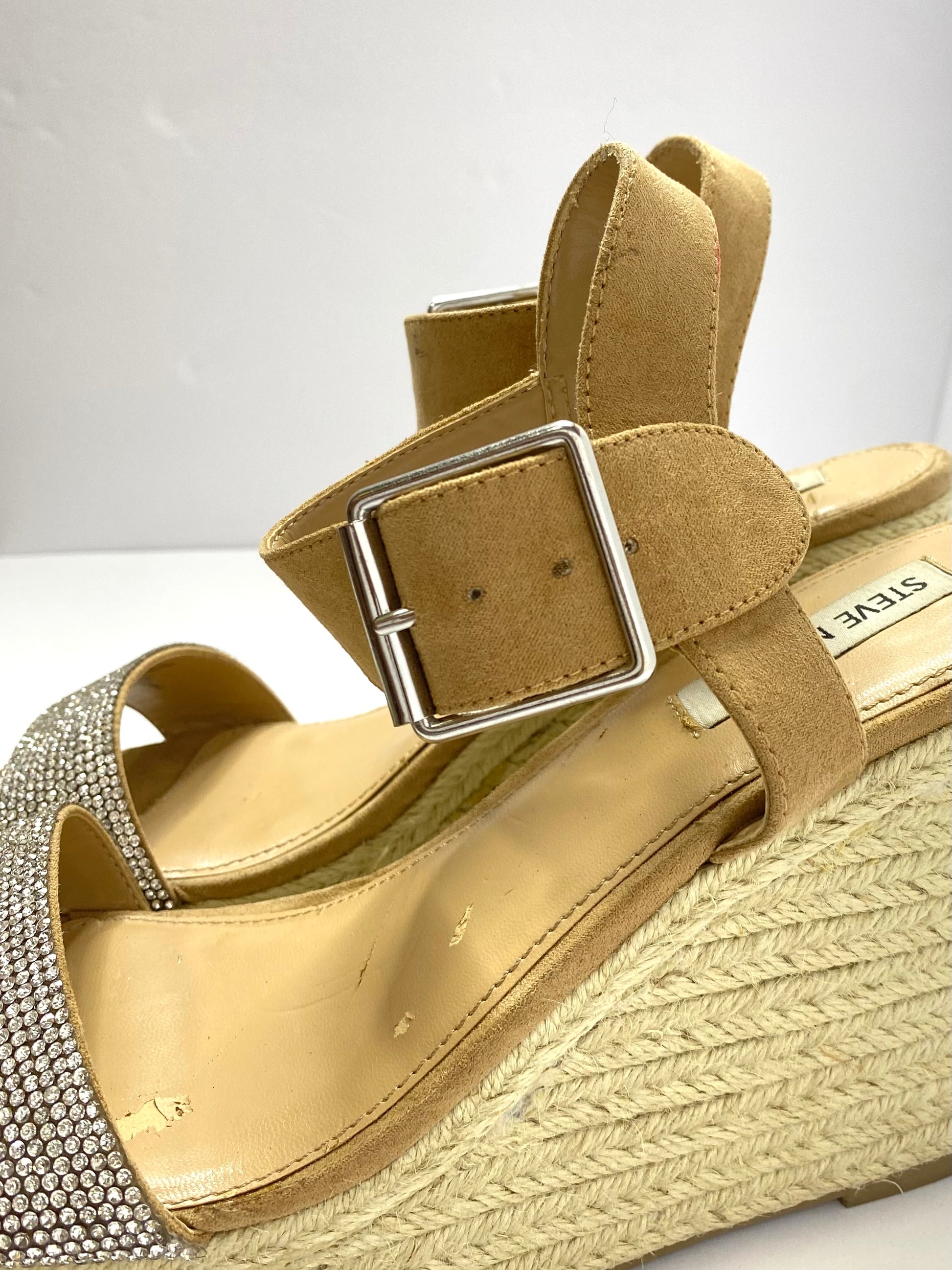 Steve Madden SANTORINIR Rhinestone Embellished Wedge Sandals – Size 10