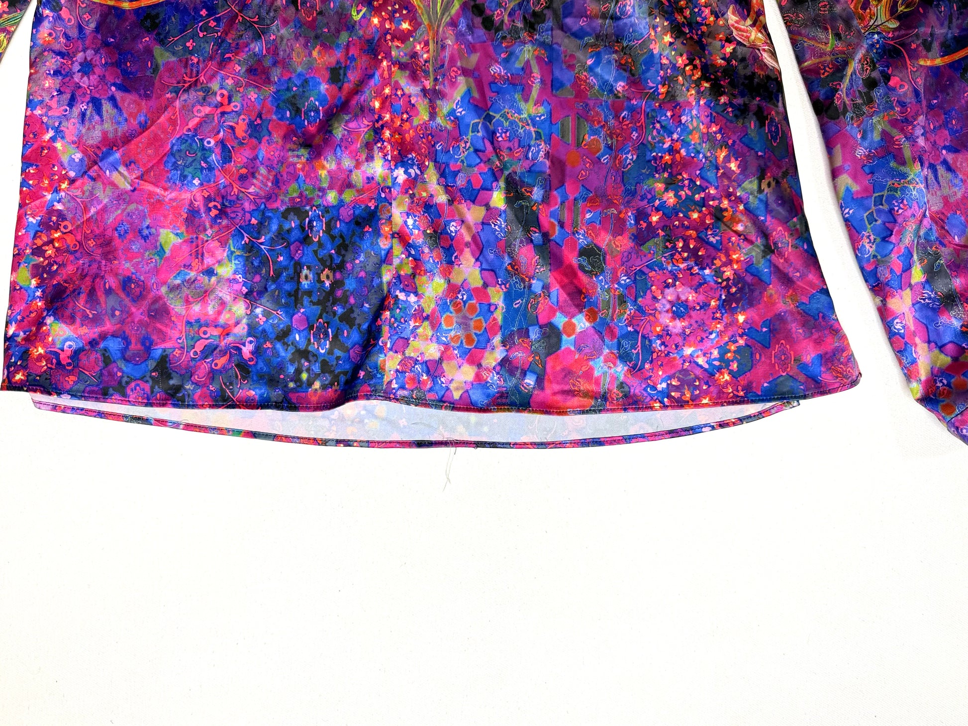 Add a pop of color to your wardrobe with this Tahari long-sleeve blouse (women’s size large). Made in Vietnam from lightweight polyester, this blouse features a vibrant abstract/floral-inspired print that blends elegance with modern style.