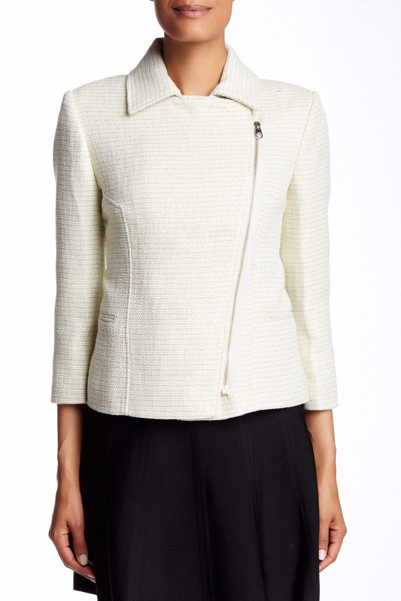 Ted Baker London Pale Green Metallic Gold Tweed Moto Jacket Size 0 | Lined, Excellent Condition