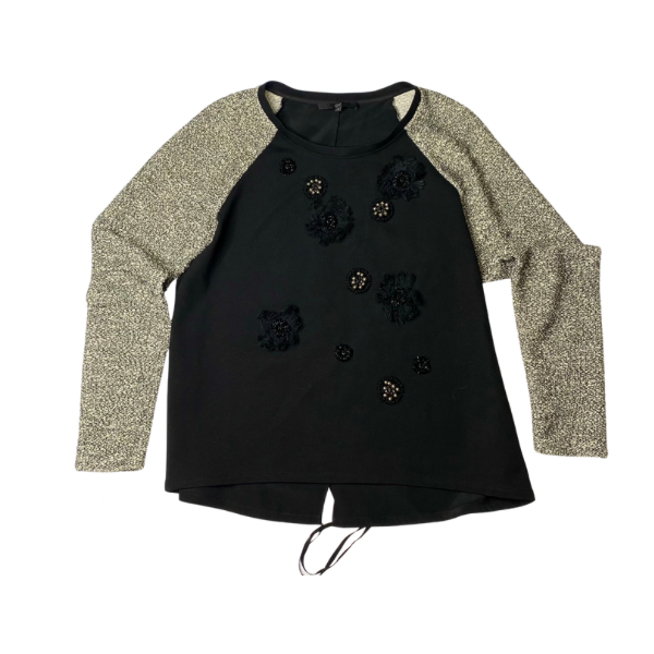 Tibi Embellished Crew Neck Top – Long Woven Sleeves, Back Tie Detail