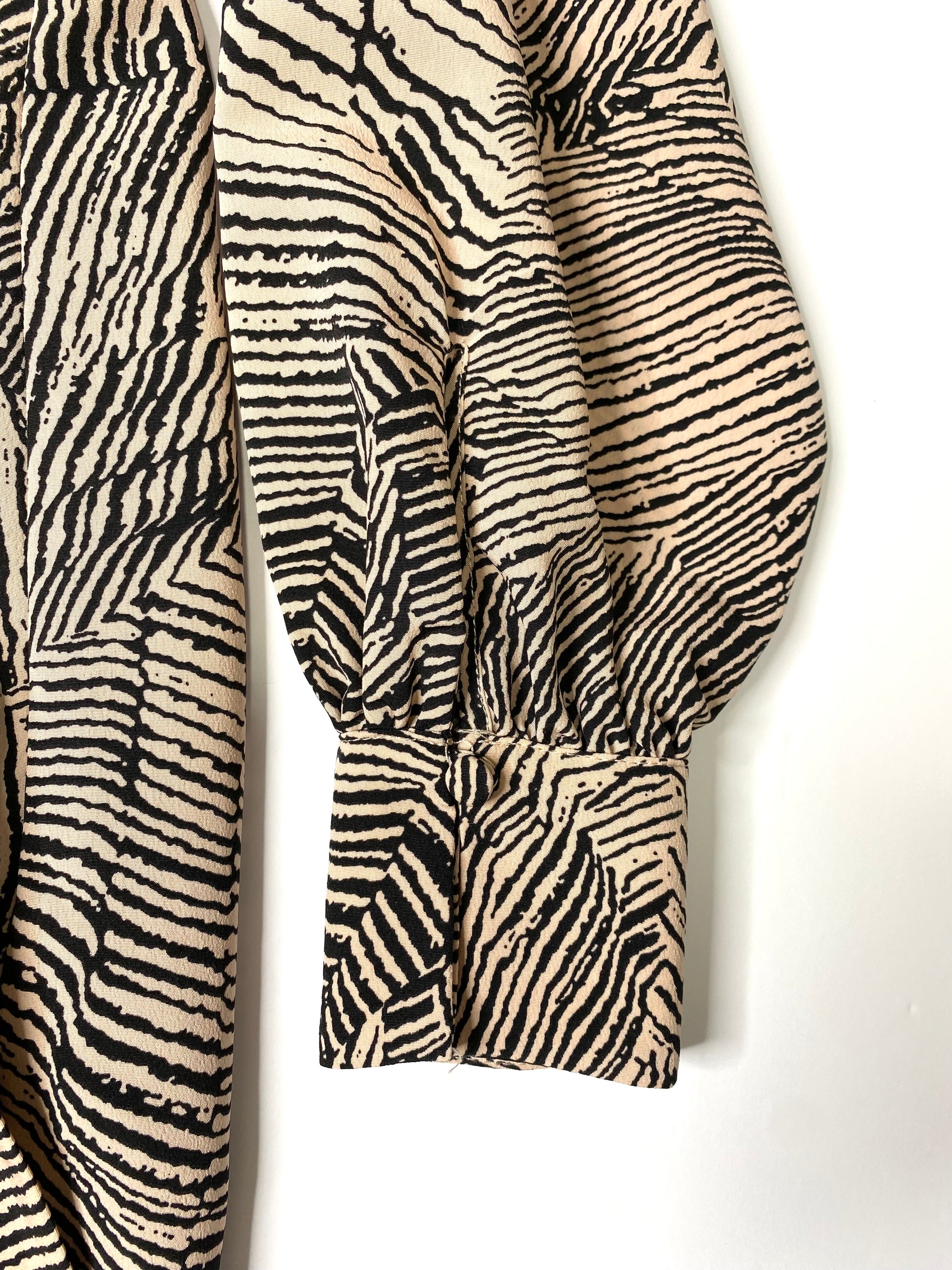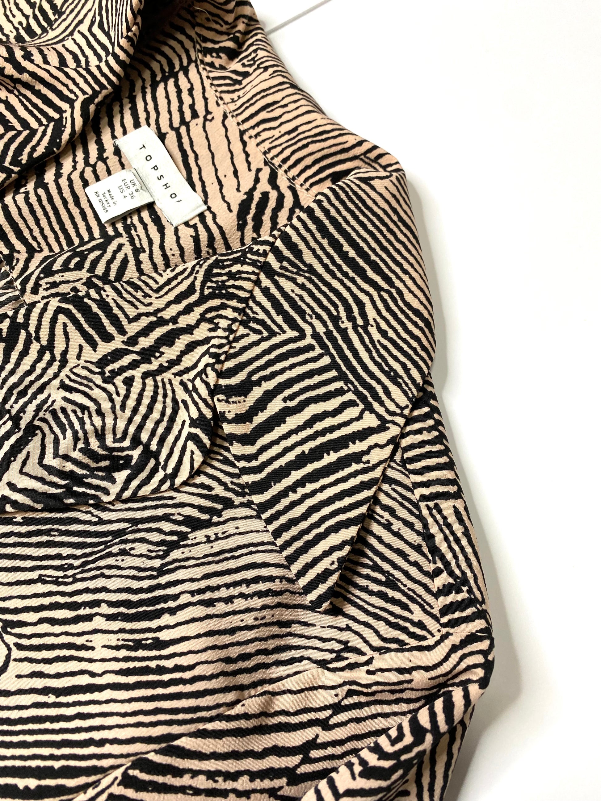 Top Shop Long Sleeve Blouse Size 4 | Animal Print | Bow Tie Waist Belt