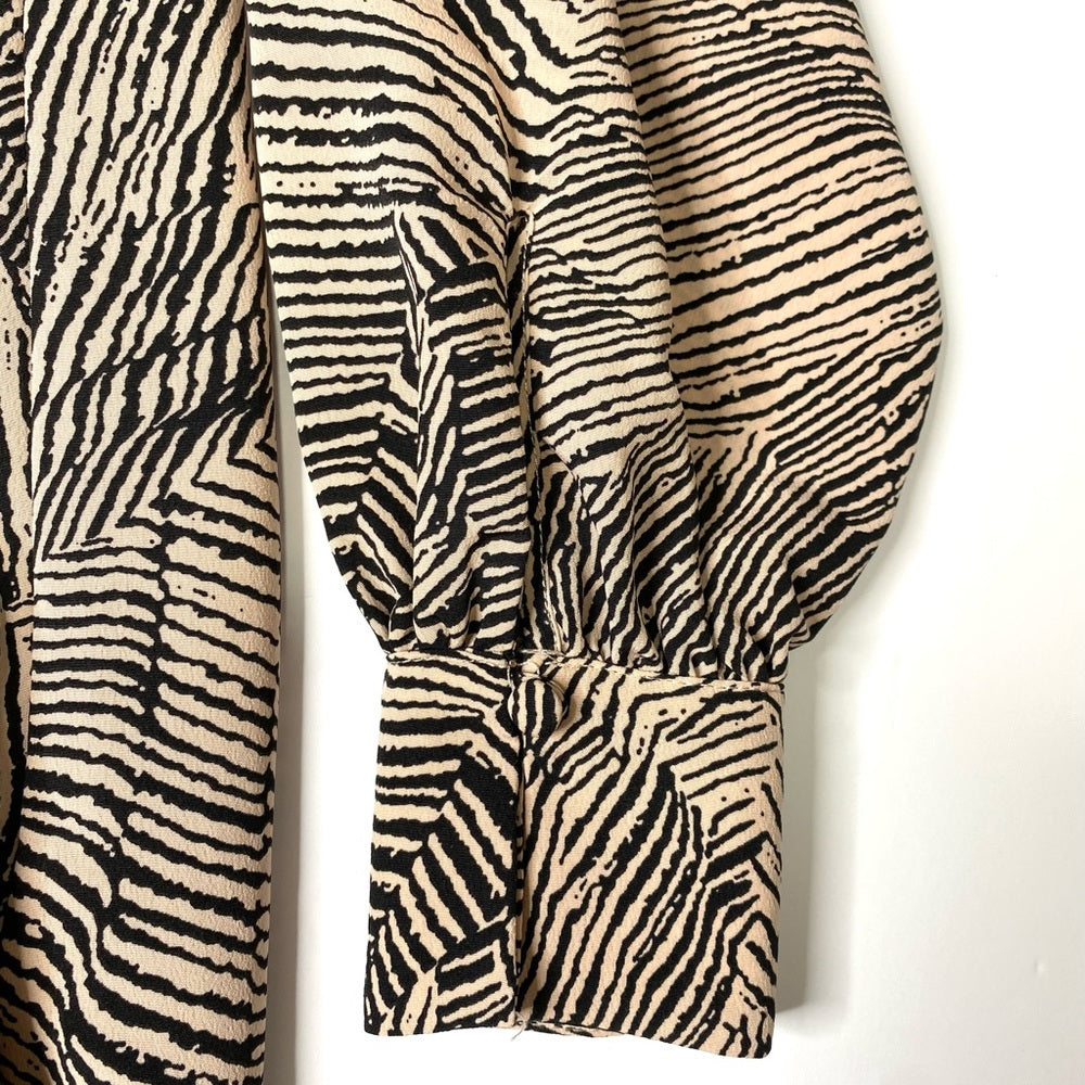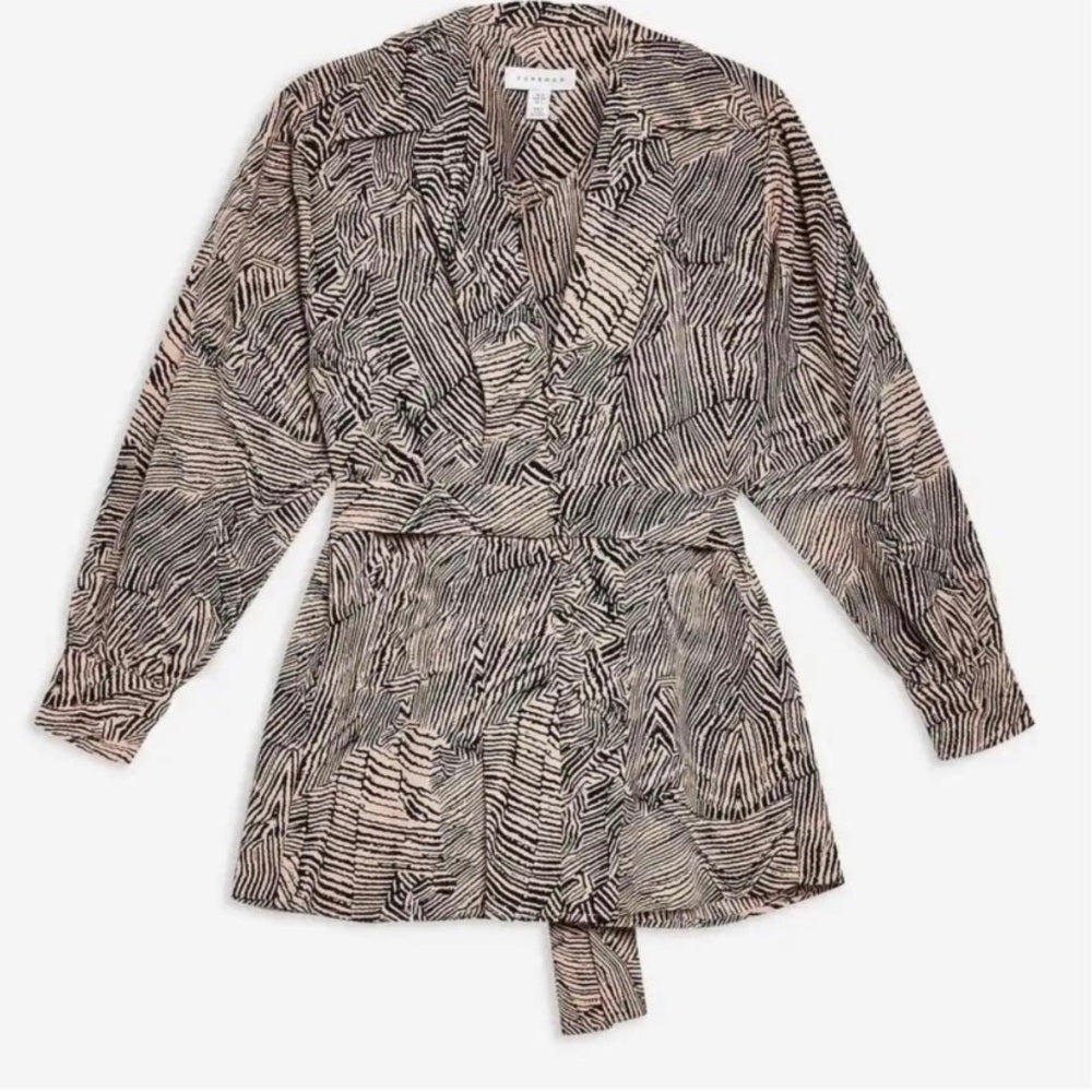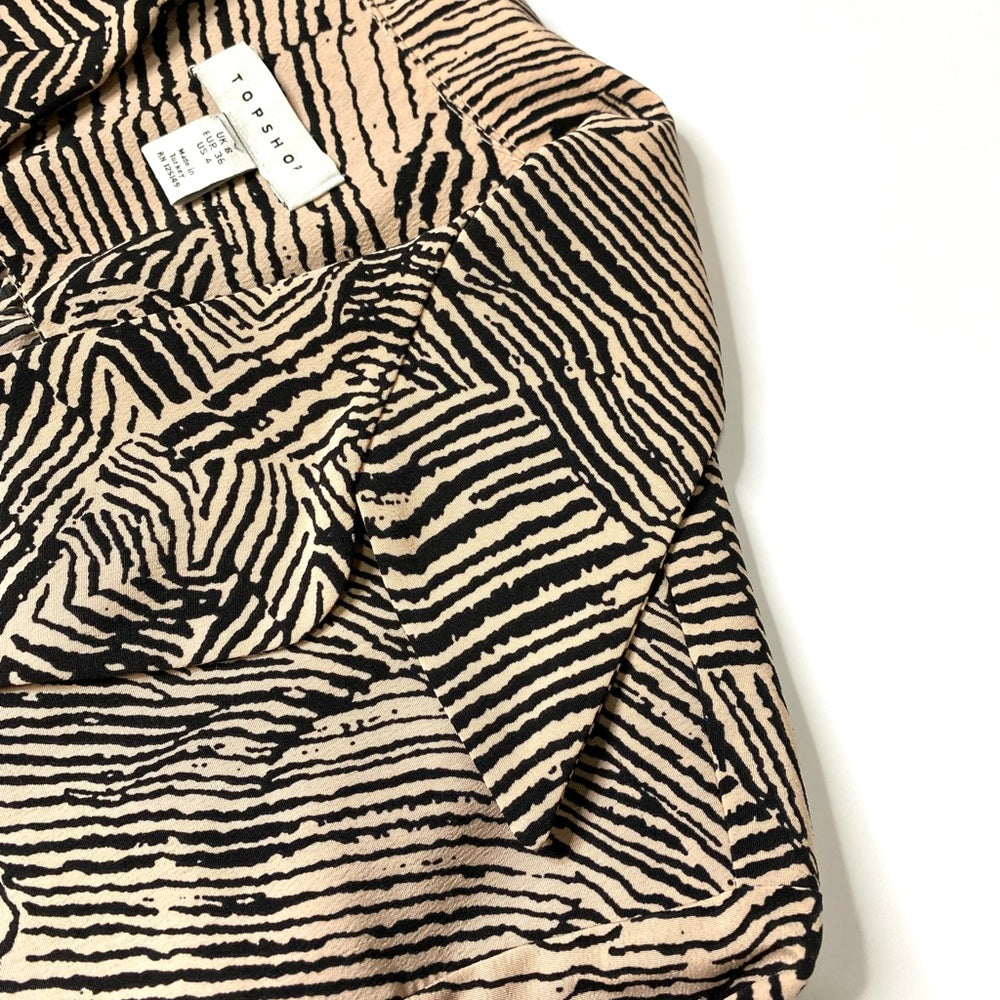 Top Shop Long Sleeve Blouse Size 4 | Animal Print | Bow Tie Waist Belt