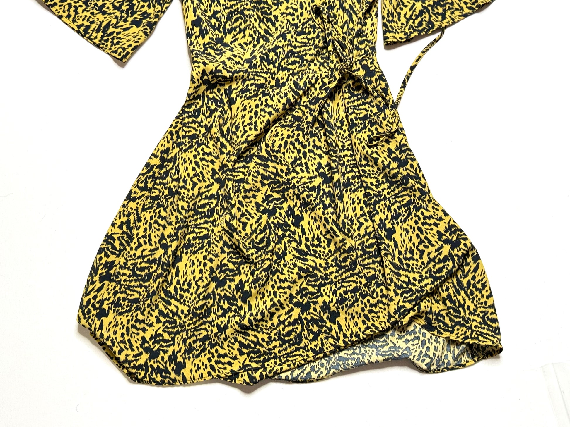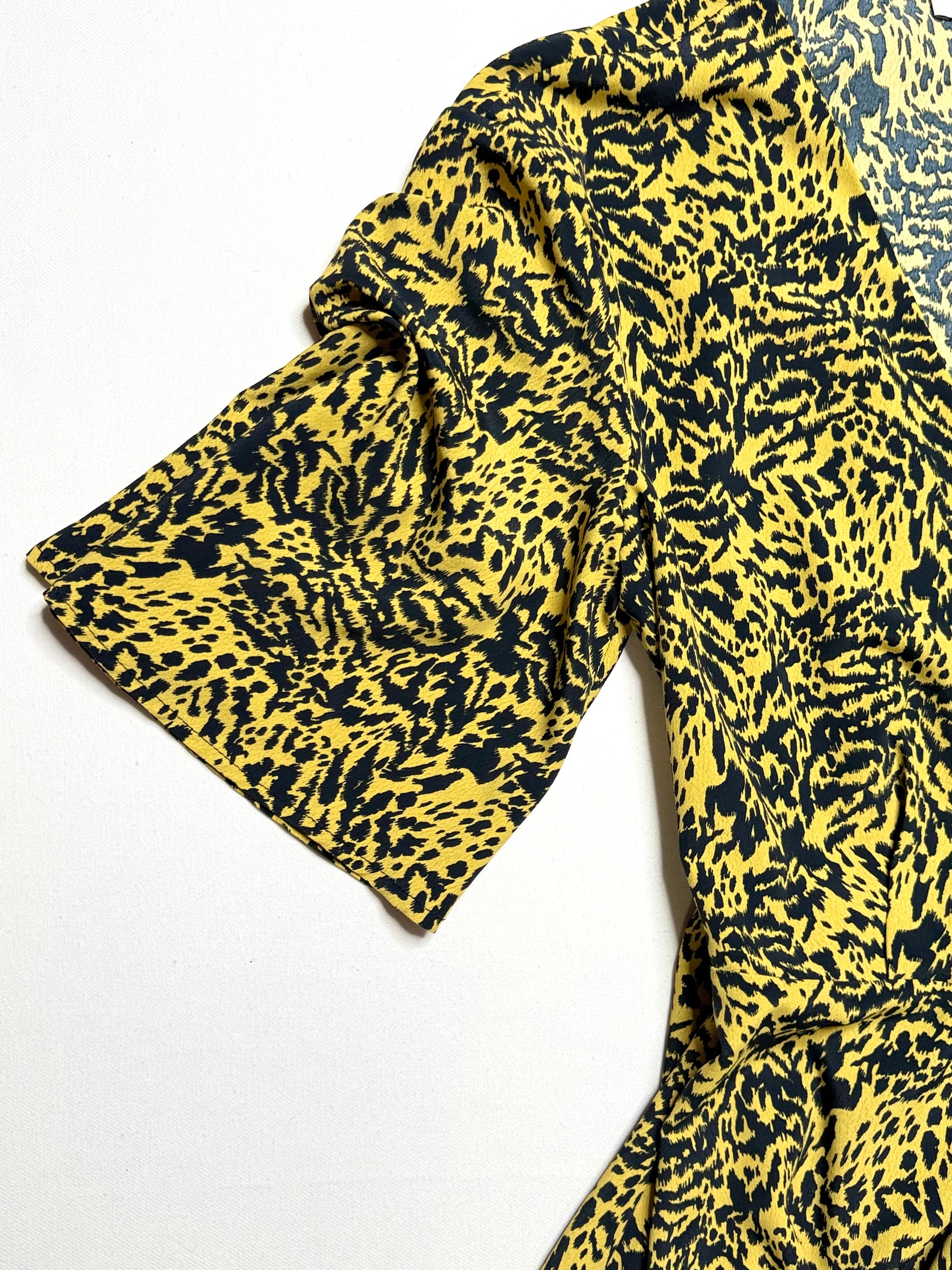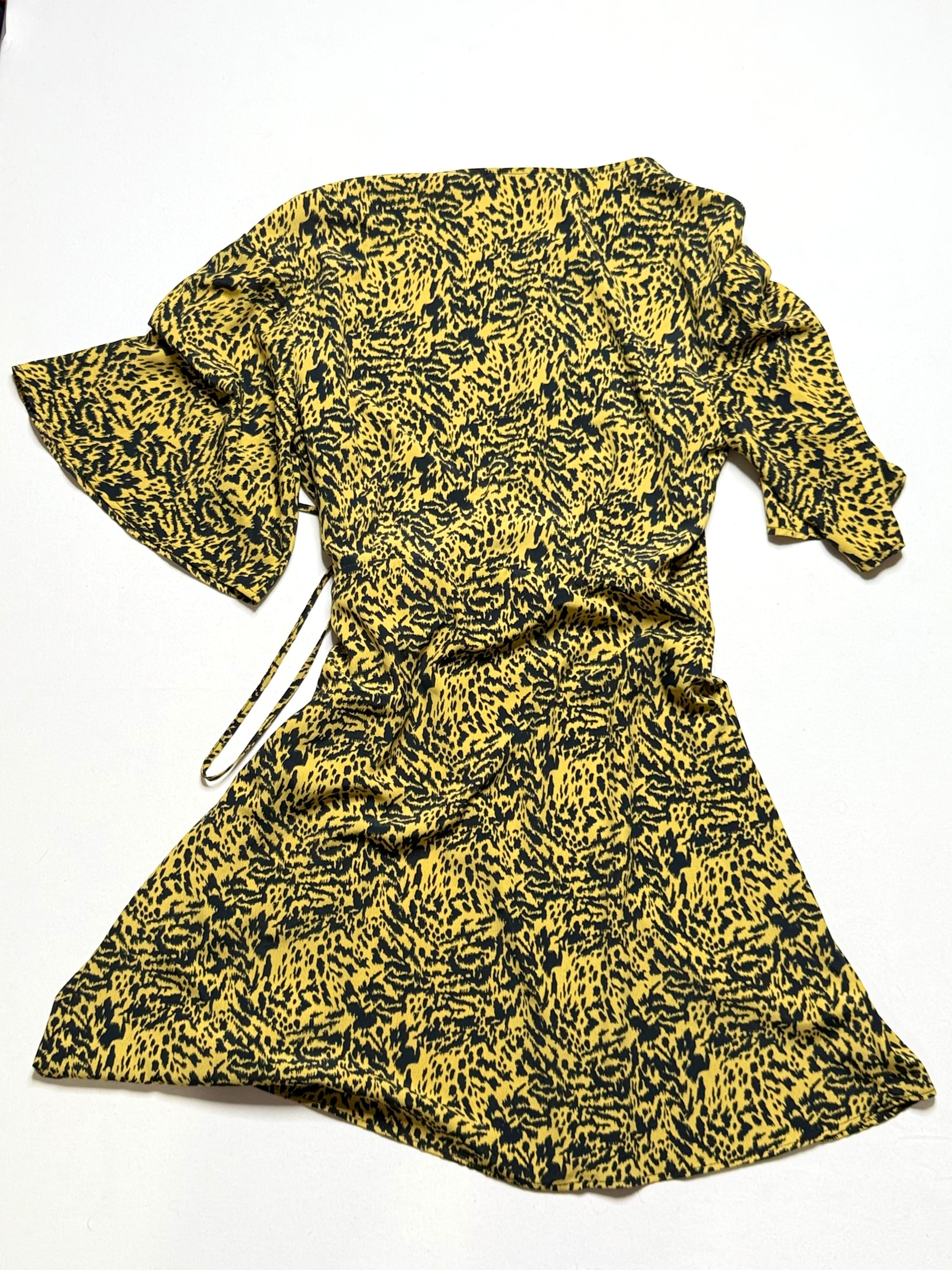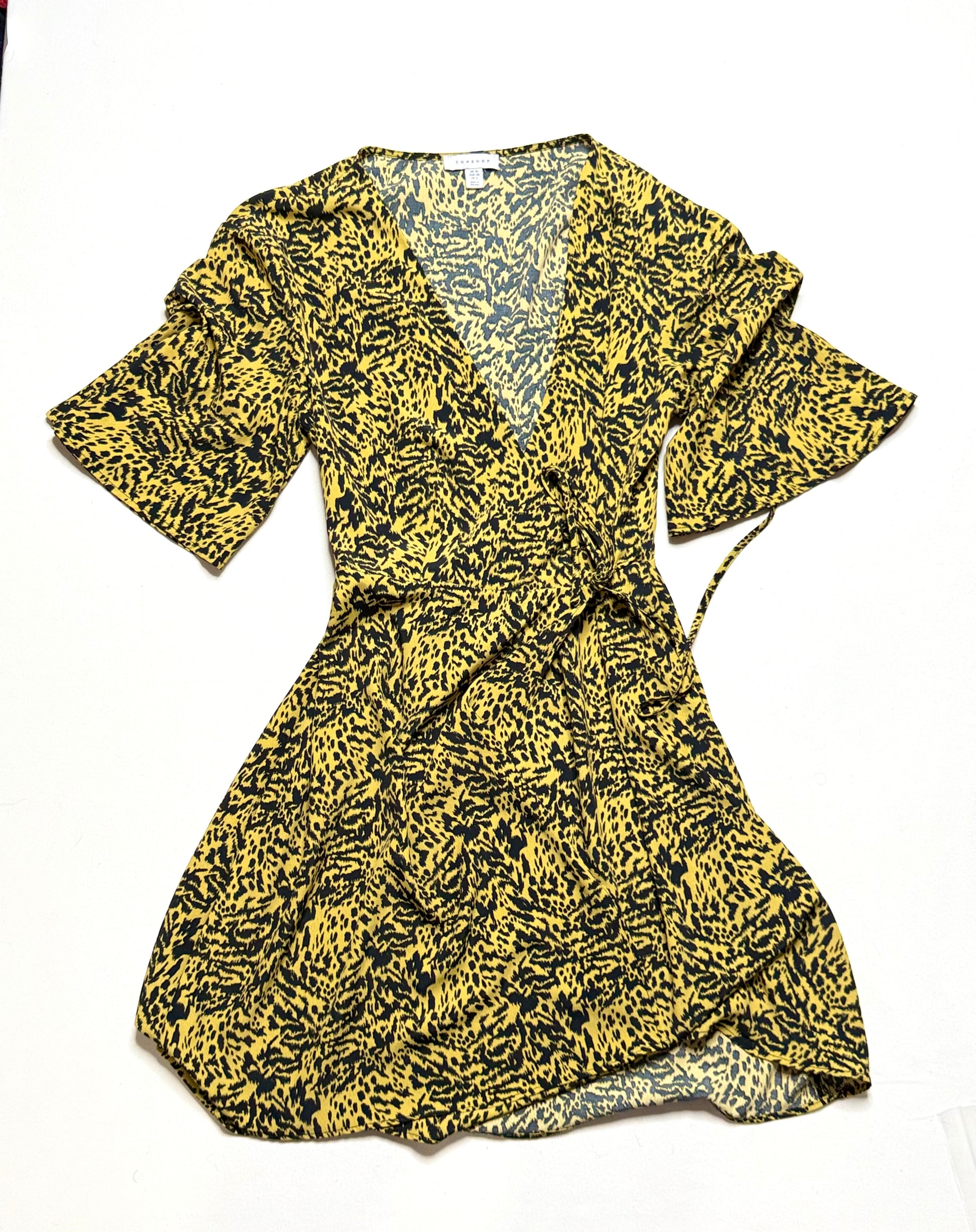 Topshop Animal Print Wrap Midi Dress – Size 6, Bell Sleeves, Tie Waist, Boho Chic