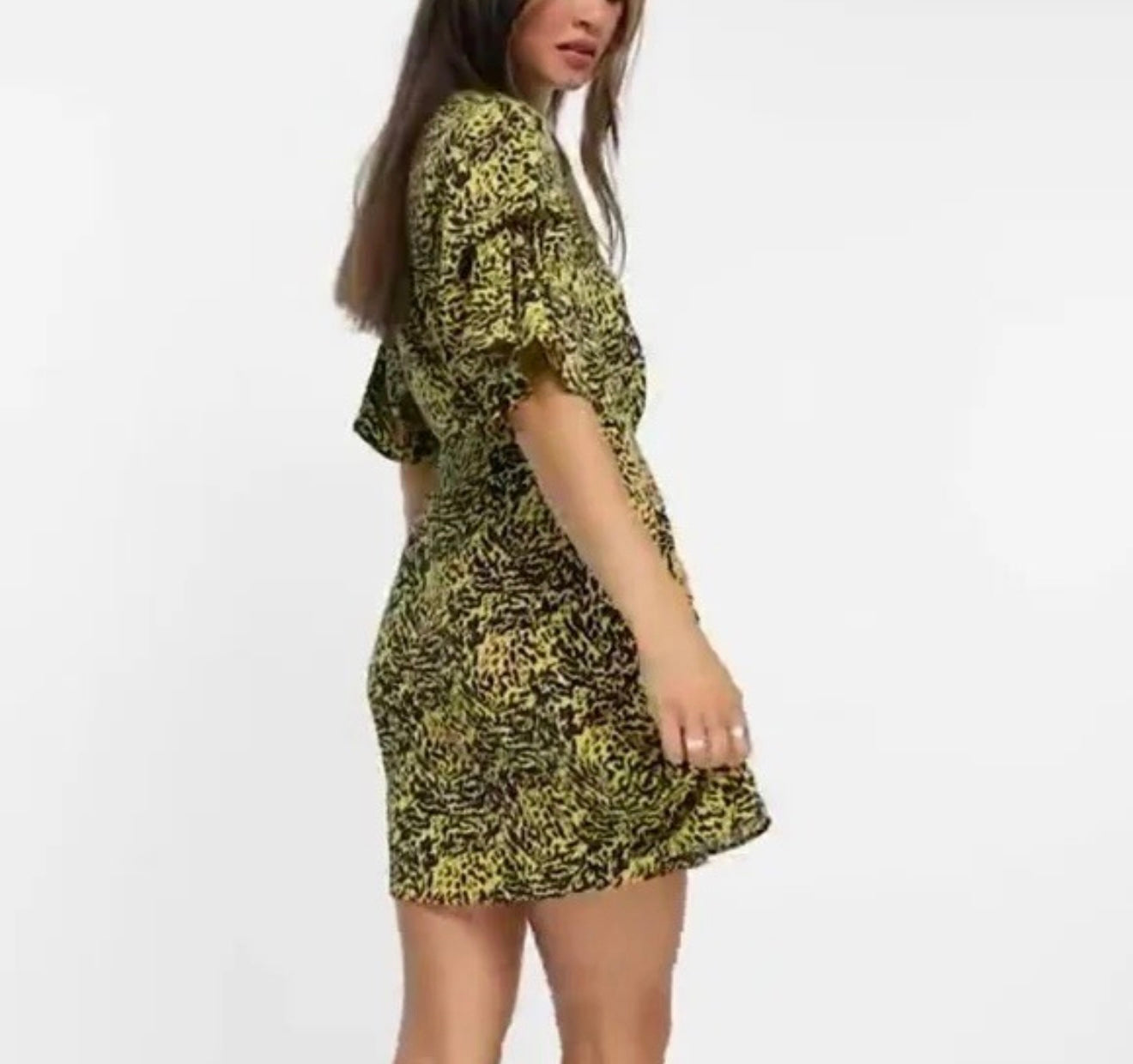 Turn heads in this stunning Topshop midi dress, featuring a bold animal print, flowing angel-style bell sleeves, and a flattering wrap silhouette with a string tie waist. Designed in a versatile size 6, this dress blends elegance and edge with ease.