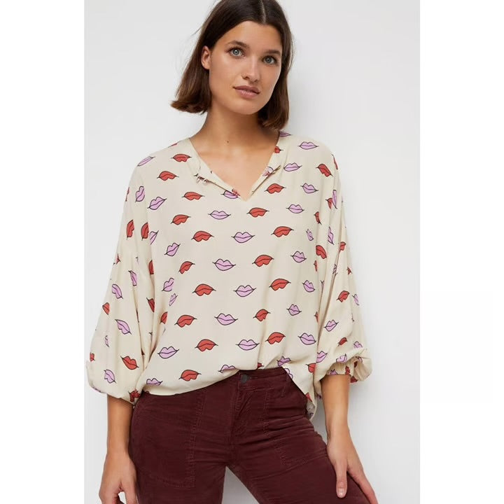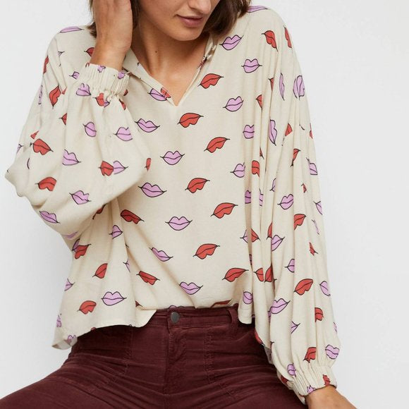 Anthropologie Corey Lynn Calter Bisous Lips Blouse Size Small