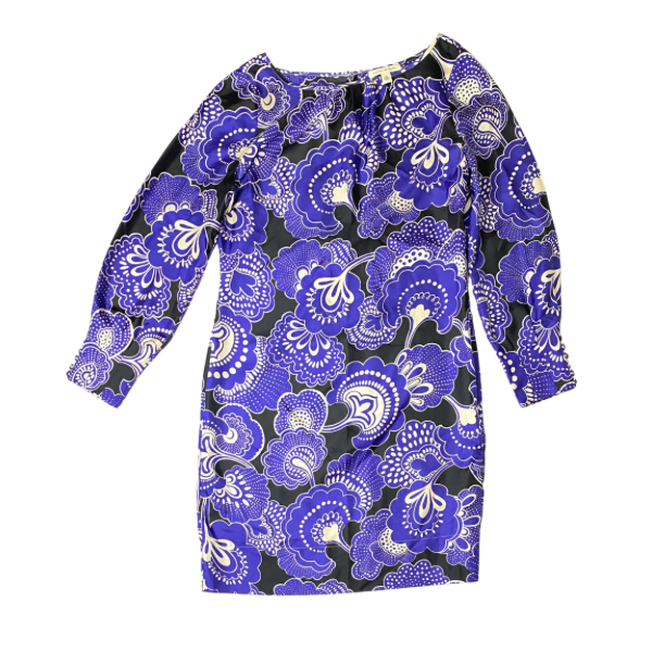 Banana Republic Silk Tunic Dress – Mod Floral Print, Balloon Sleeves, Knee Length