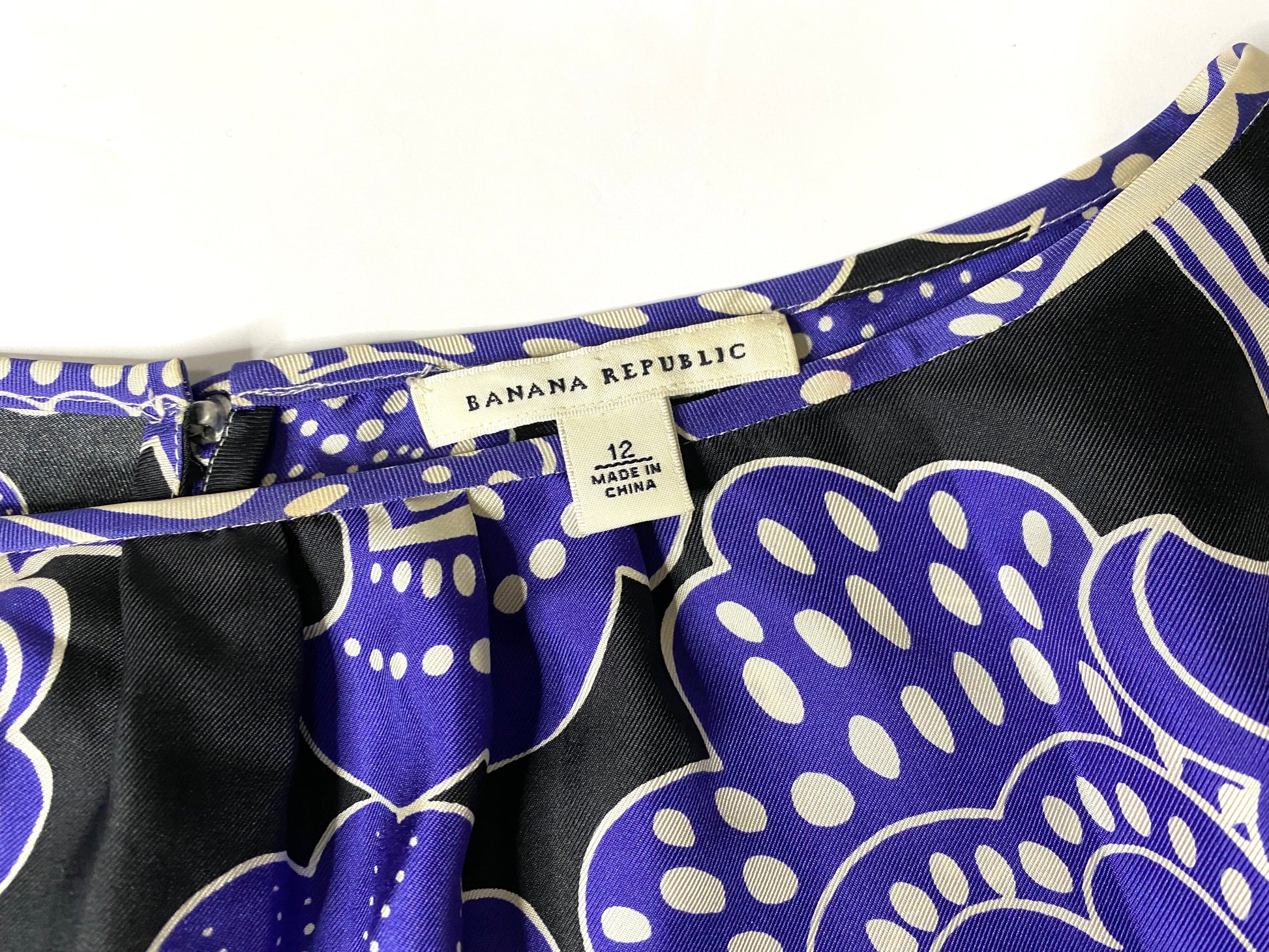 Banana Republic Silk Tunic Dress – Mod Floral Print, Balloon Sleeves, Knee Length Size 12