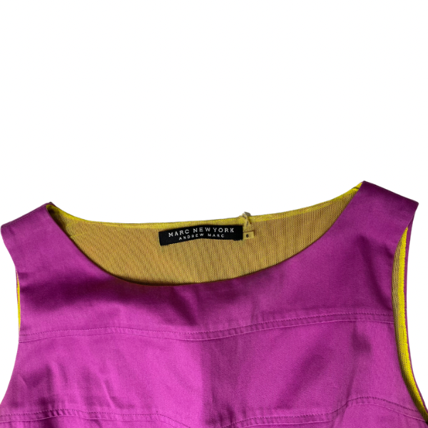 Brighten up your wardrobe with this eye-catching Marc New York sleeveless dress in a vibrant raspberry hue. Crafted from breathable 100% cotton, this size 6 dress features a unique yellow mesh lining for a pop of contrast and modern flair. Designed with functional front pockets and a flattering silhouette, it’s perfect for warm weather outings, brunch dates, or casual events. Gently worn and in excellent condition—stylish, comfortable, and ready to wear!