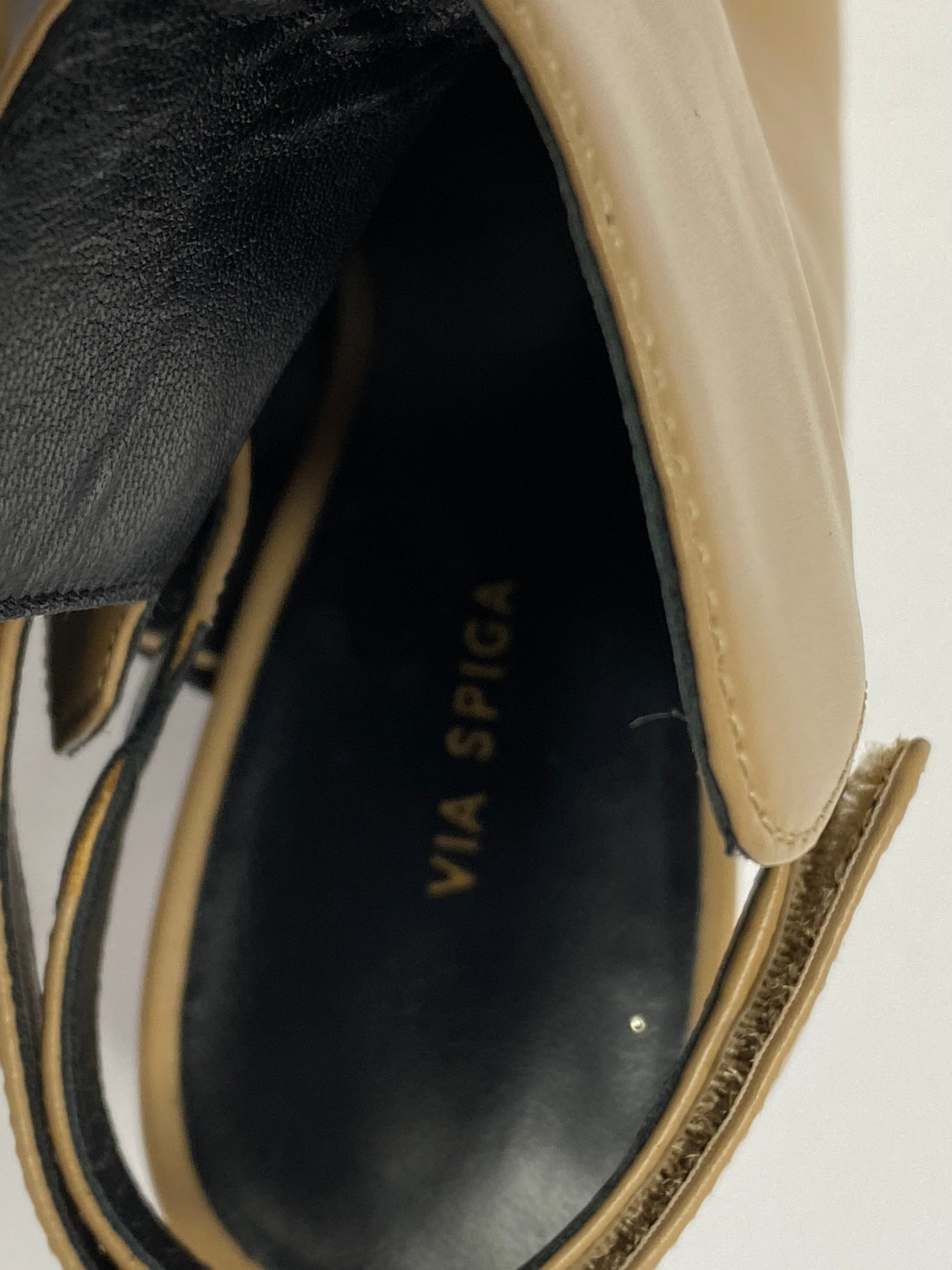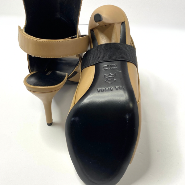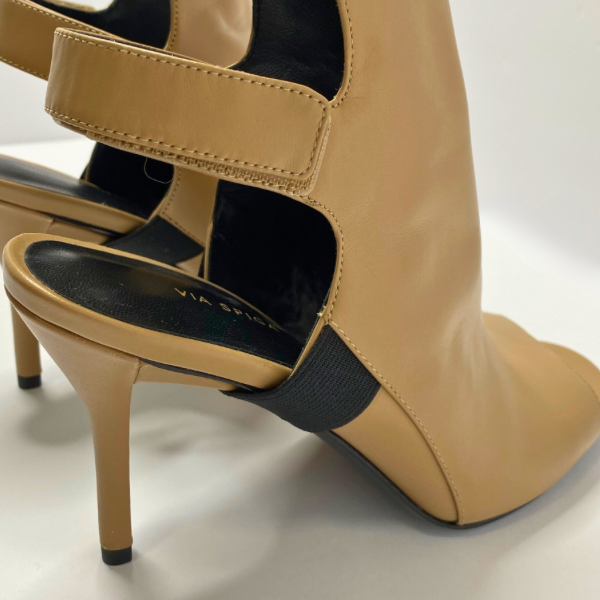 Via Spiga Camel Leather Open-Toe, Open-Heel Booties – Size 6.5 (New, Never Worn)