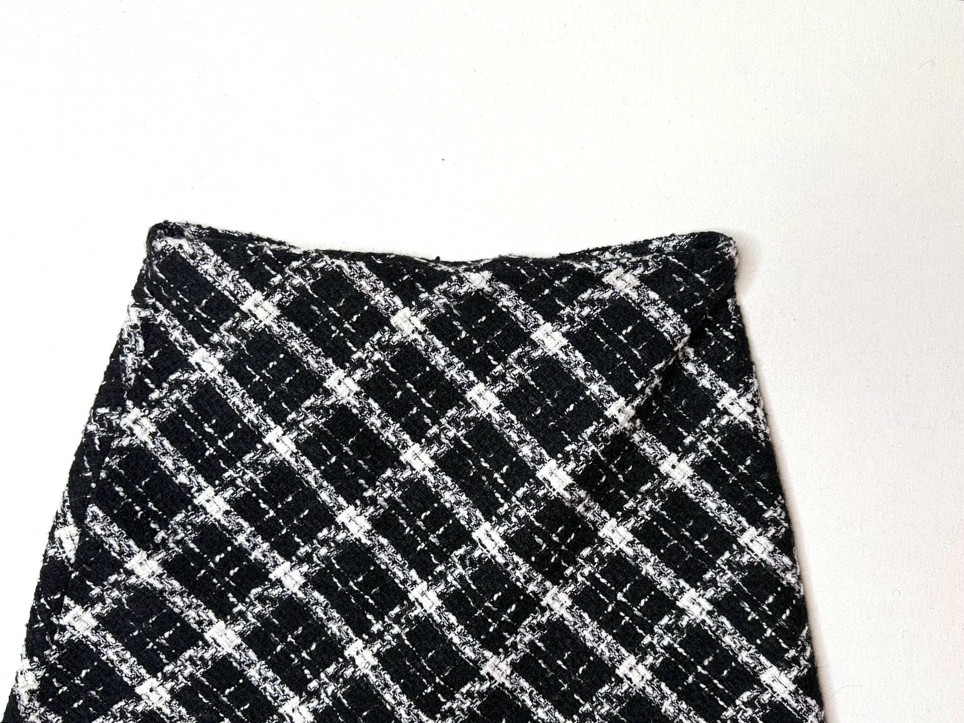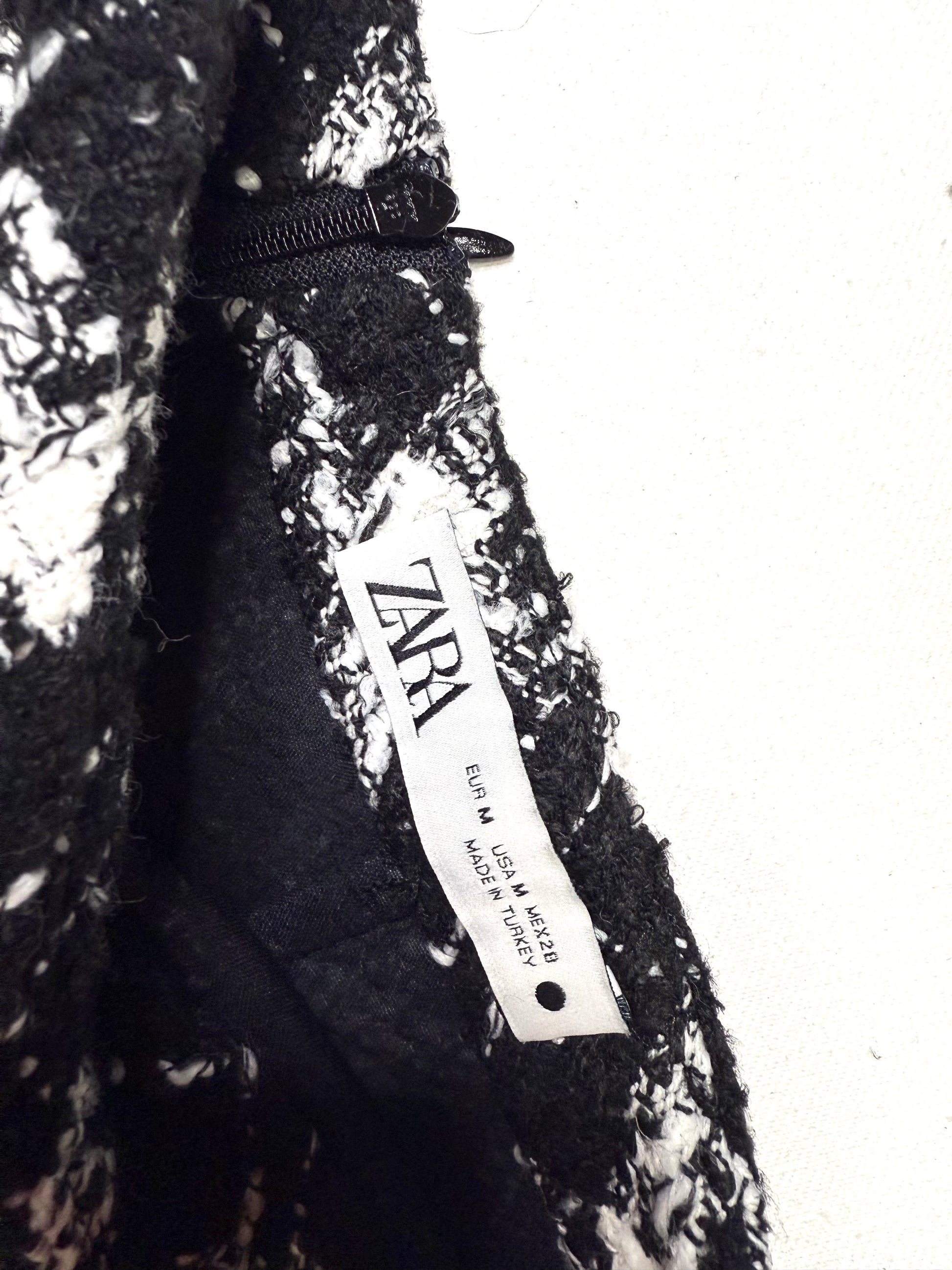 ZARA Black & White Tweed Plaid Mini Skirt – Classic A-Line Winter Skirt, Size M